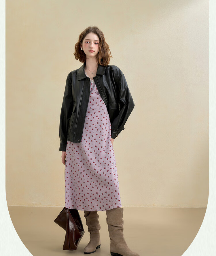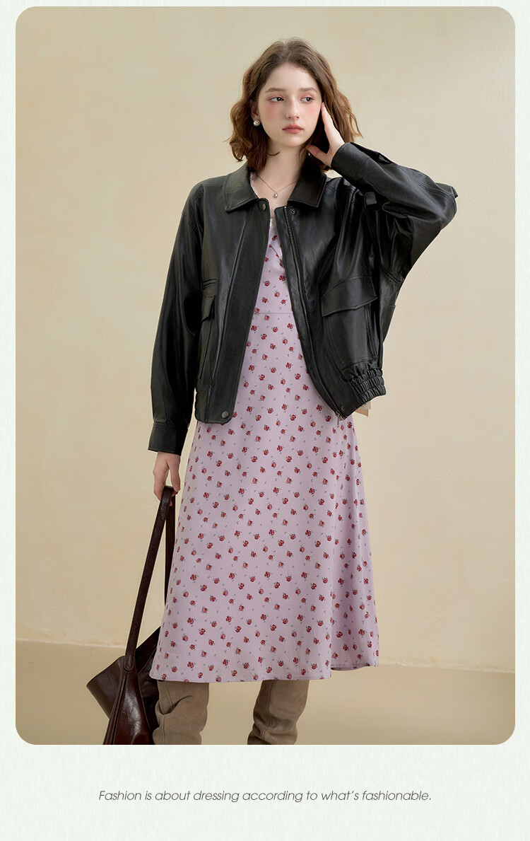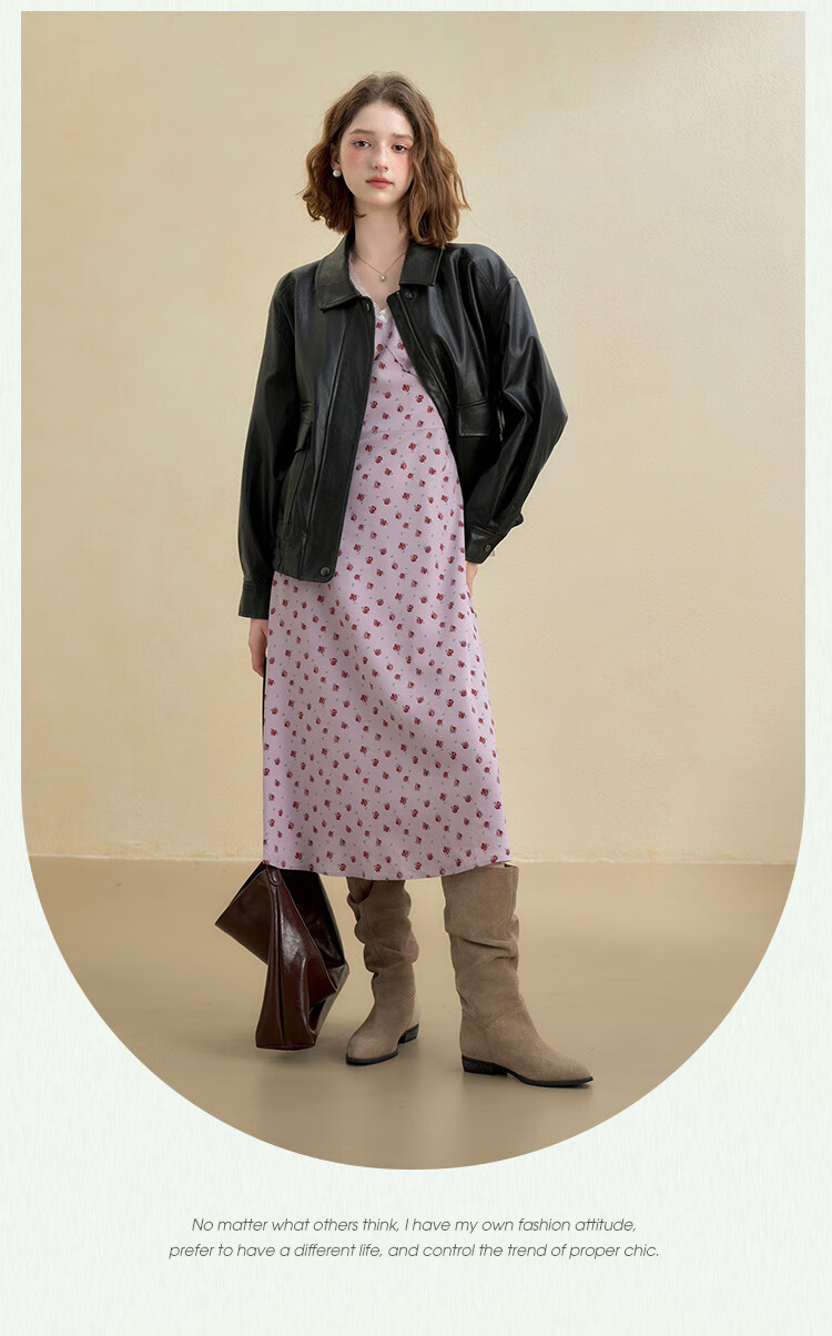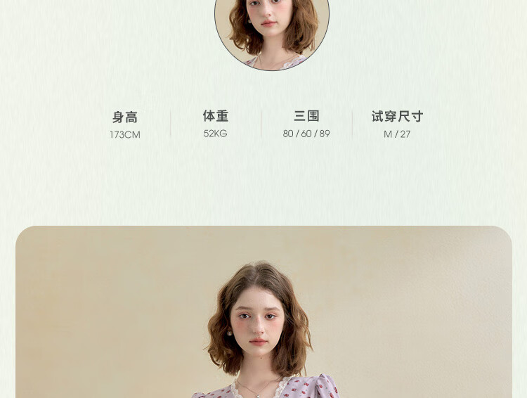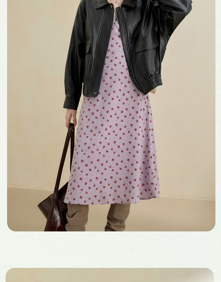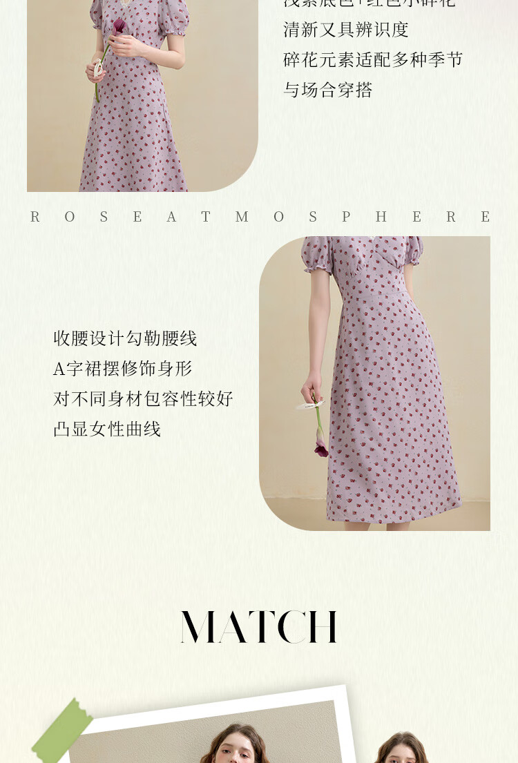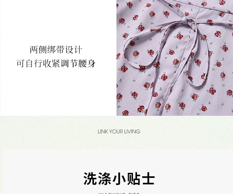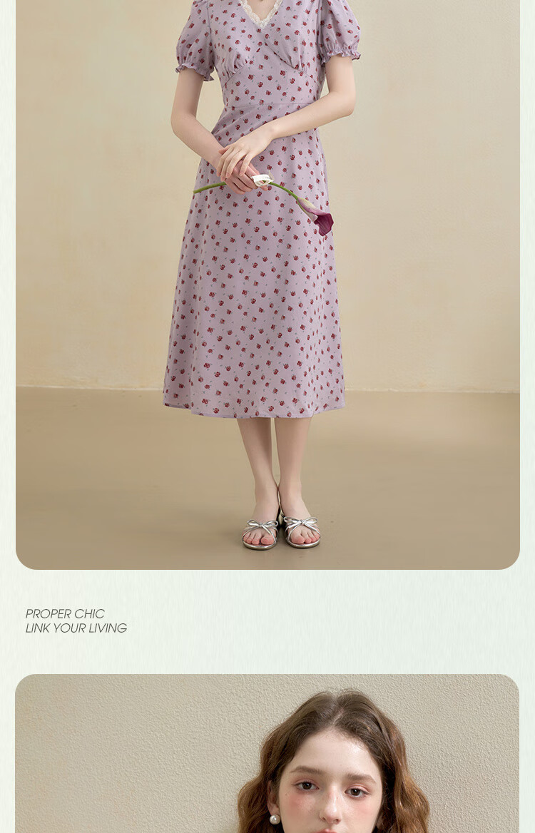 西遇浪漫玫瑰蕾丝花边V领碎花连衣裙女2025秋季新款收腰显瘦长裙七夕 紫色 XL (170)