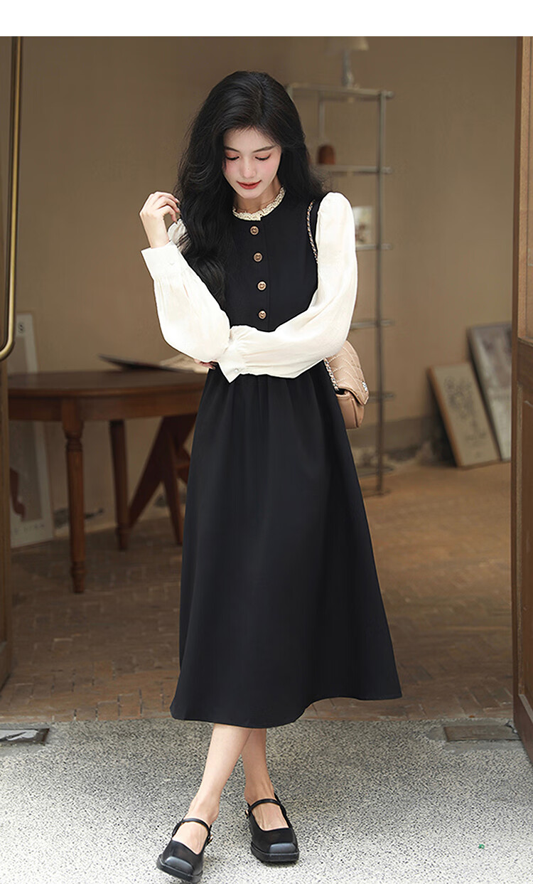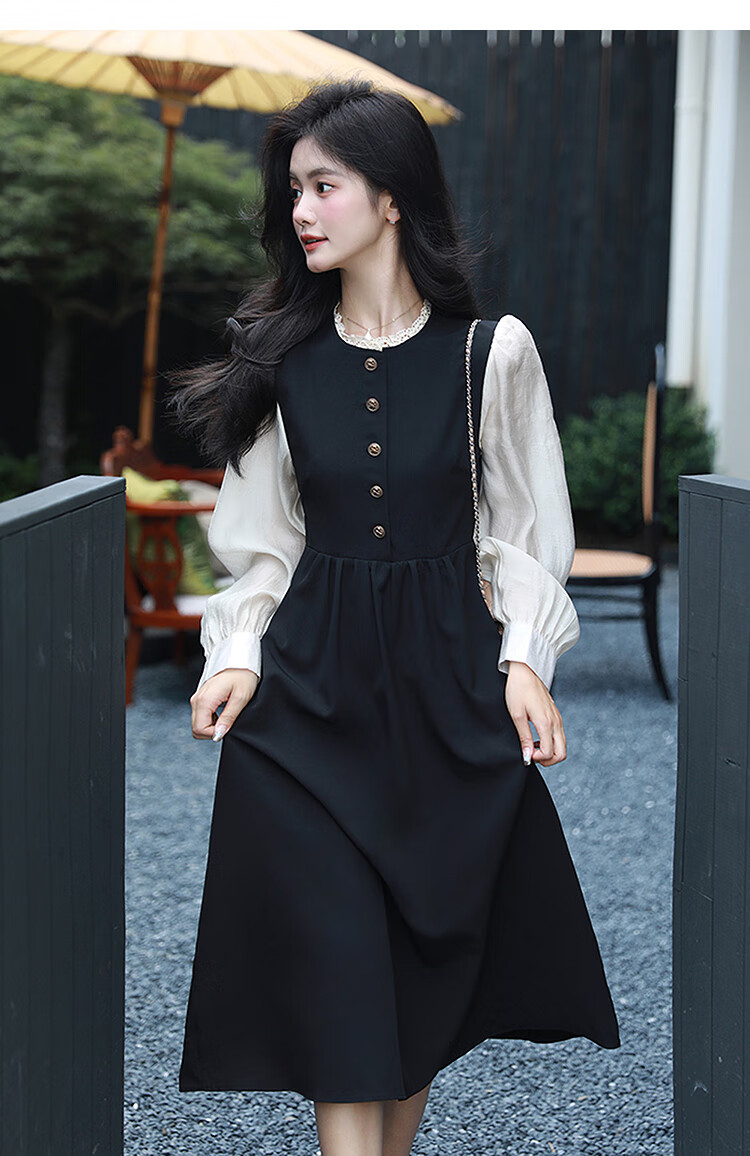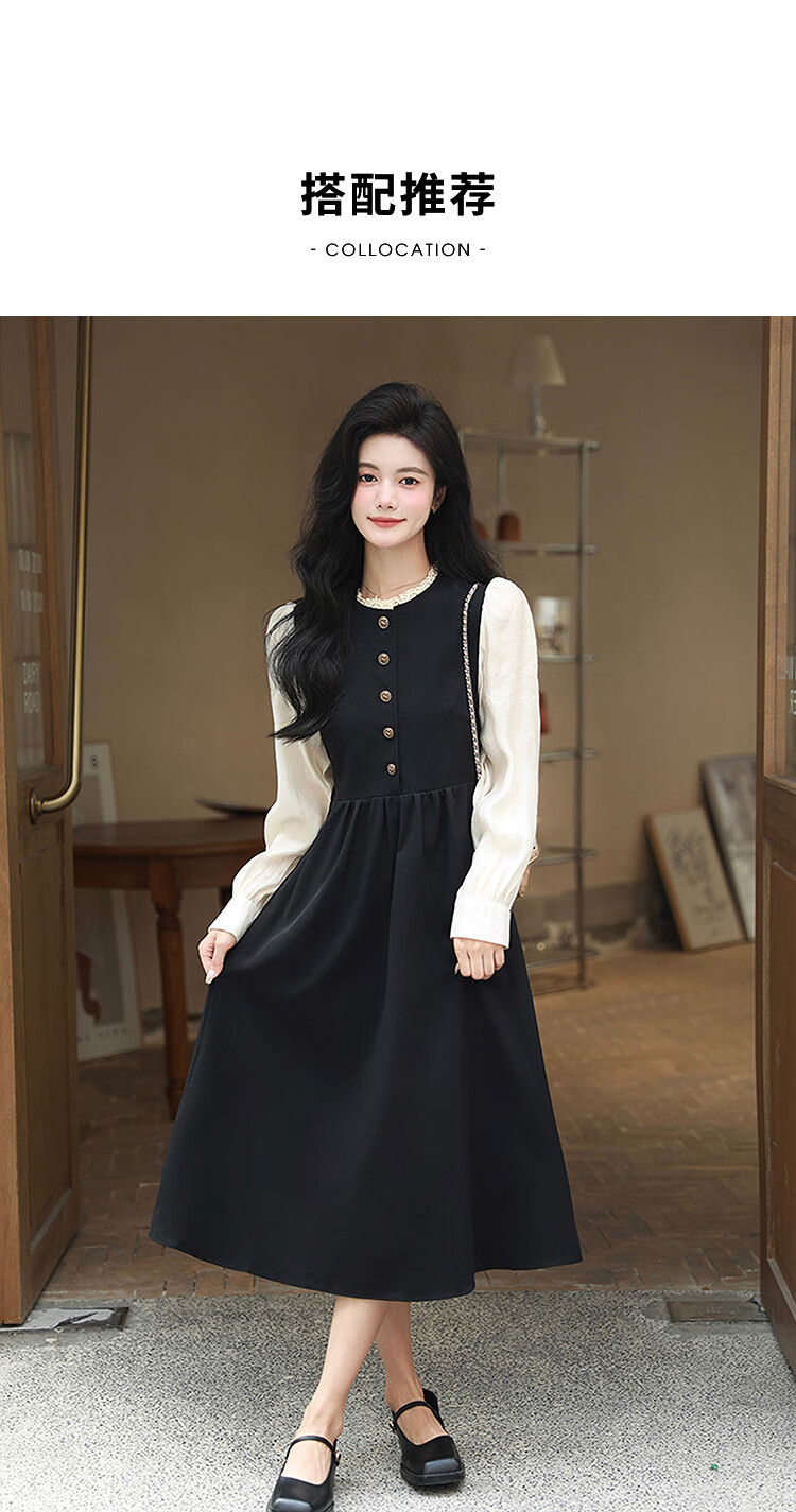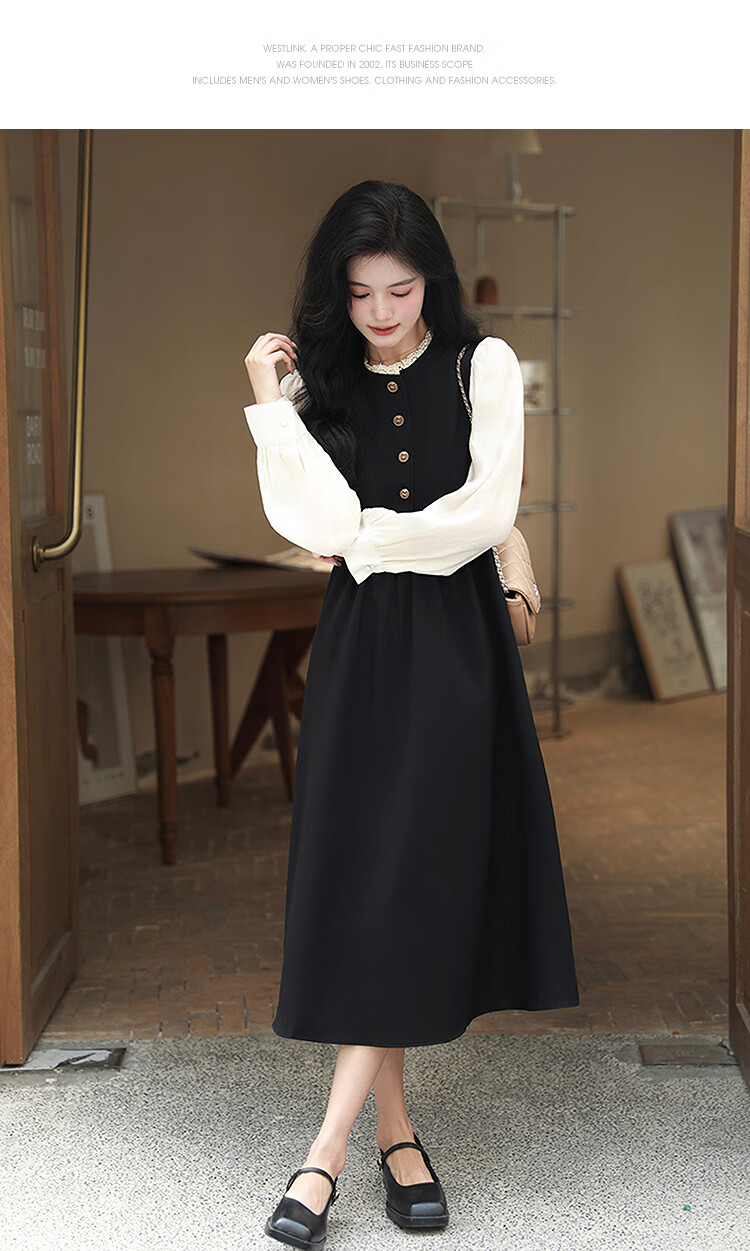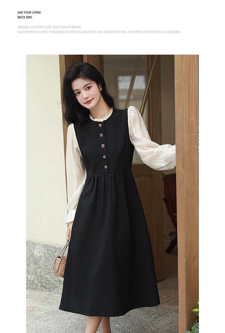 西遇法式黑色长袖连衣裙女2025年秋季新款小香风a字收腰中长裙 黑色 (预售15天) M (160)