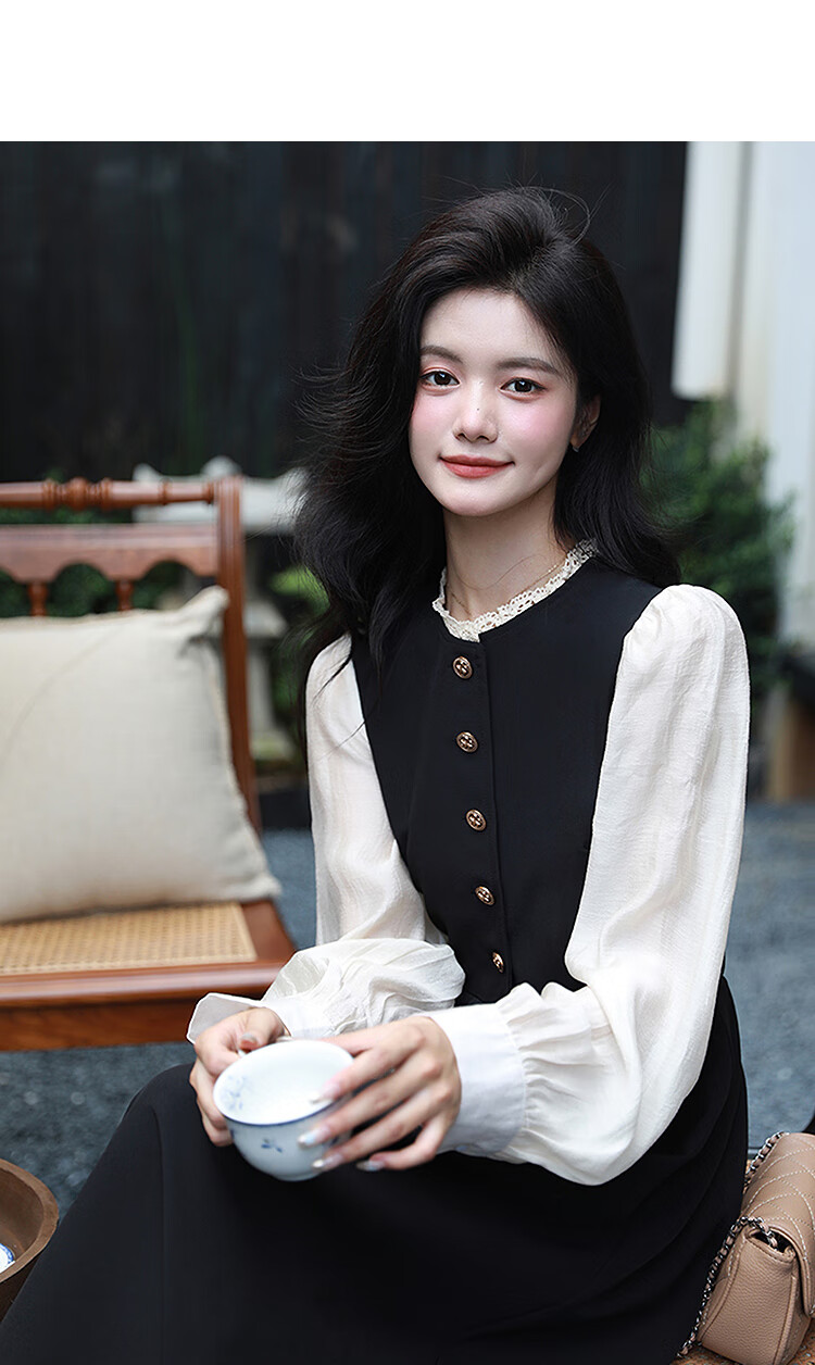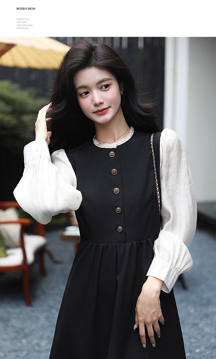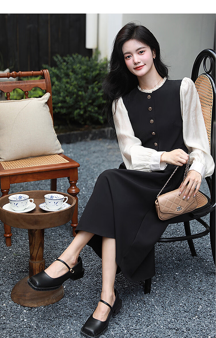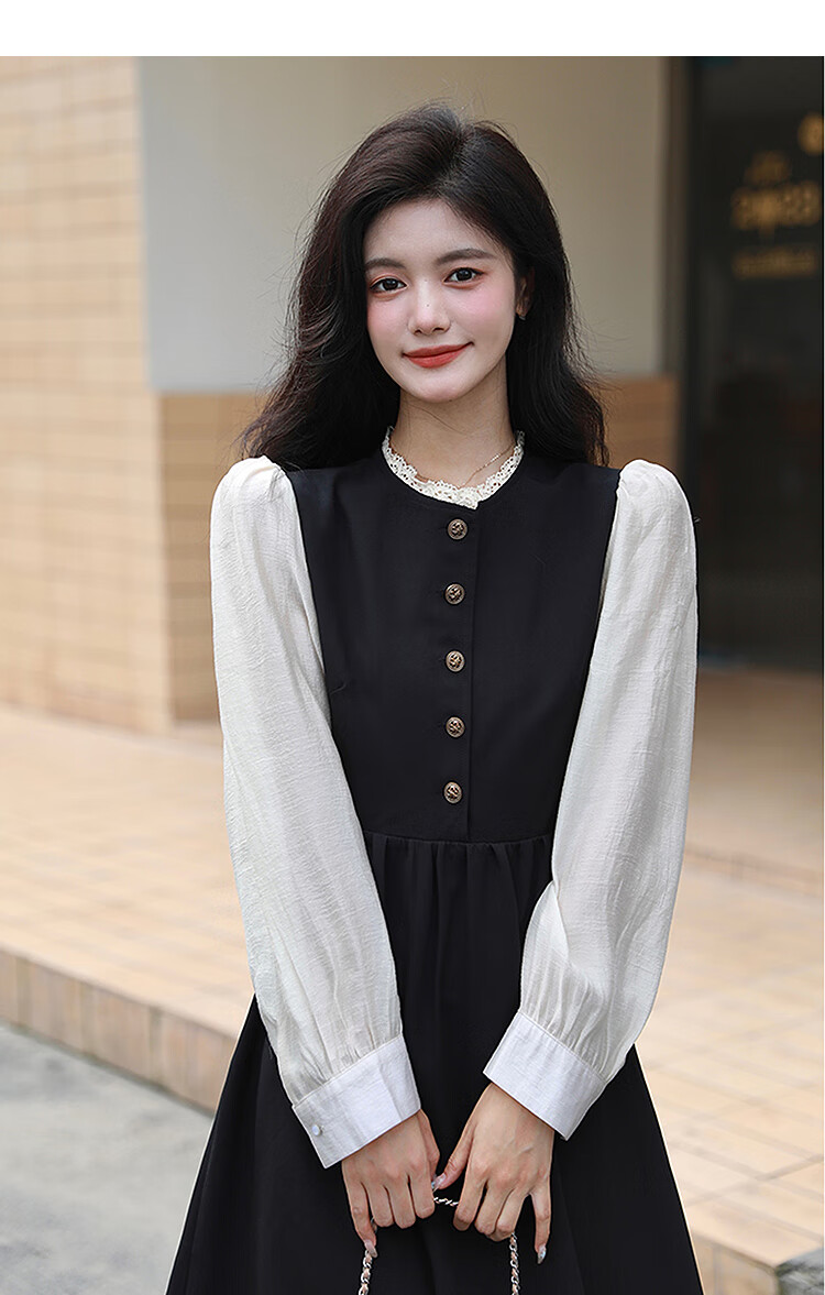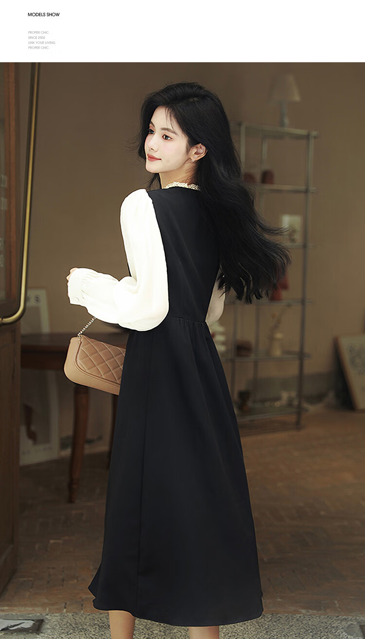 西遇法式黑色长袖连衣裙女2025年秋季新款小香风a字收腰中长裙 黑色 (预售15天) M (160)