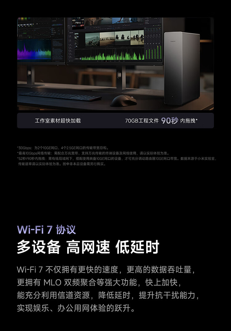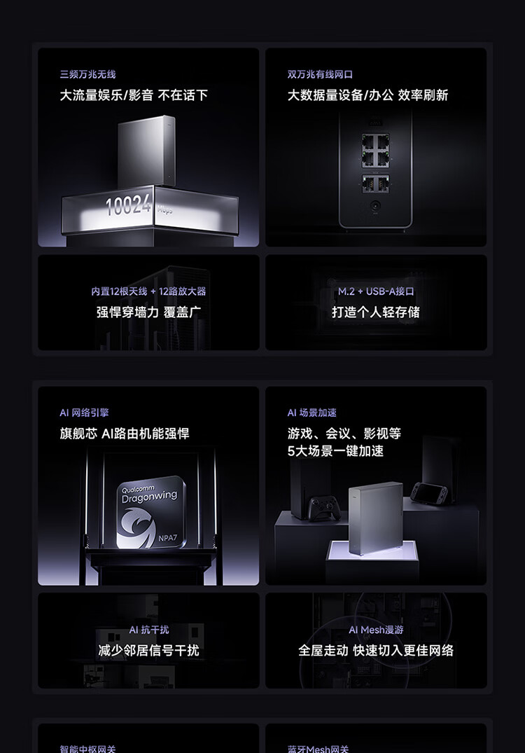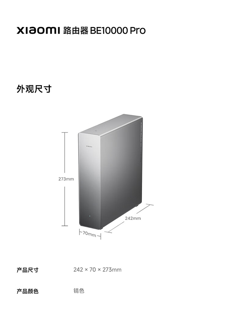 小米Xiaomi路由器BE10000 Pro WiFi7 AI双万兆 全屋智能中枢 个人轻存储 家用路由器 科技感机身 Xiaomi路由器BE10000 Pro