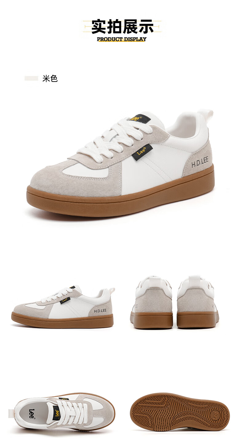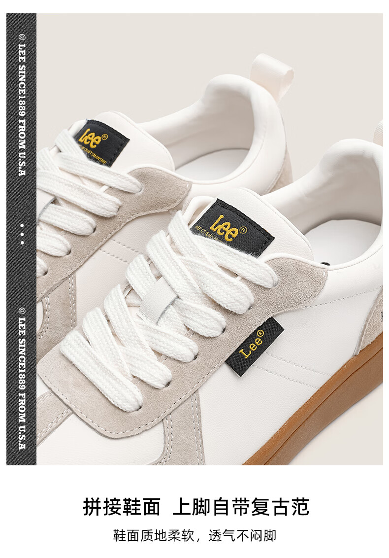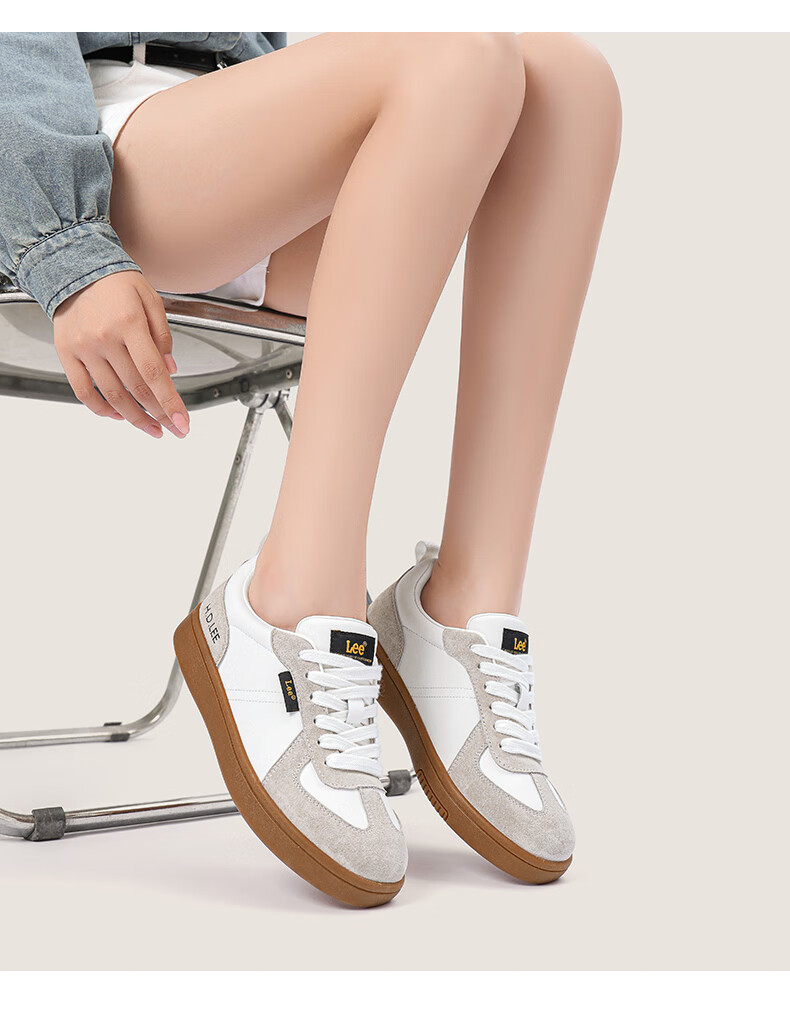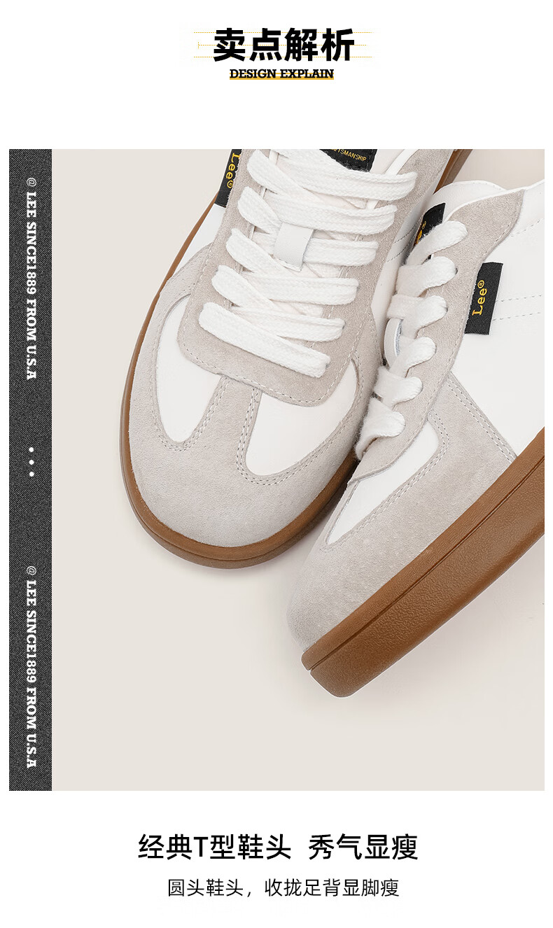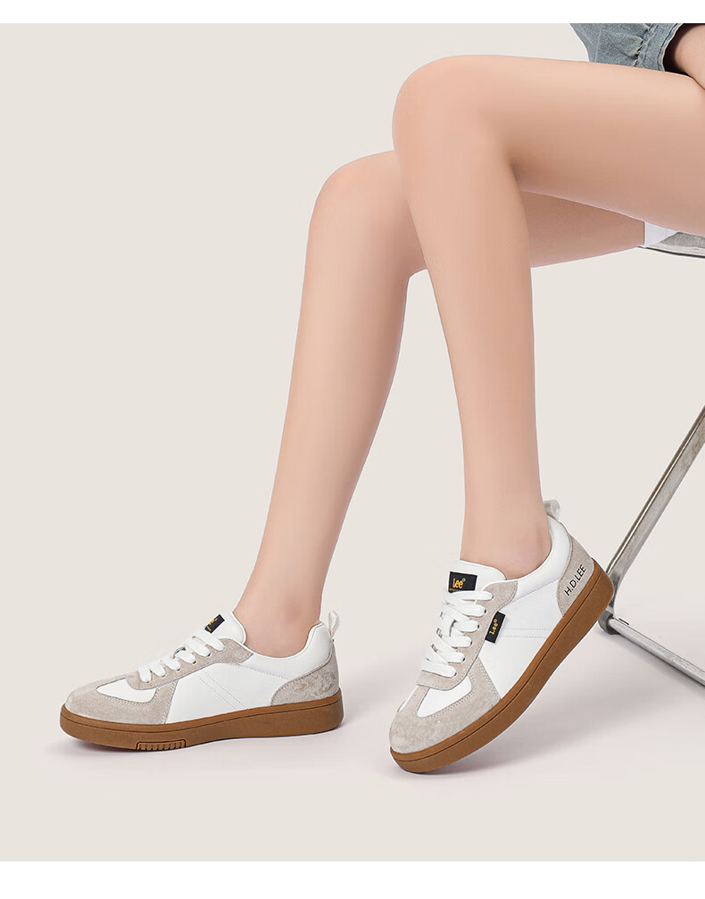 Lee女鞋新款休闲鞋牛筋底小白鞋简约经典运动板鞋女士经典复古德训鞋 米色 39