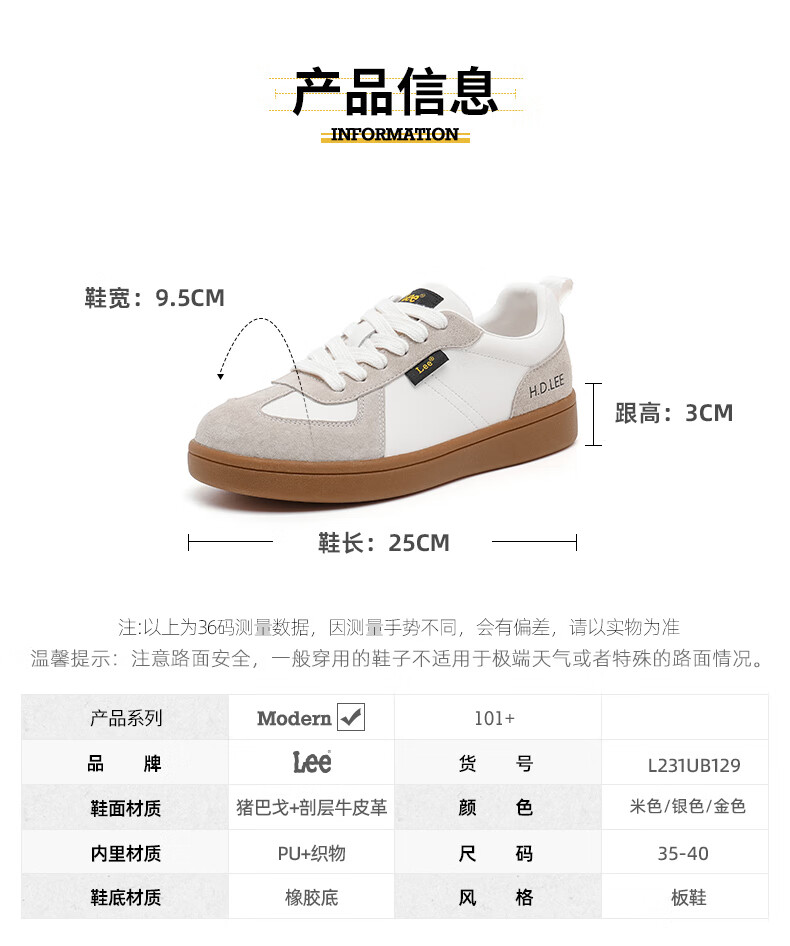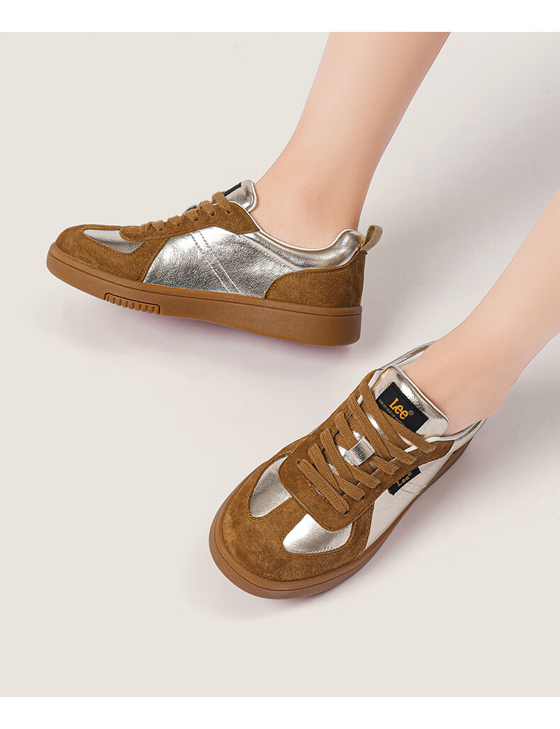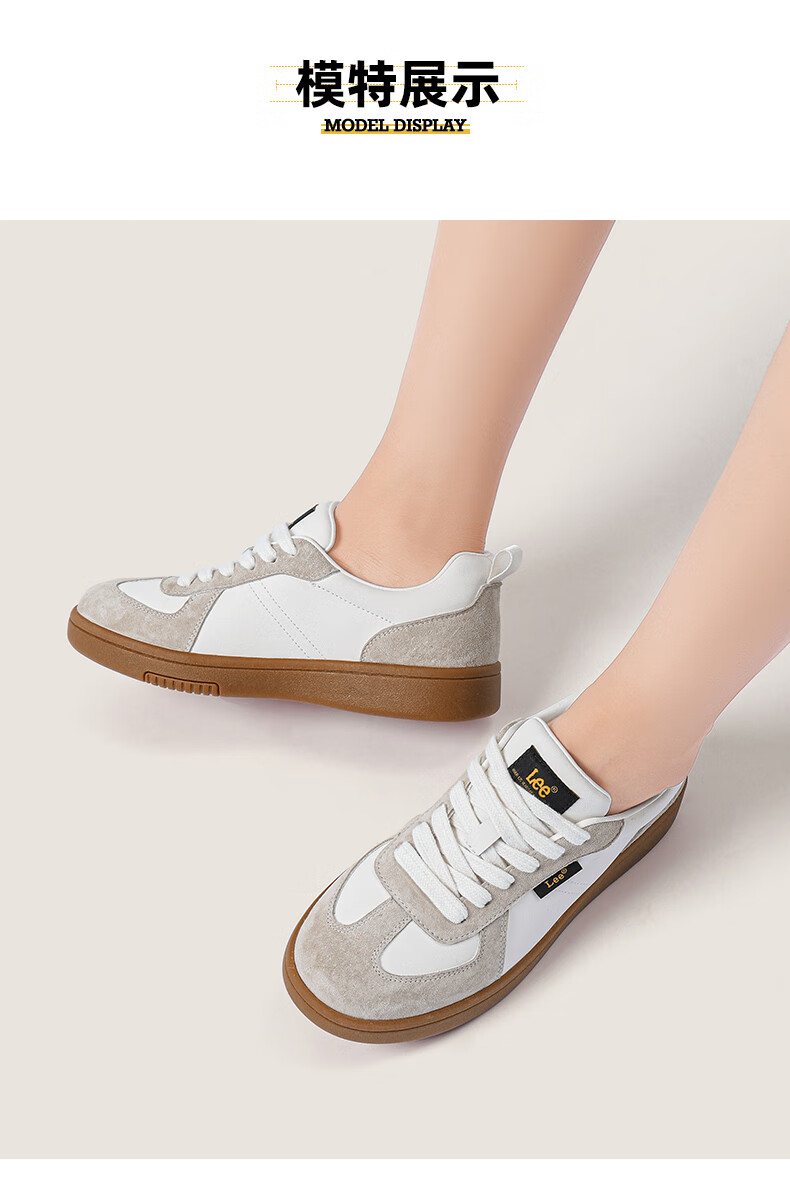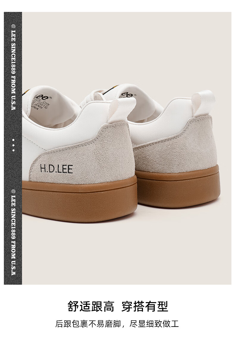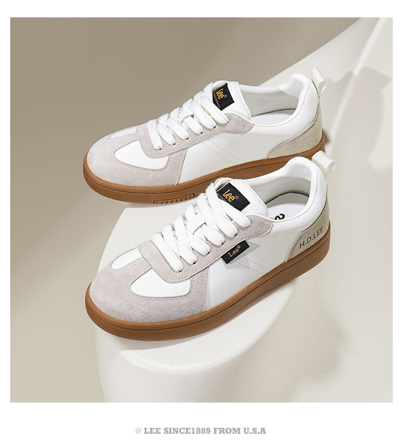 Lee女鞋新款休闲鞋牛筋底小白鞋简约经典运动板鞋女士经典复古德训鞋 米色 39