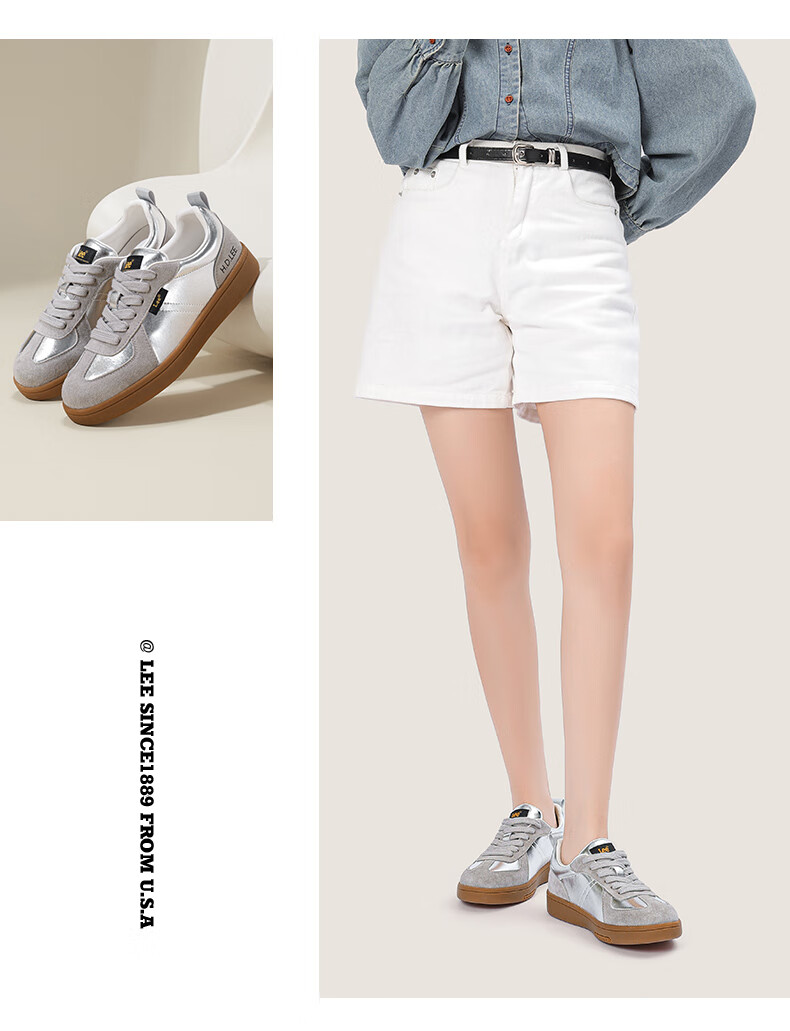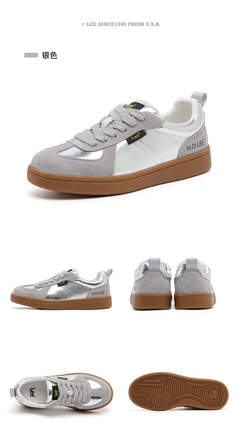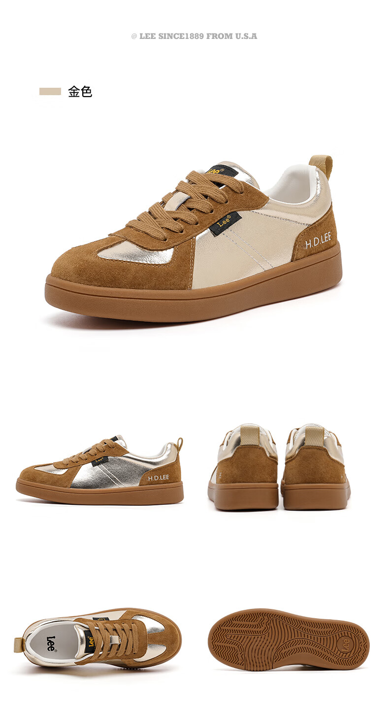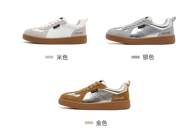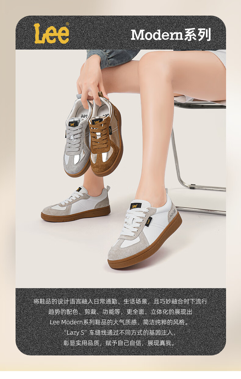 Lee女鞋新款休闲鞋牛筋底小白鞋简约经典运动板鞋女士经典复古德训鞋 米色 39