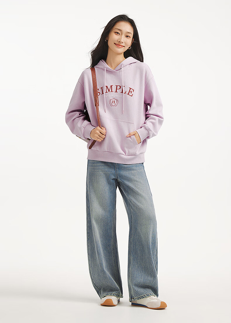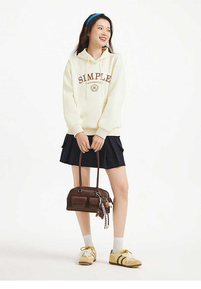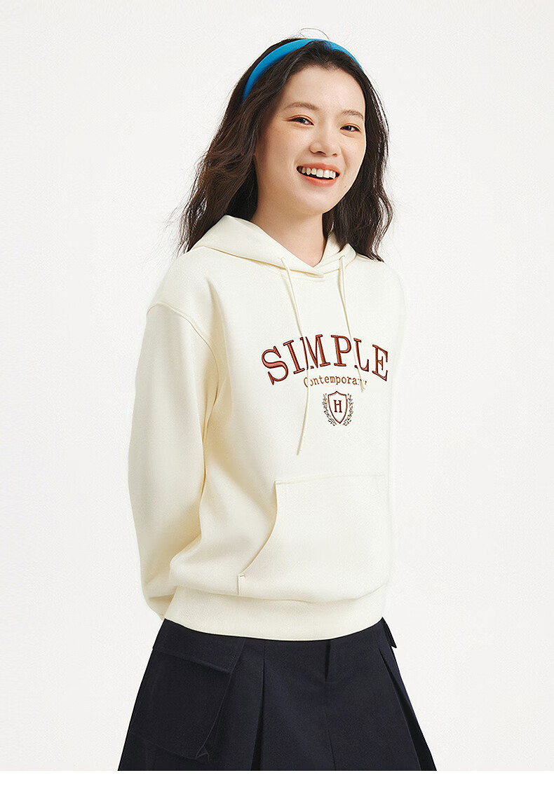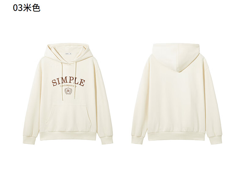 热风【商场同款】女士卫衣连帽套头25年秋新款撞色字母印花休闲卫衣 03米色 S