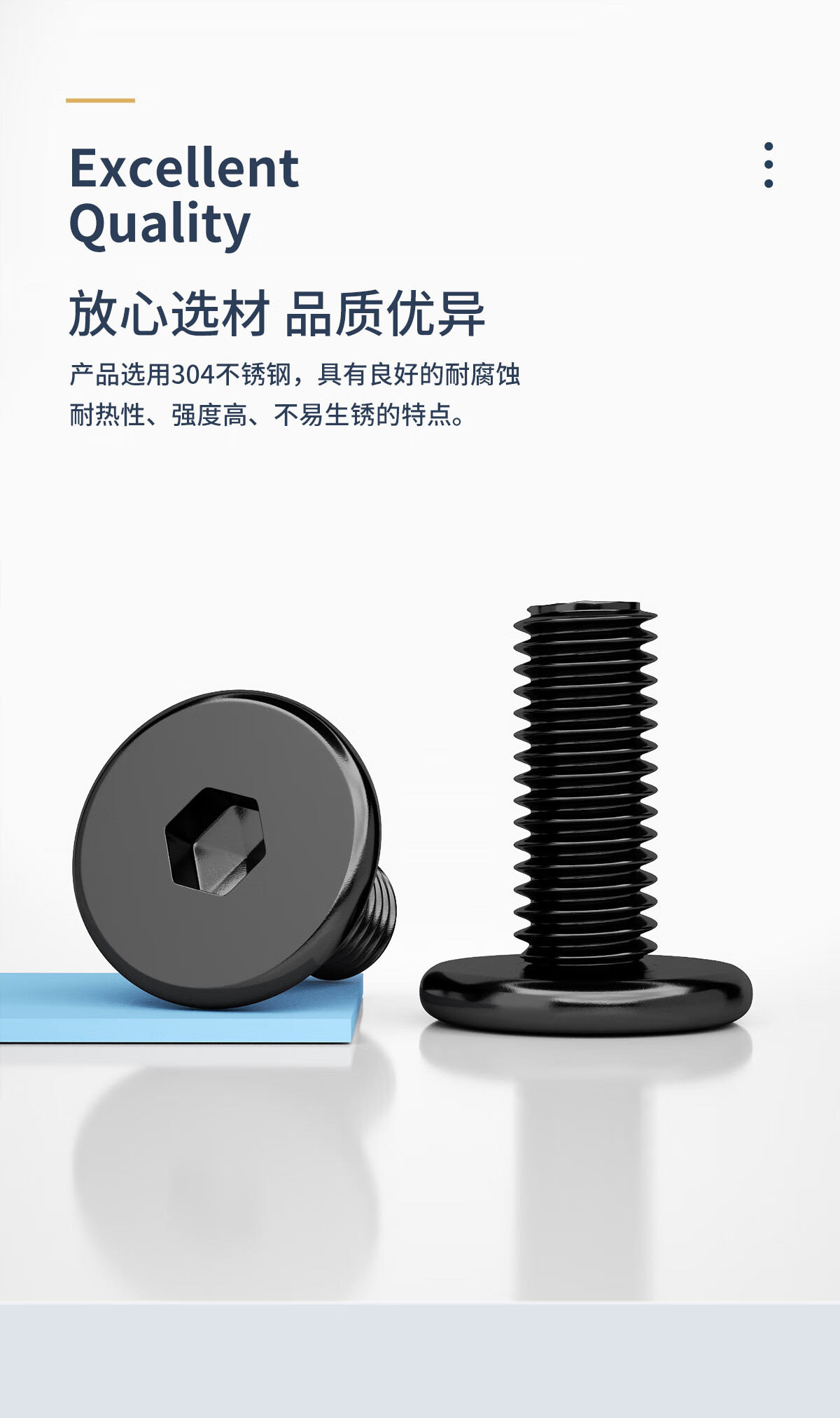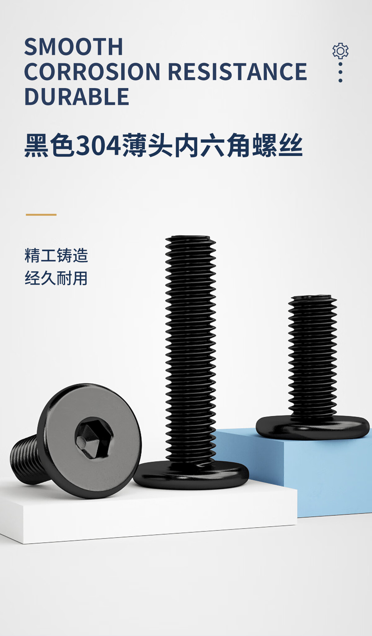 GUWANJI304不锈钢黑色大平头内六角螺丝沉头超薄头扁平头螺栓M2-m6 M2*3[200个]