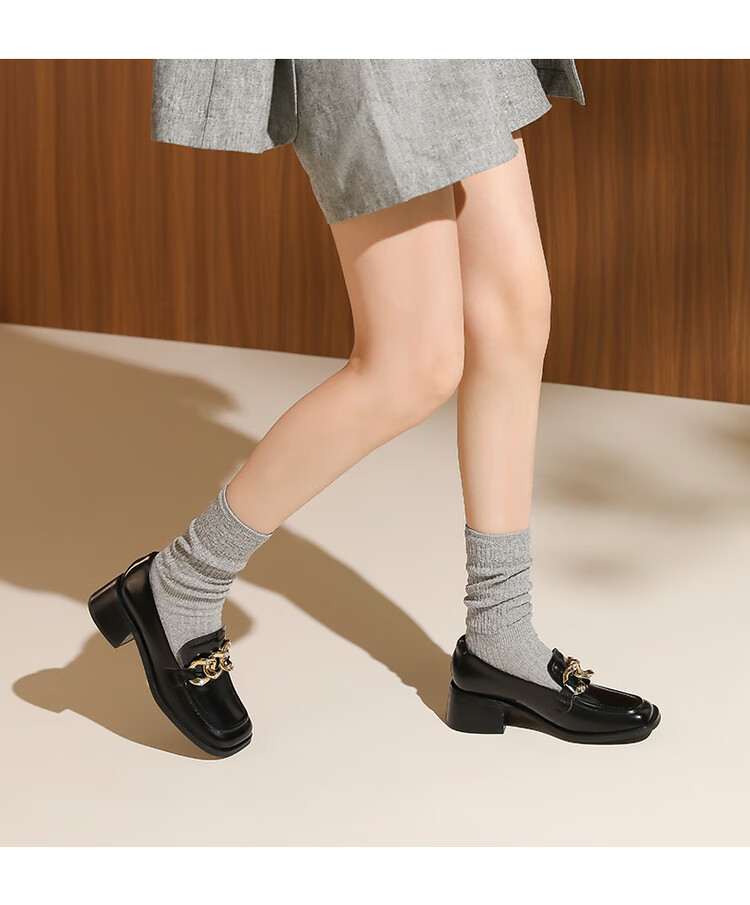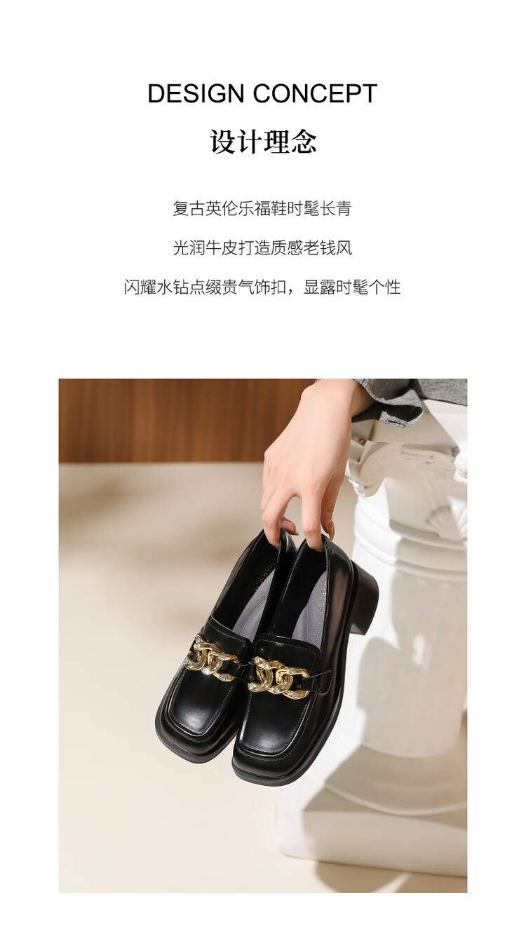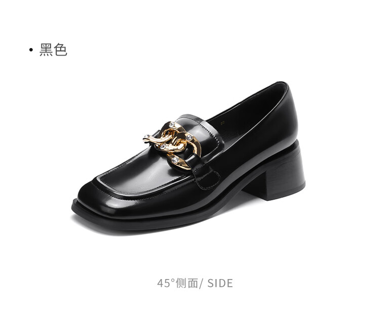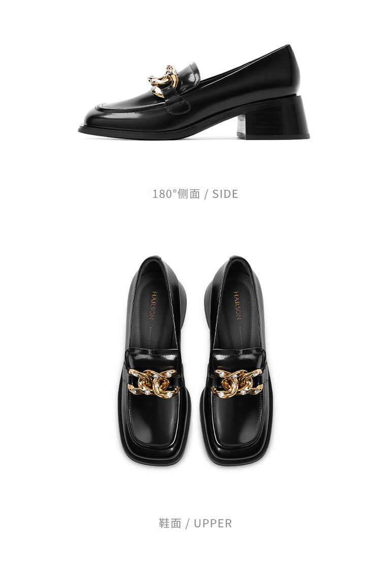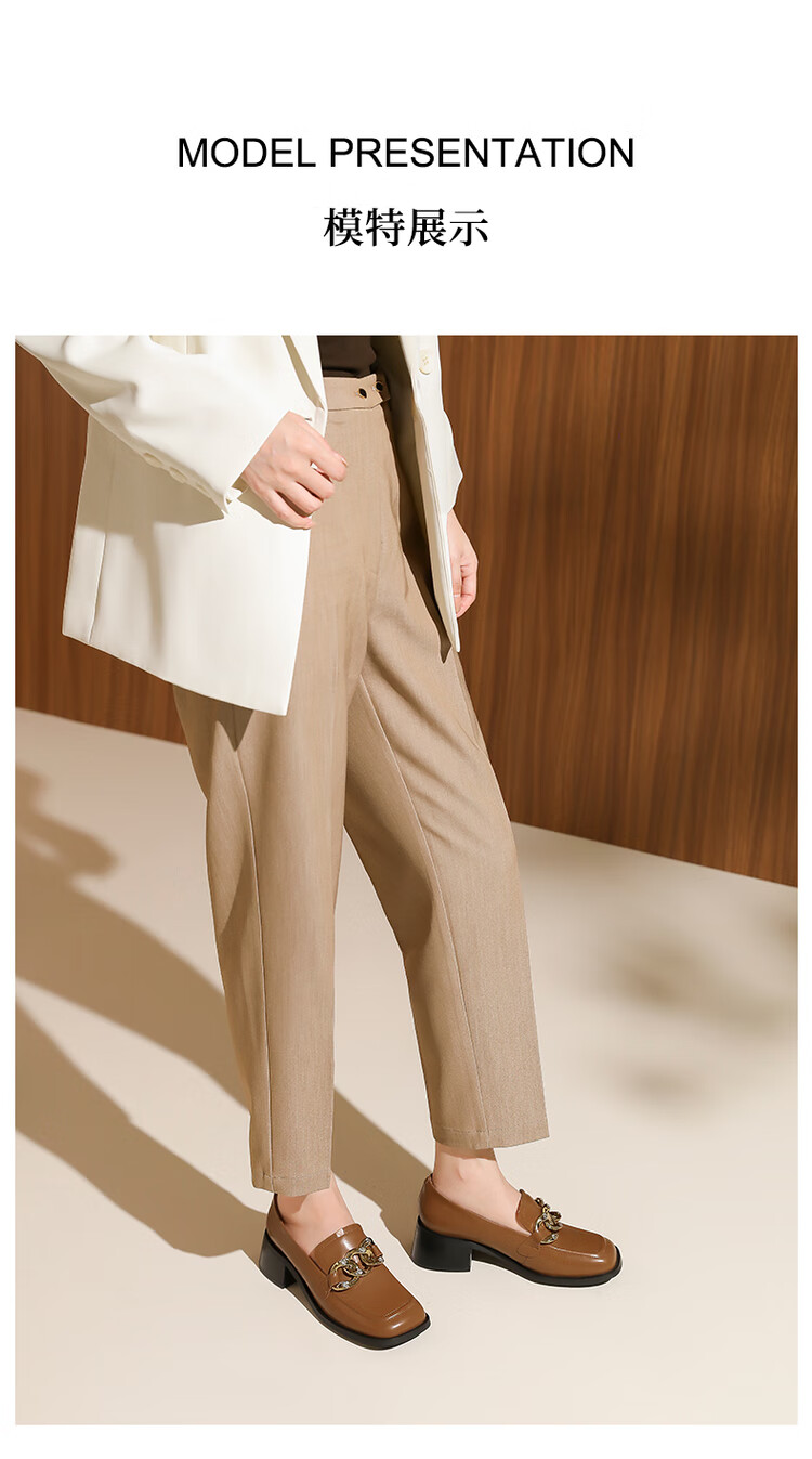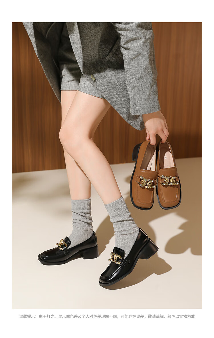 哈森法式复古乐福鞋2025新款休闲粗跟方头商务通勤饰扣女单鞋HL259018 黄棕色 34