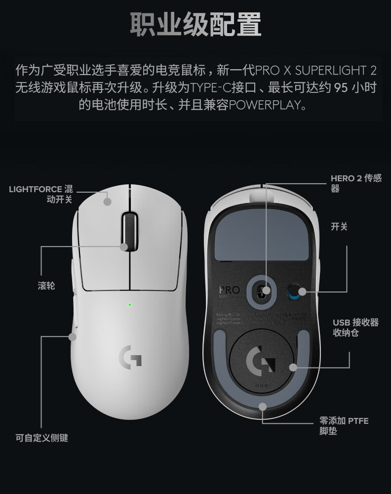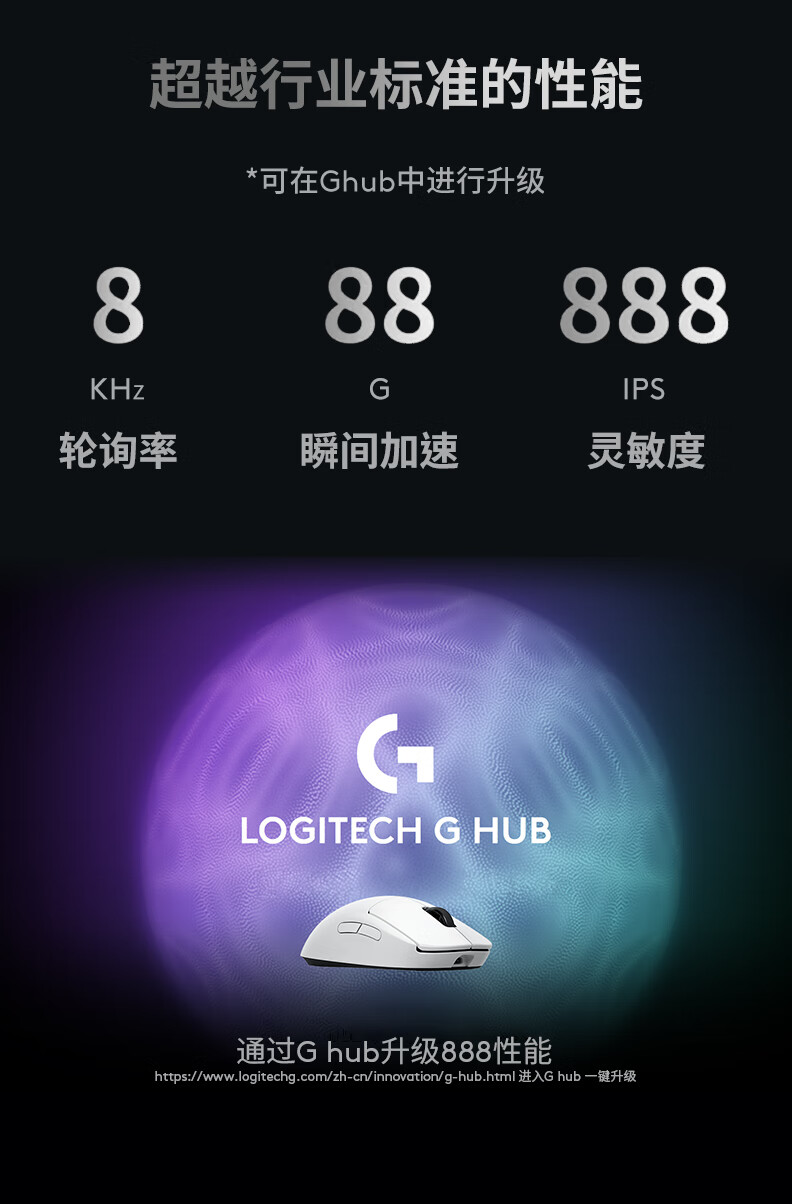罗技(G)GPW3 狗屁王三代无线游戏鼠标 专业电竞手型 60g轻量 粉 升级8KHz 88G 888IPS