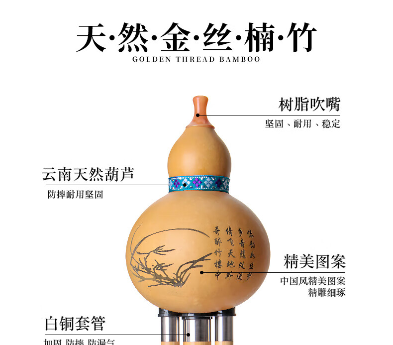 音域云南金丝楠木葫芦丝乐器C调初学演奏专用吹奏乐器