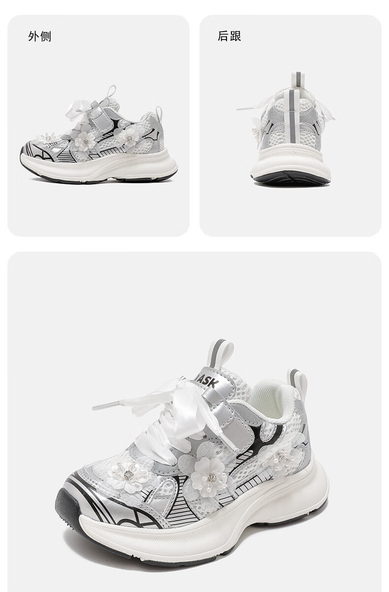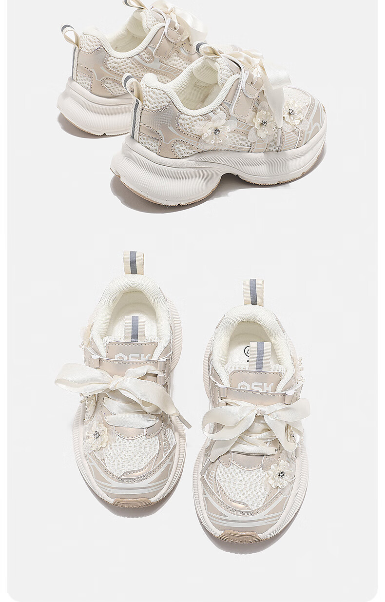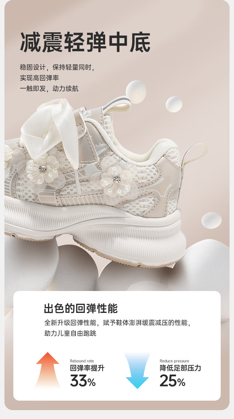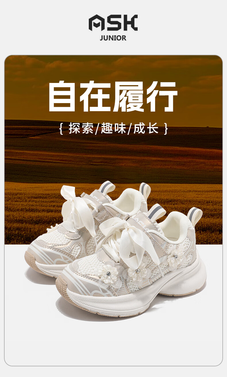 ASK JUNIOR儿童运动鞋2025新款秋冬季透气网面鞋女童鞋子中大童 金色 32