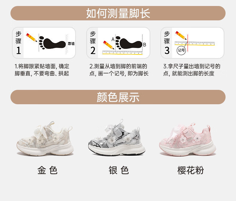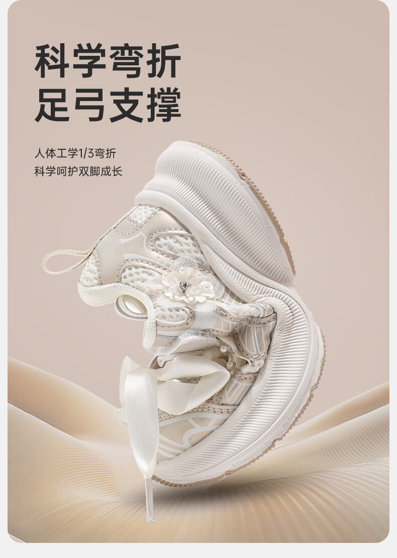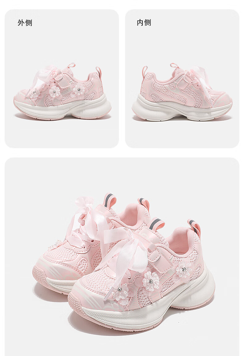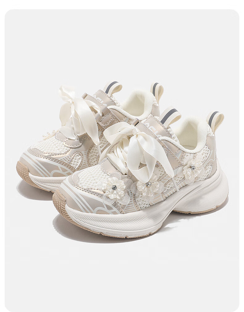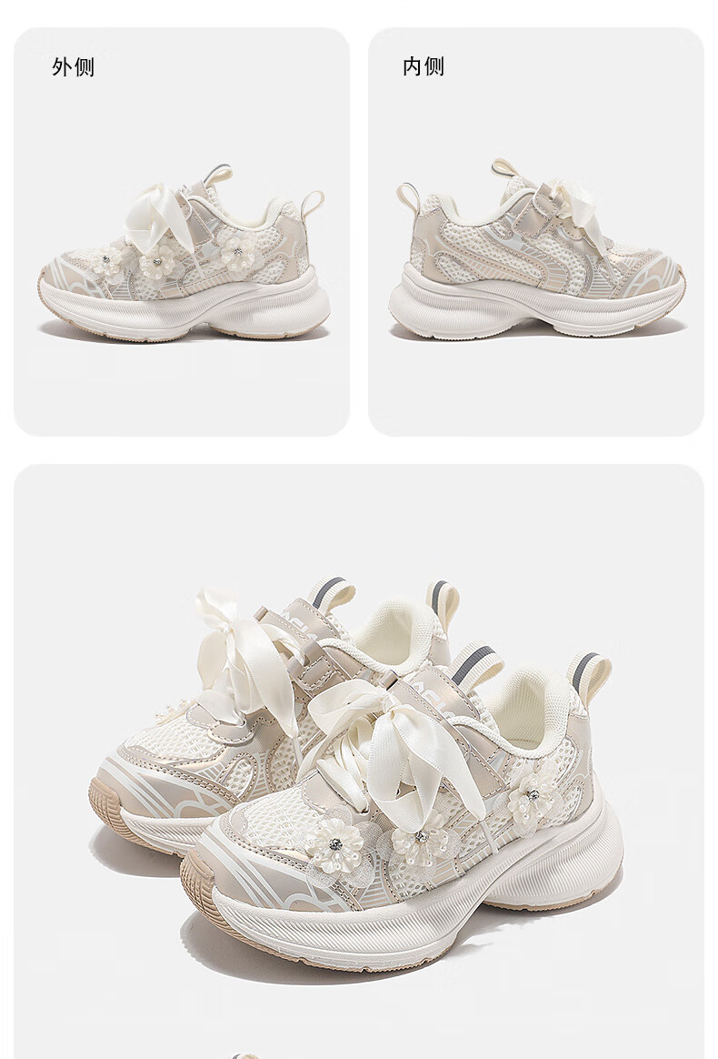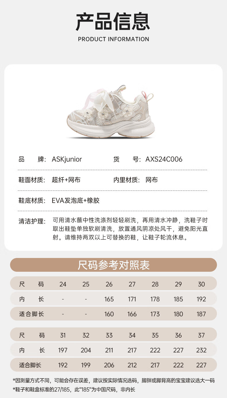 ASK JUNIOR儿童运动鞋2025新款秋冬季透气网面鞋女童鞋子中大童 金色 32