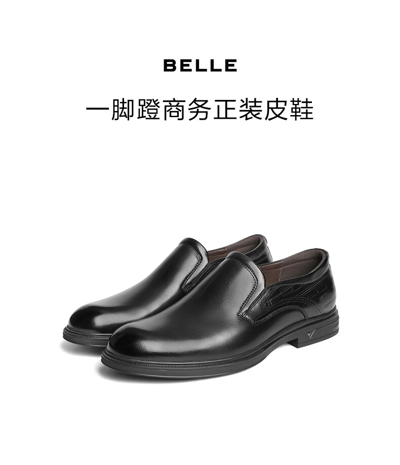 百丽一脚蹬商务鞋男25秋新商场同款牛皮正装乐福皮鞋8TR02CM5 黑色 39 (245mm)
