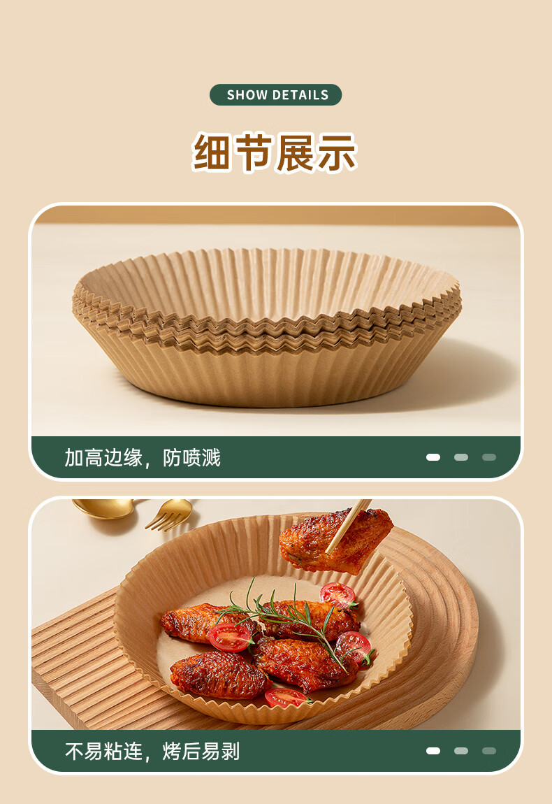 双枪空气炸锅专用纸食物家用吸油纸圆形油纸烤箱烘焙硅油纸烧烤盘纸垫 原木色硅油纸100个