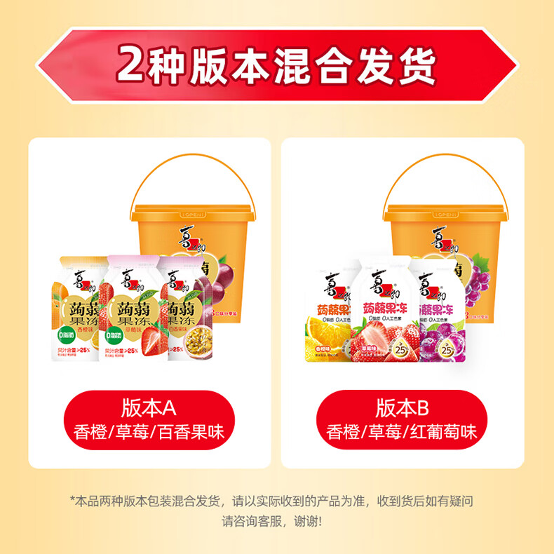 喜之郎【任选2桶更划算】蒟蒻果冻桶 520克每桶26小包 休闲儿童节日礼物 【3口味-葡萄荔枝蜜桃】*1桶