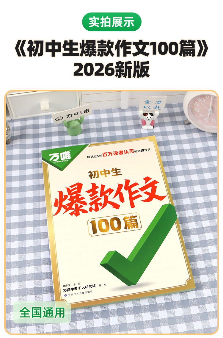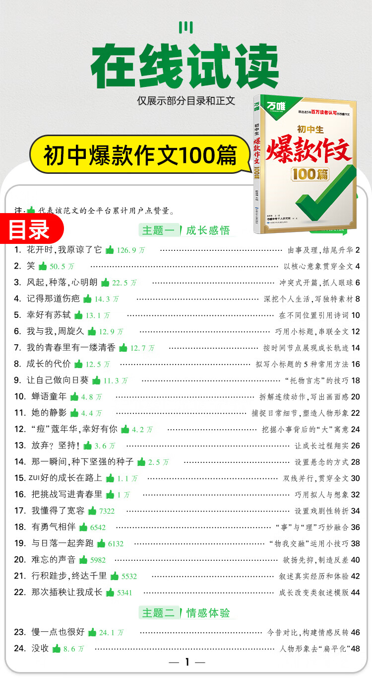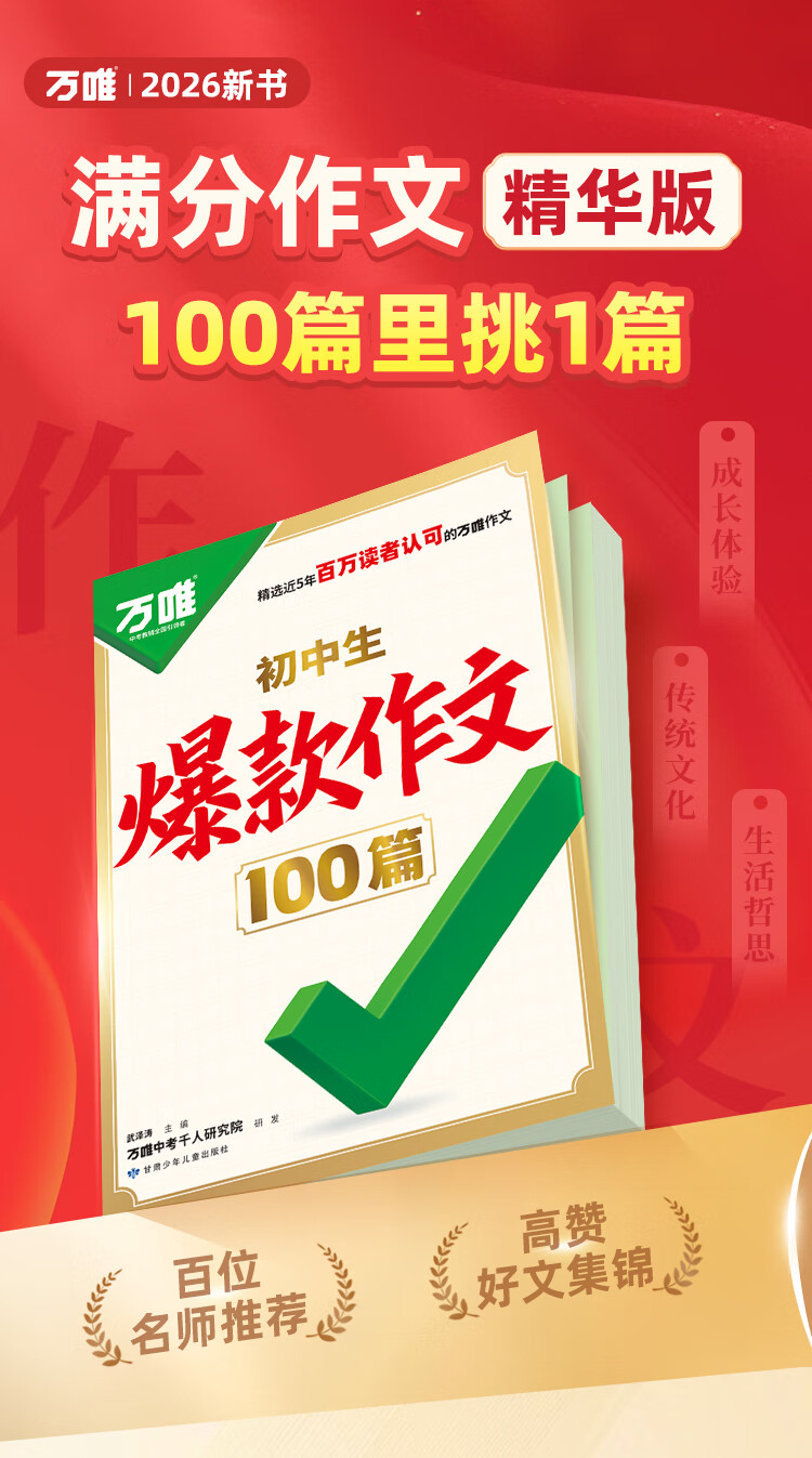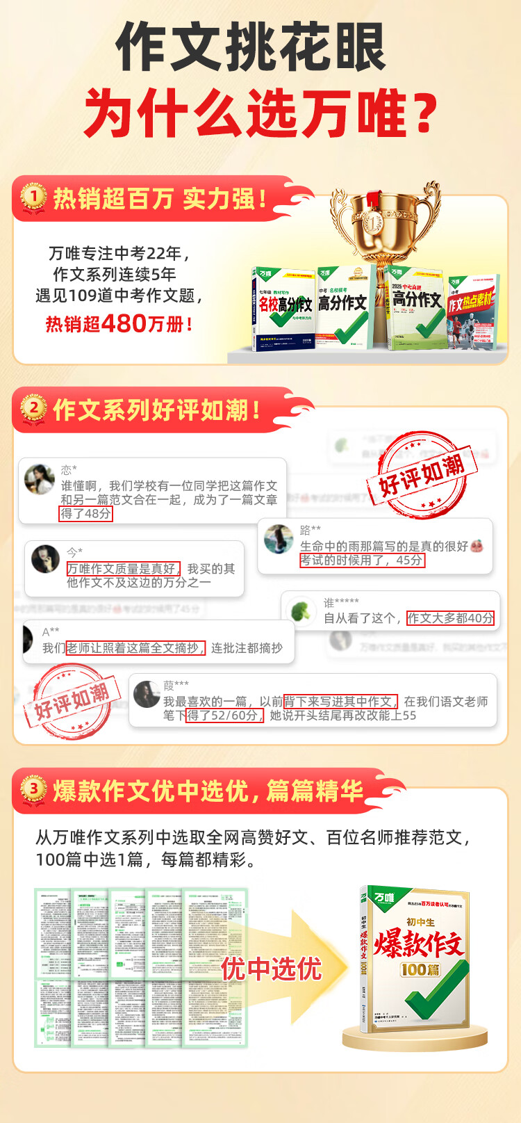 万唯中考初中生爆款作文100篇万唯中考满分作文2025新版中考真题作文初中作文素材写作模板写作技巧名校模考高分作文精选初中语文作文书万维旗舰店 初中通用 推荐 爆款作文100篇