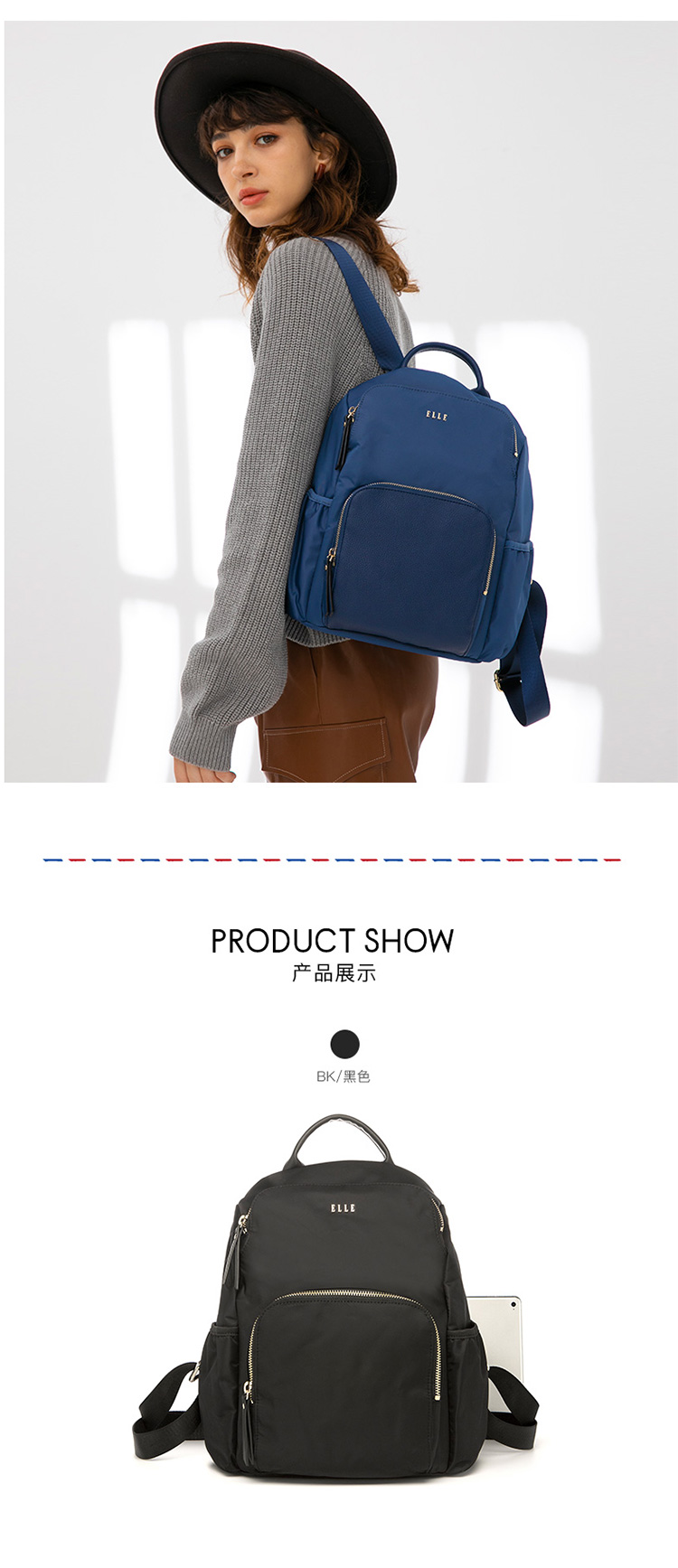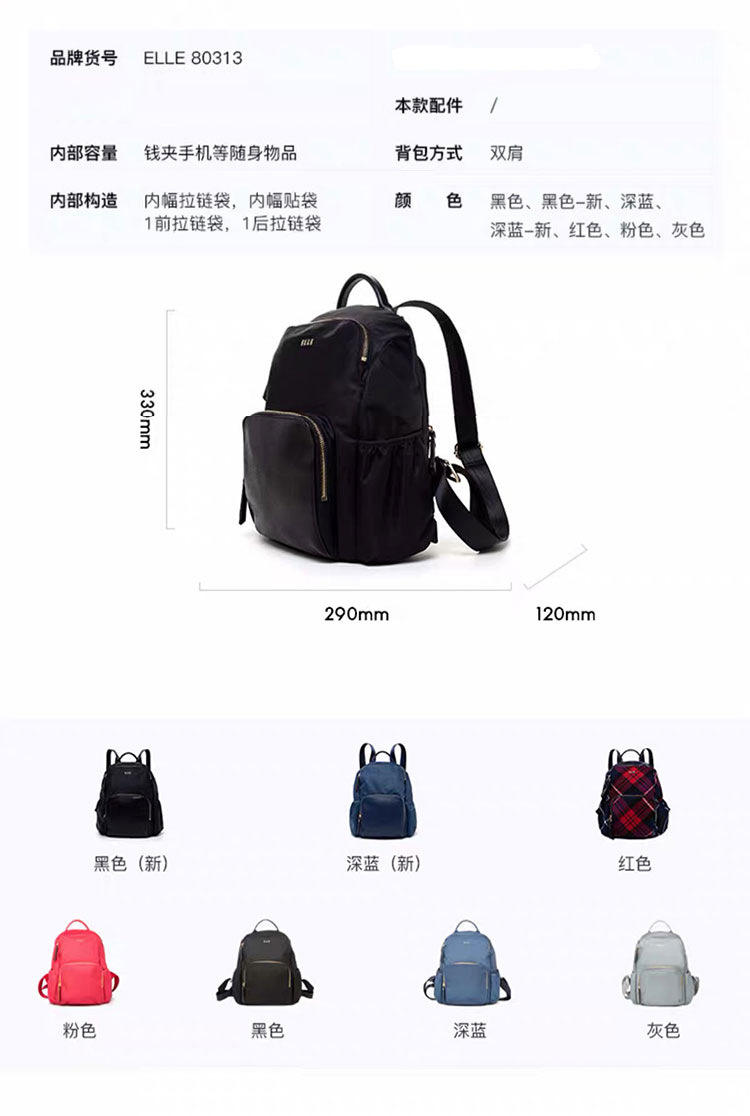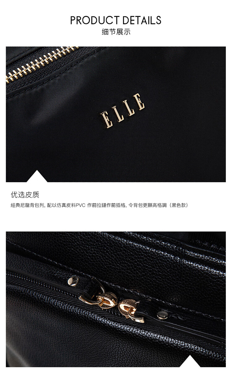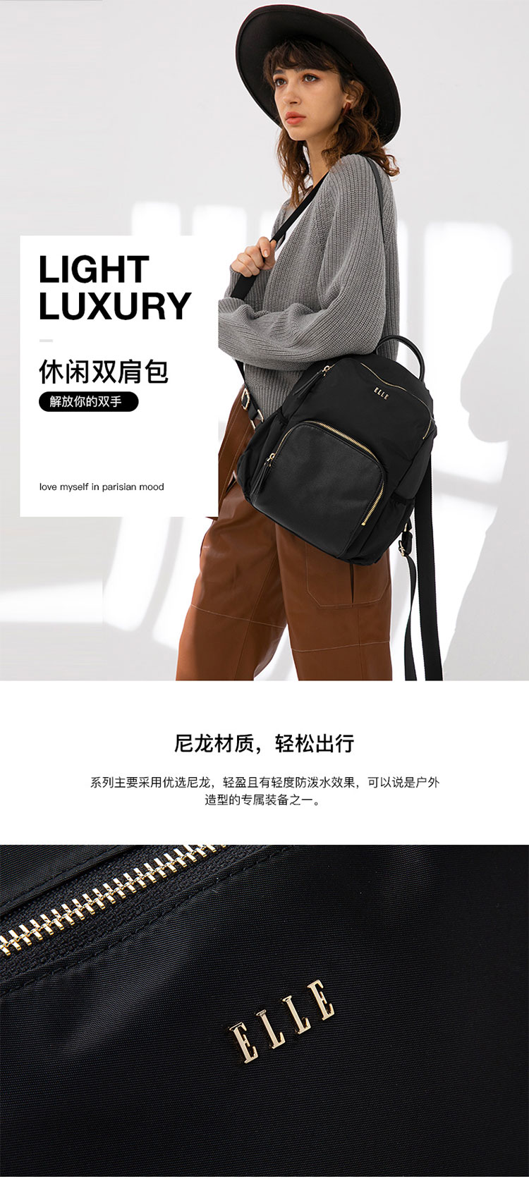 ELLE女包旅游大容量双肩运动书包初高中生中秋礼物80313黑