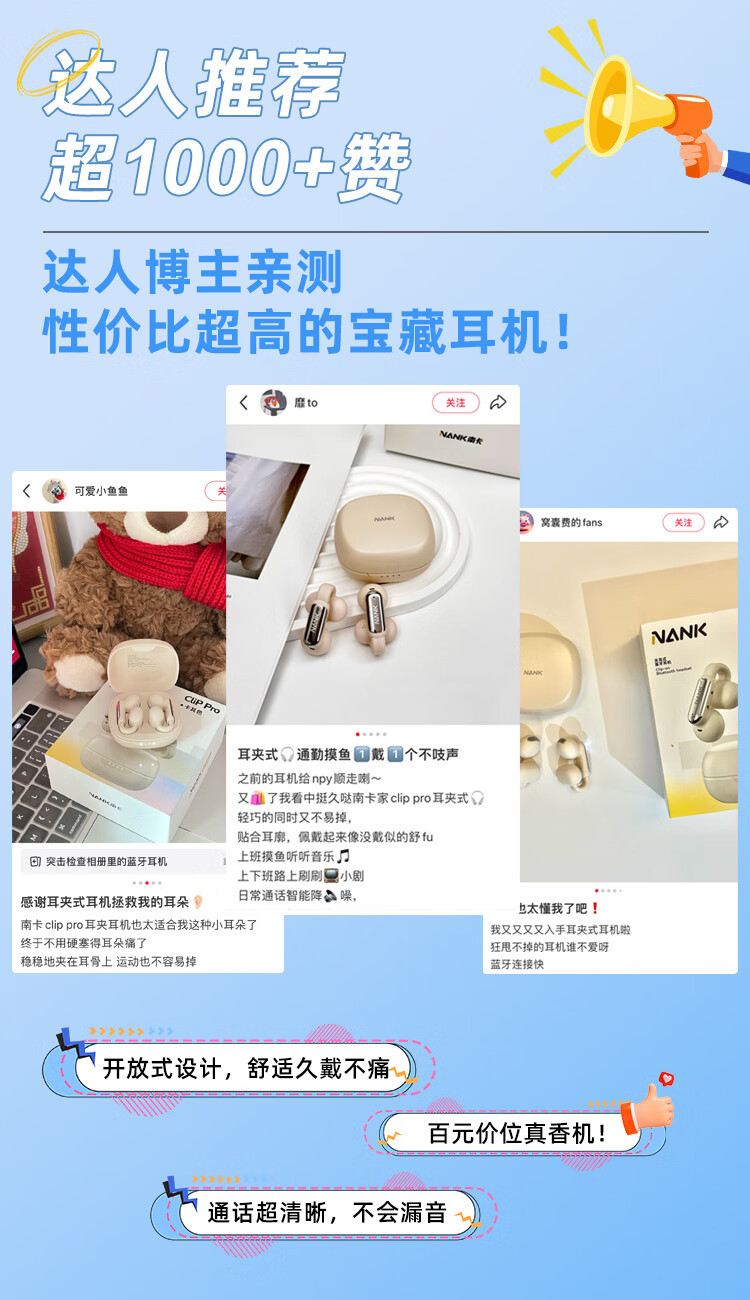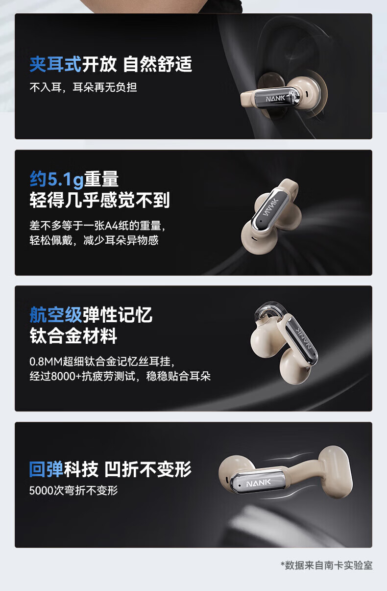 南卡【最性价比】Clip Pro耳夹式骨传导概念蓝牙耳机不入耳开放式耳机运动跑步健身防水游戏通话降噪 【最性价比】卡其色+哈曼同款蓝牙音响