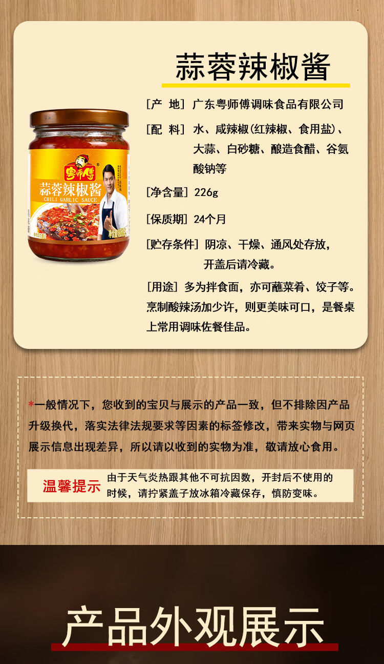 粤师傅蒜蓉辣椒酱226g即食蒜蓉酱生蚝扇贝烤茄子烧烤调料香辣火锅蘸料