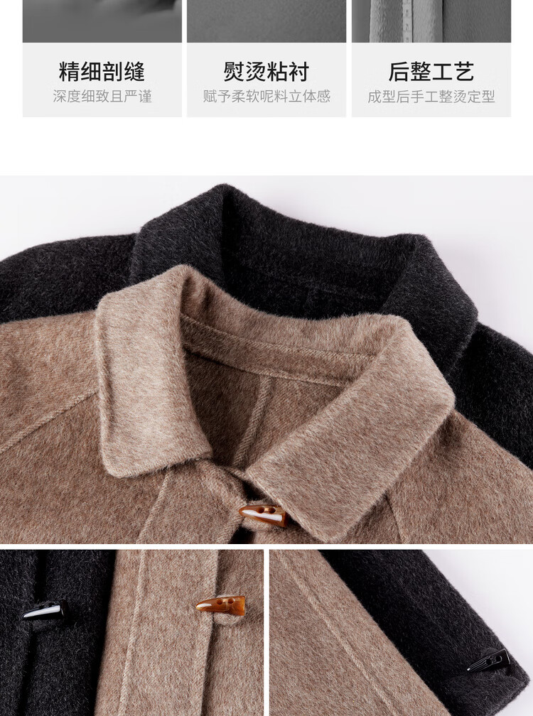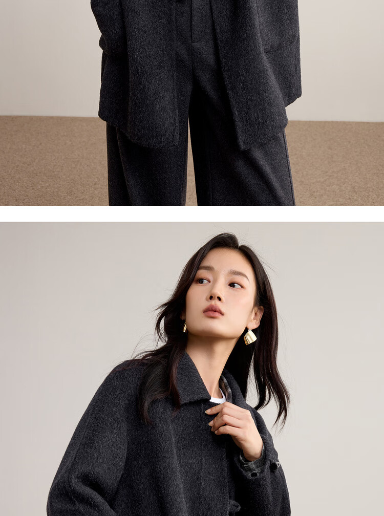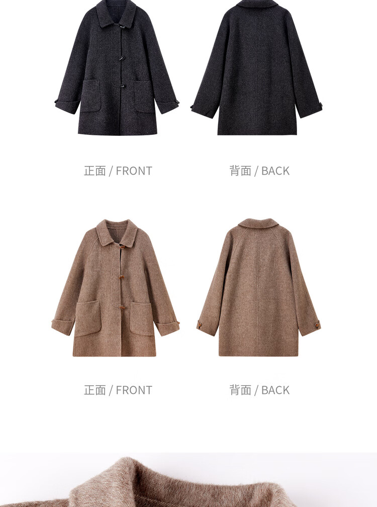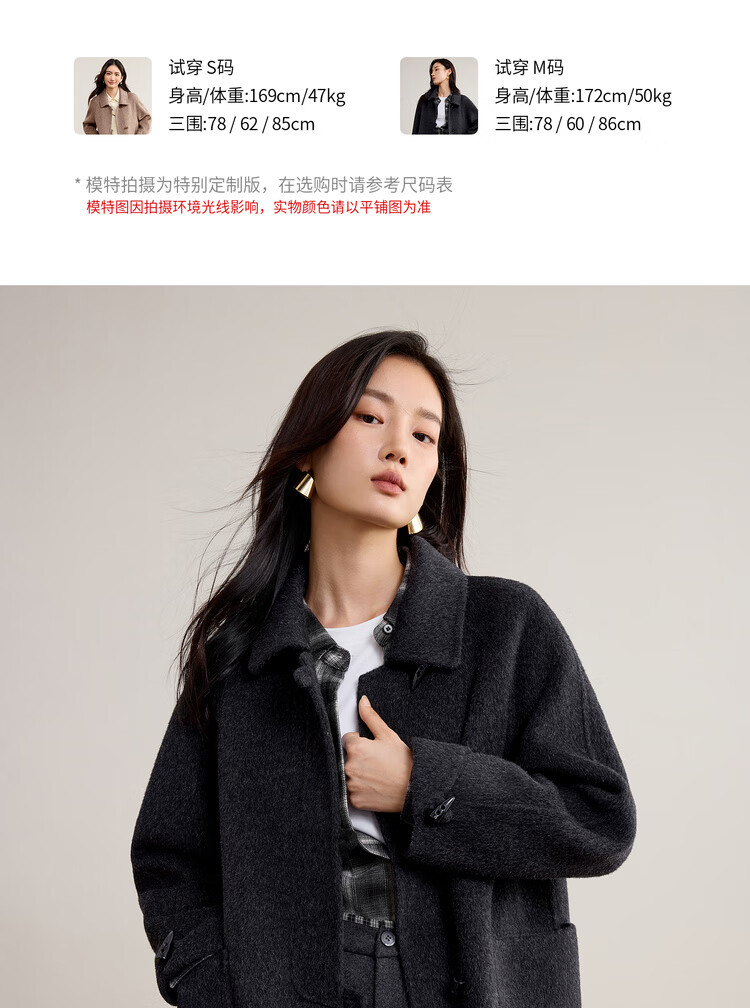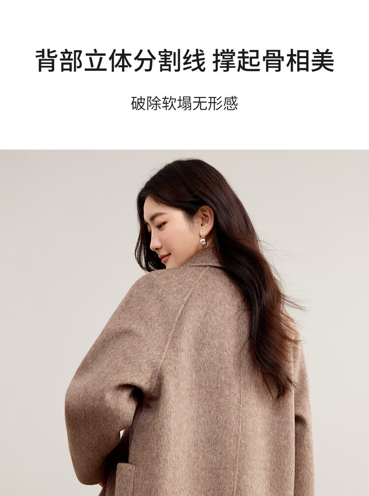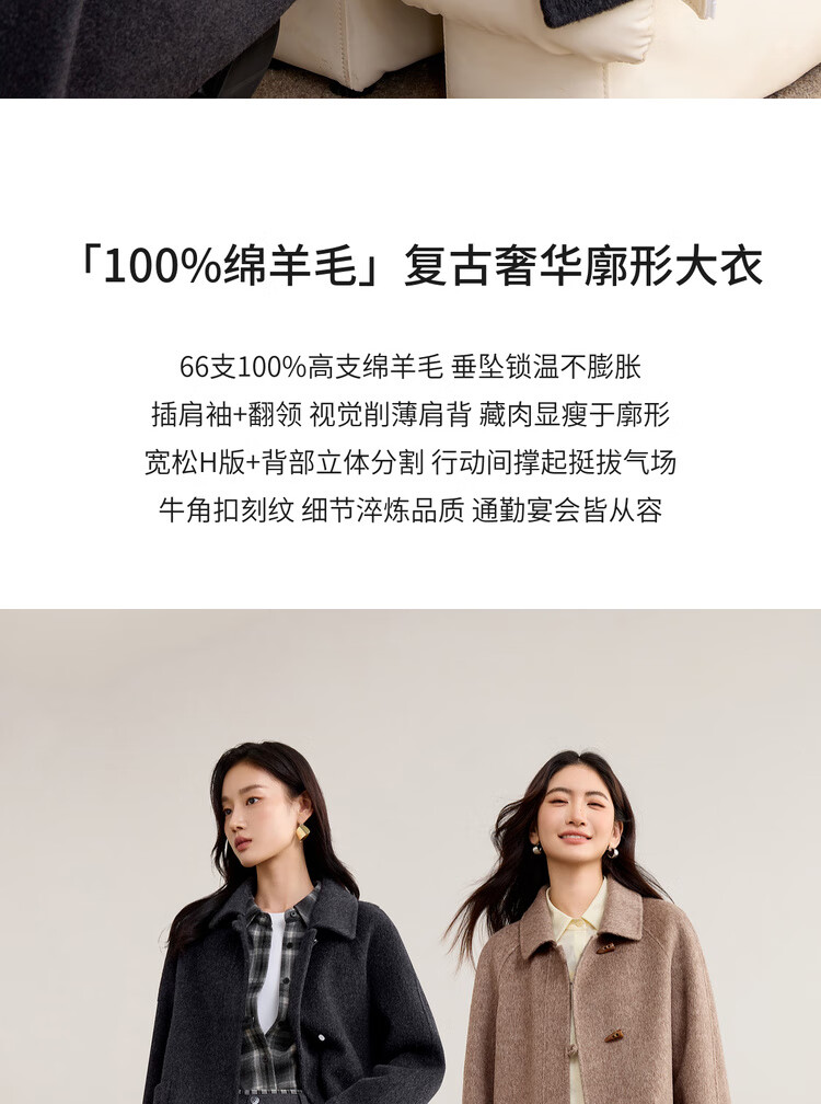 尚都比拉纯羊毛翻领毛呢大衣女冬季牛角扣长袖双面呢外套中长款宽松大衣
