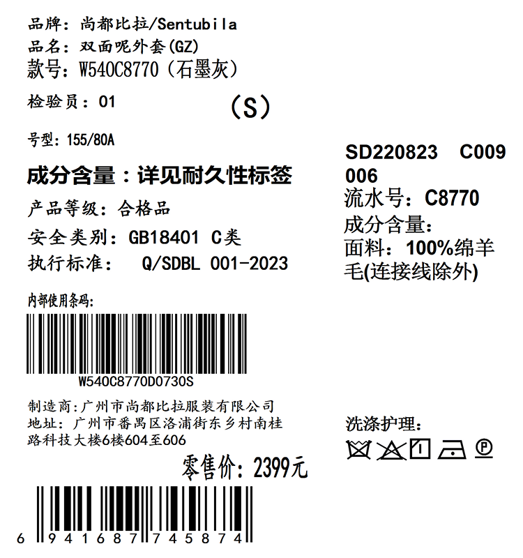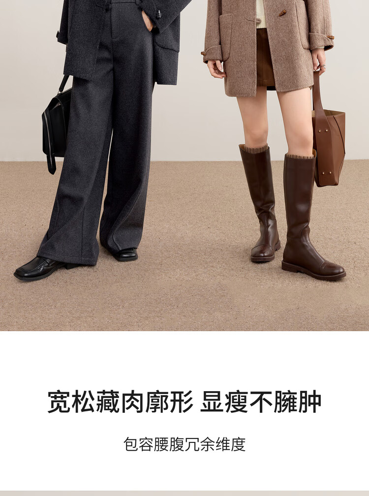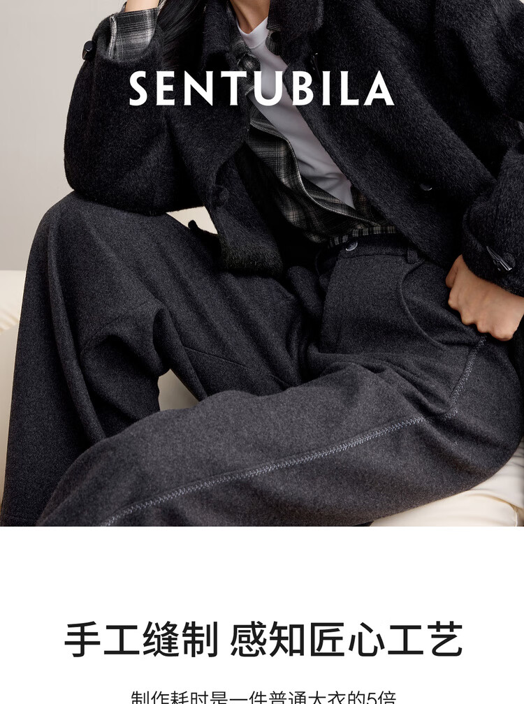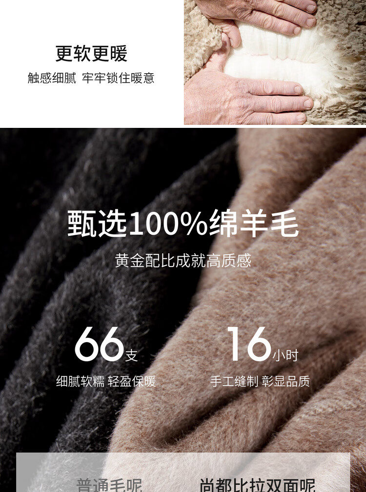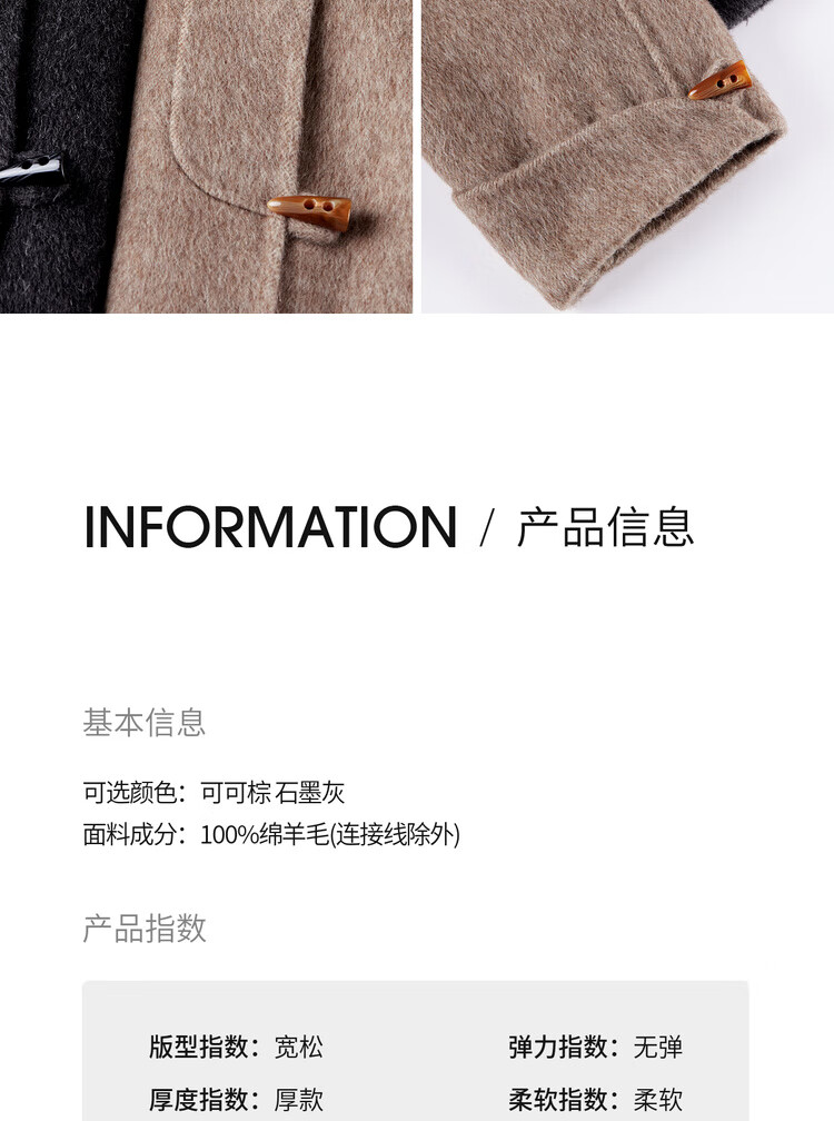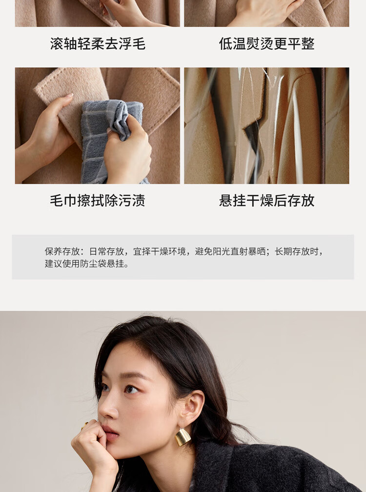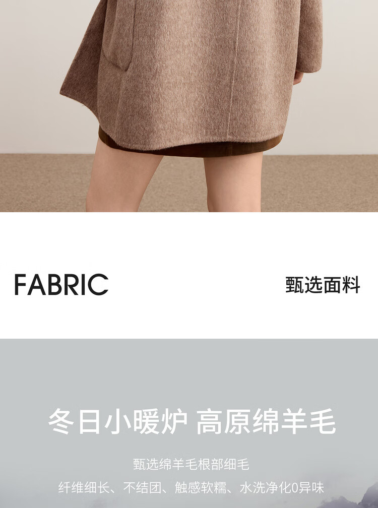 尚都比拉纯羊毛翻领毛呢大衣女冬季牛角扣长袖双面呢外套中长款宽松大衣