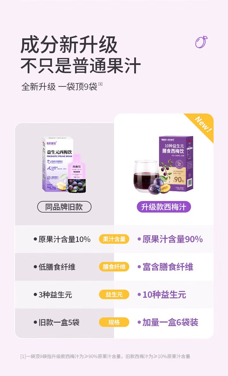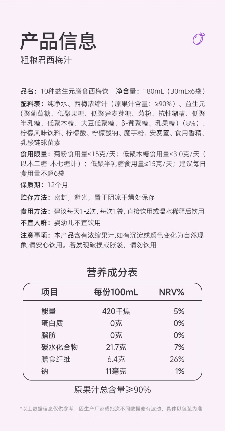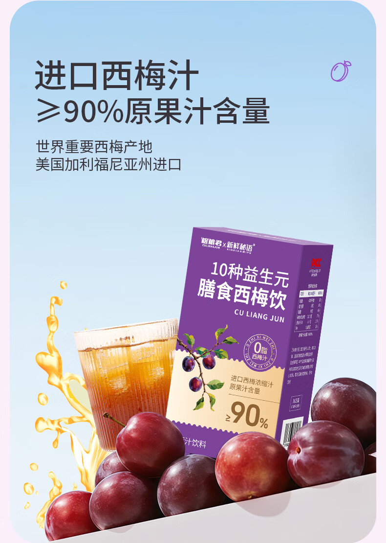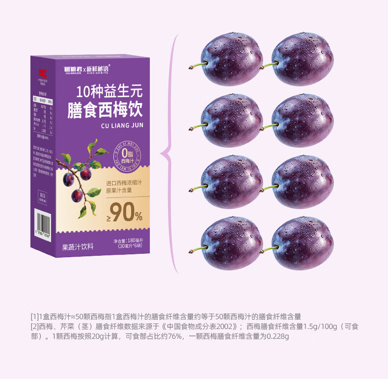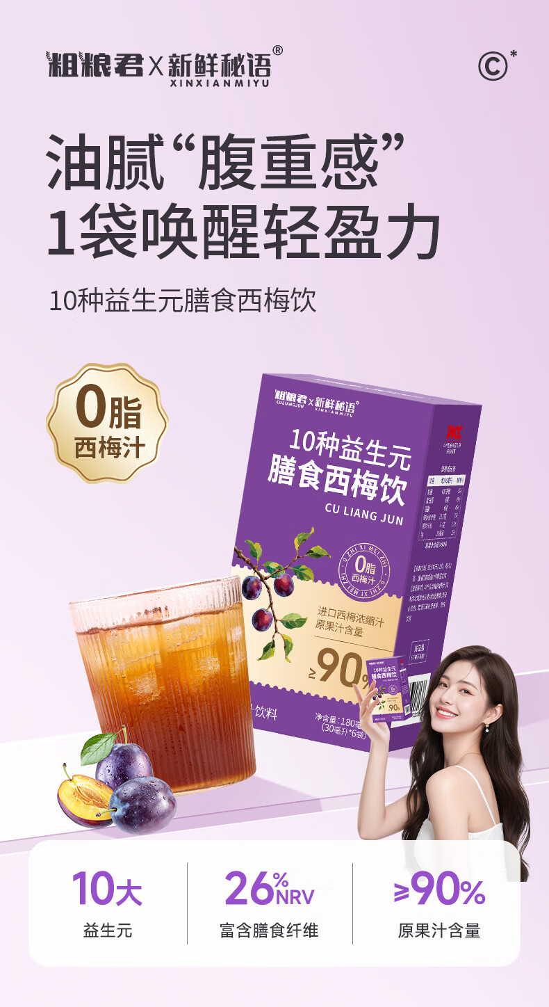 新鲜秘语10种益生元西梅汁纤维果饮0脂高膳食进口浓缩大餐救星果汁1盒6袋