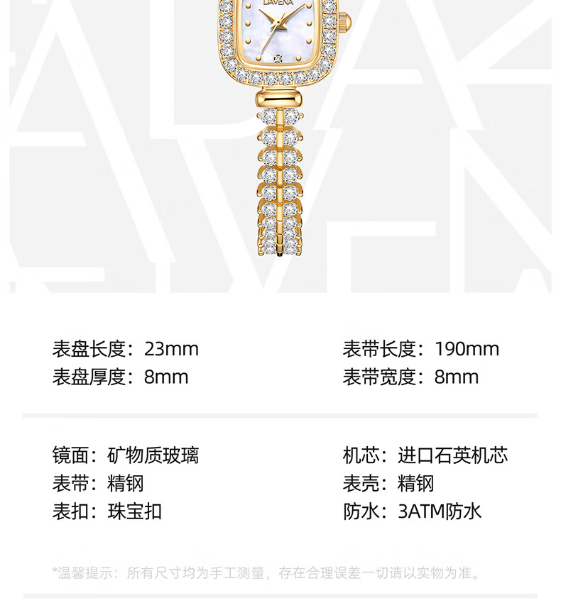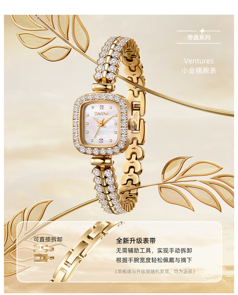 Davena蒂玮娜小金穗手表女款小银穗轻奢小众女士腕表生日礼物送女友