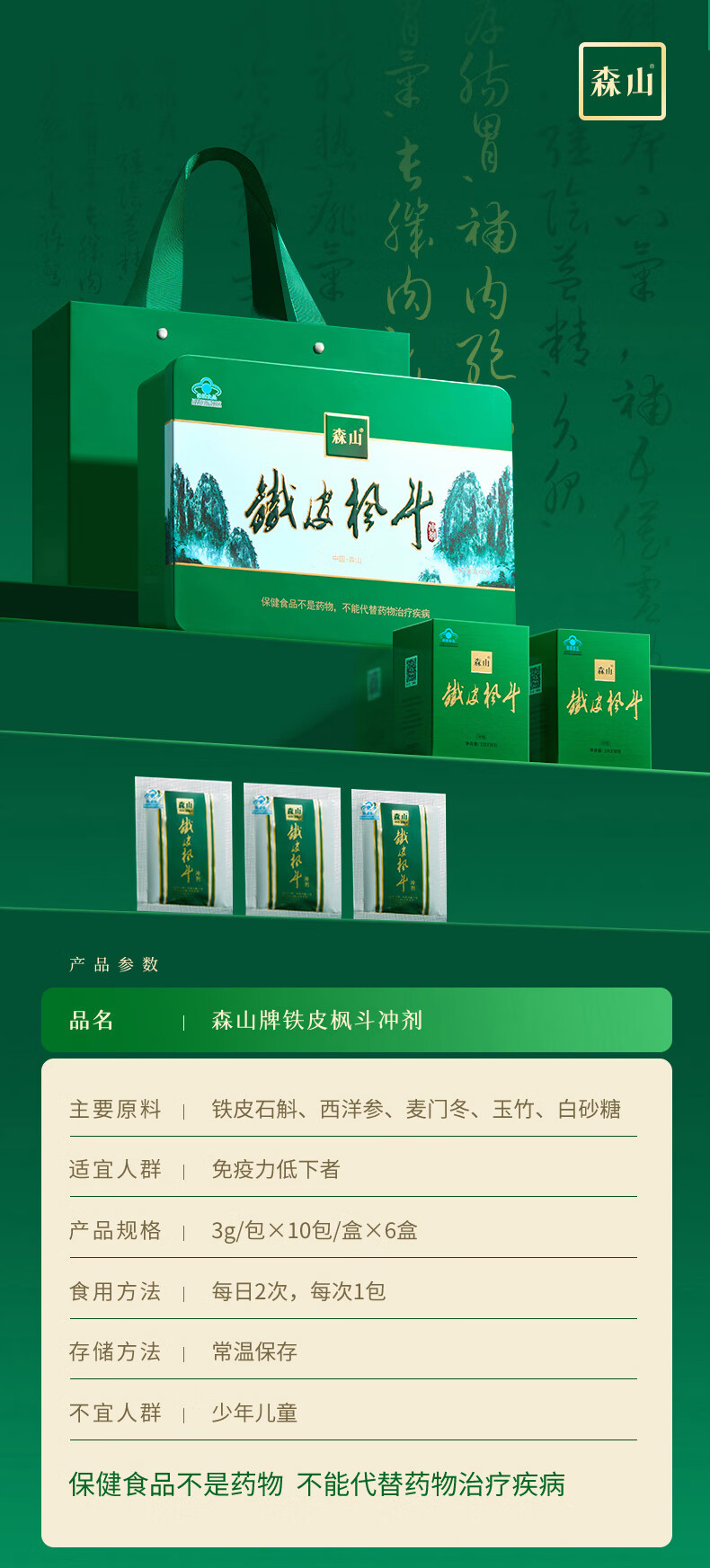 森山牌铁皮枫斗冲剂 石斛粉 增强免疫 60包铁盒装 中秋礼品 礼盒 60包冲剂礼盒装
