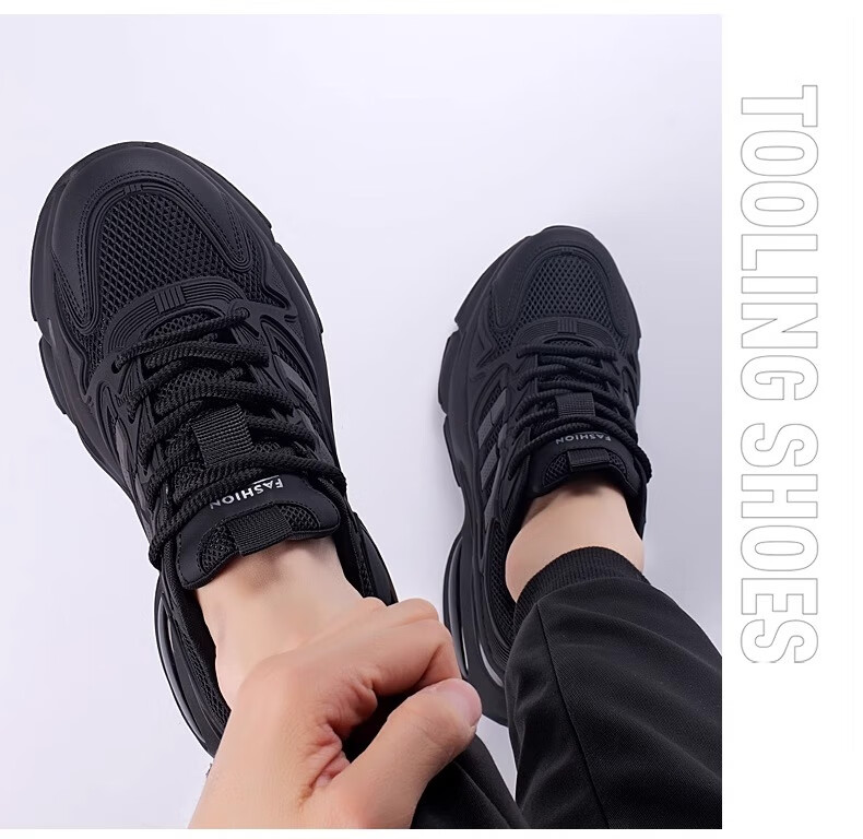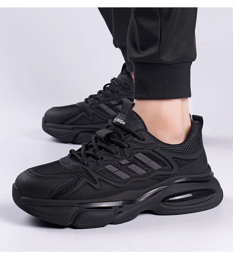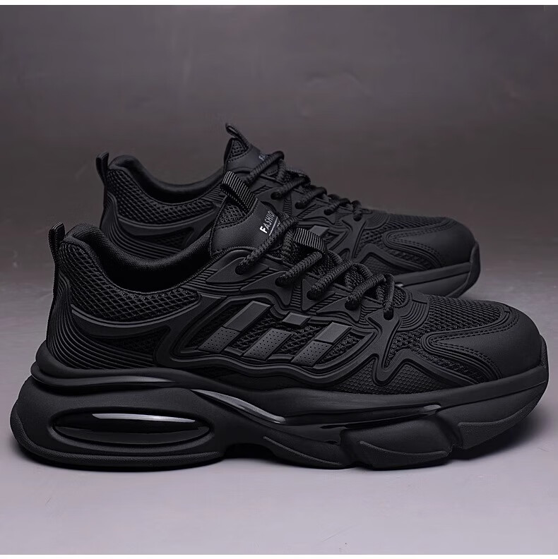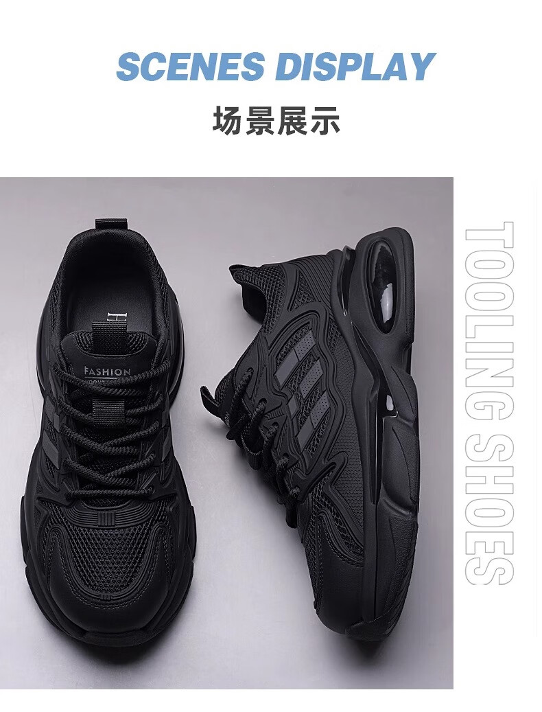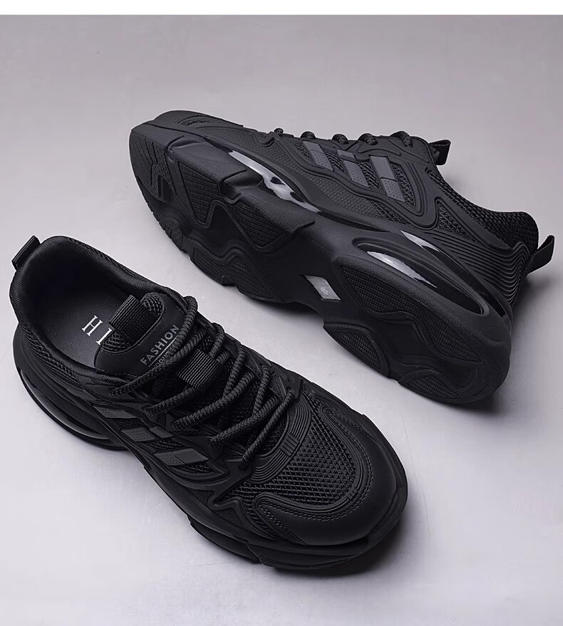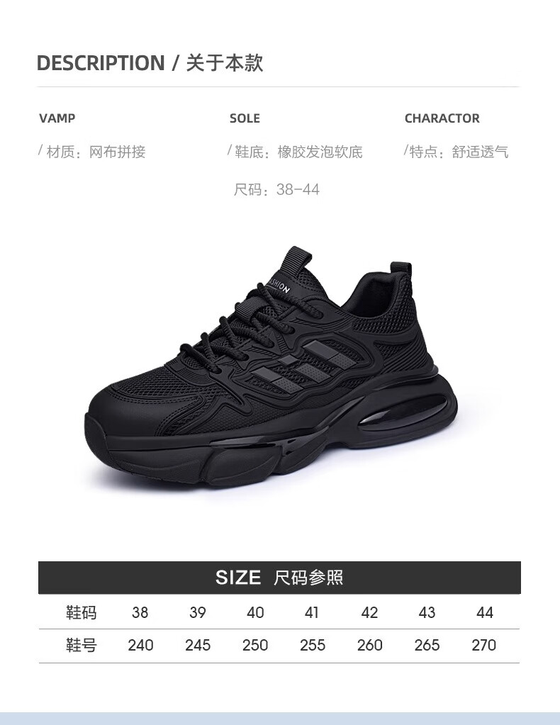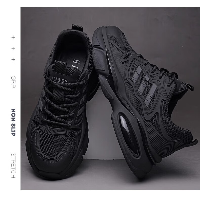 罗宾赐品牌轻奢男鞋厚底增高老爹鞋百搭时尚休闲鞋新款网面透气运动鞋男 黑色【冰丝网面】-高端男鞋 42