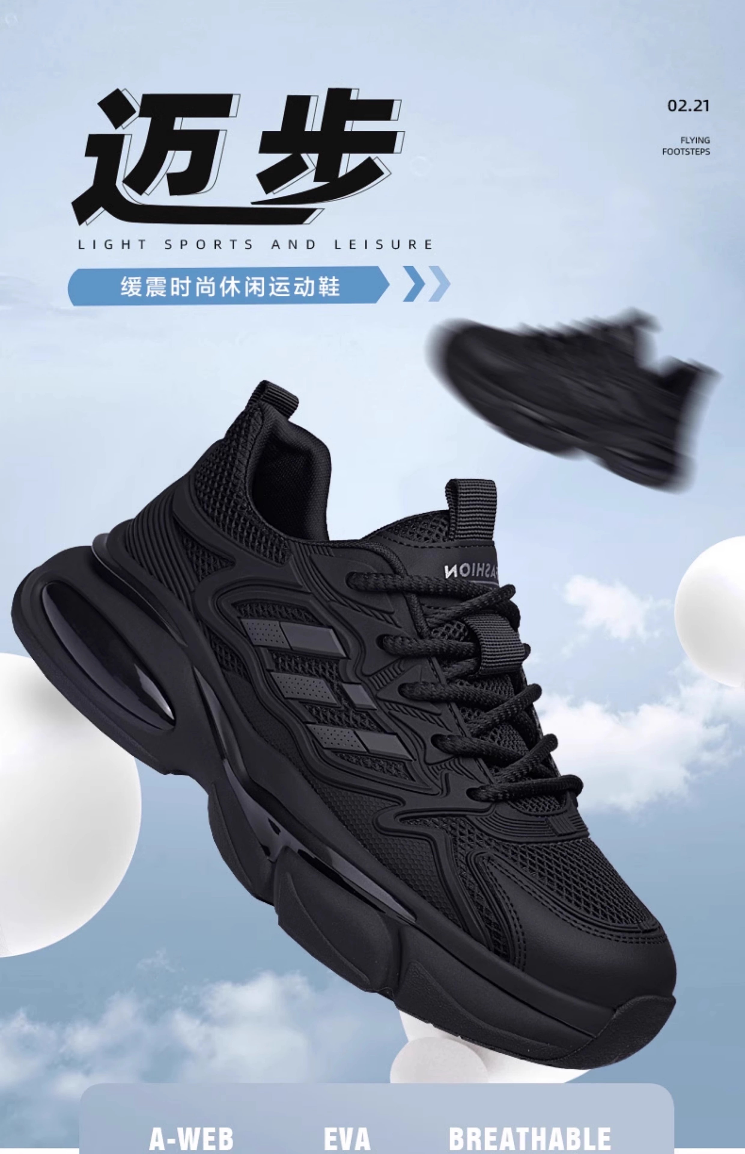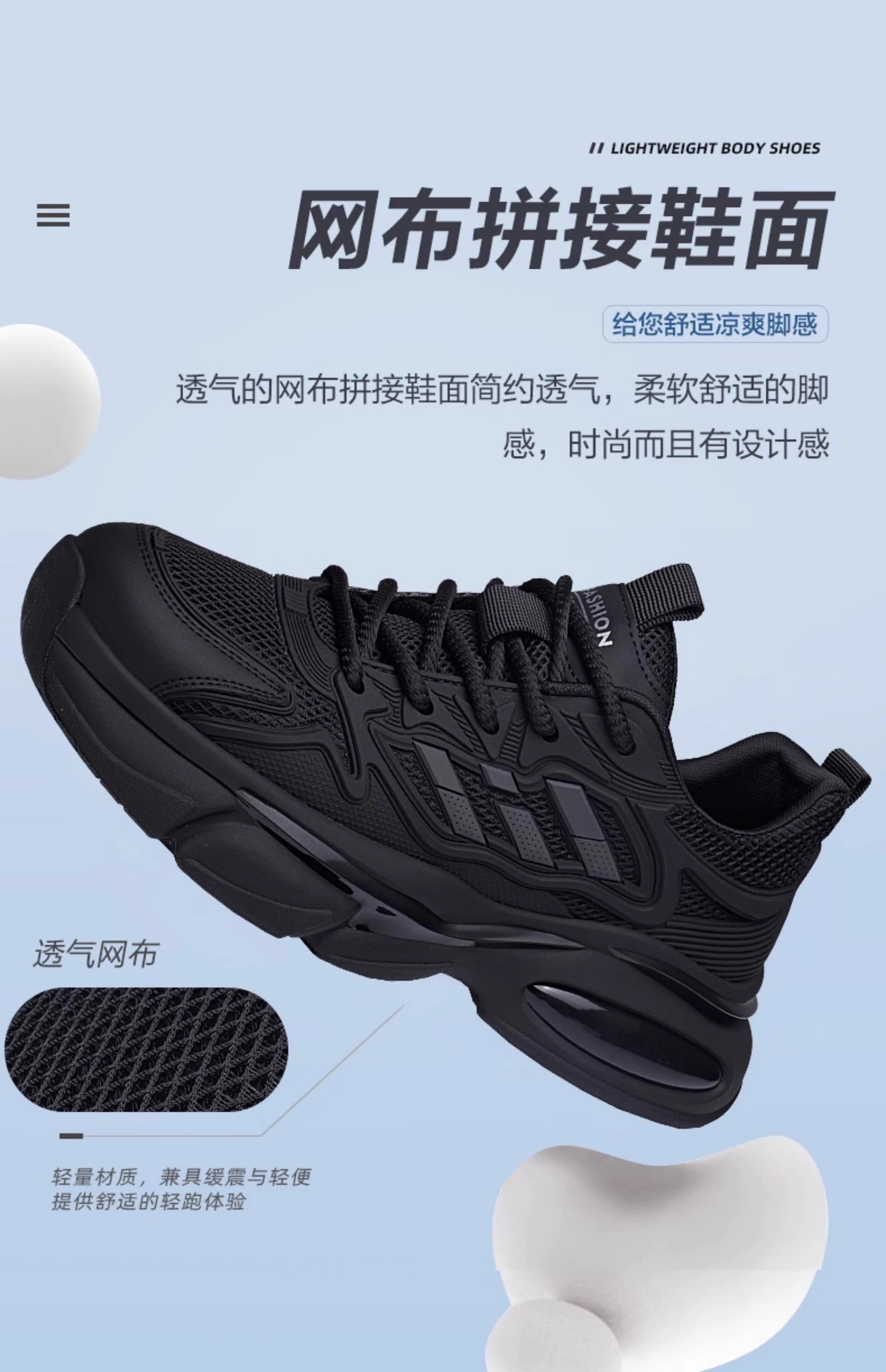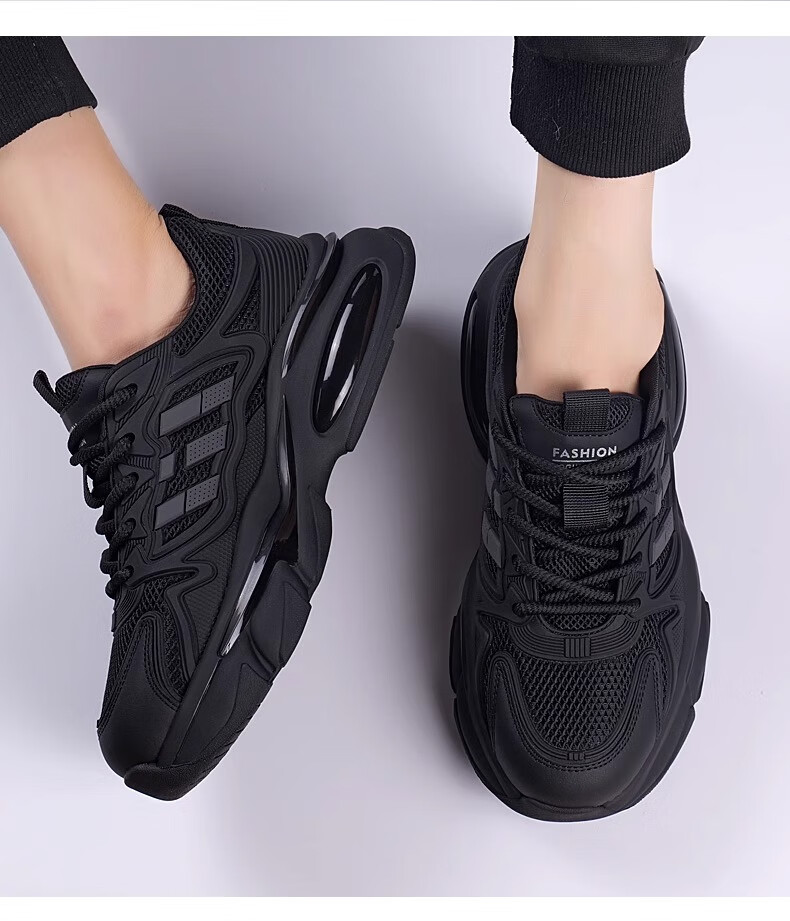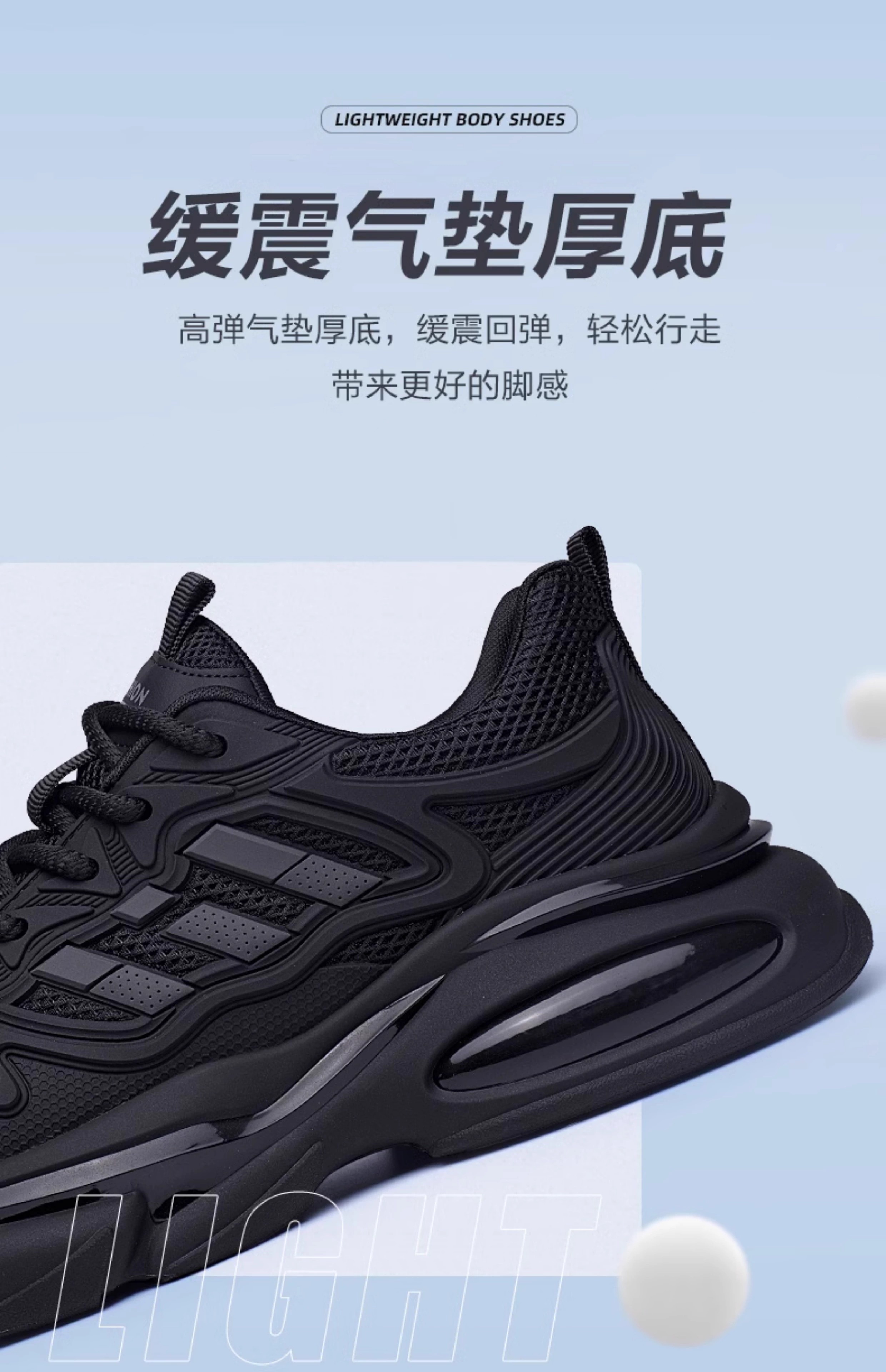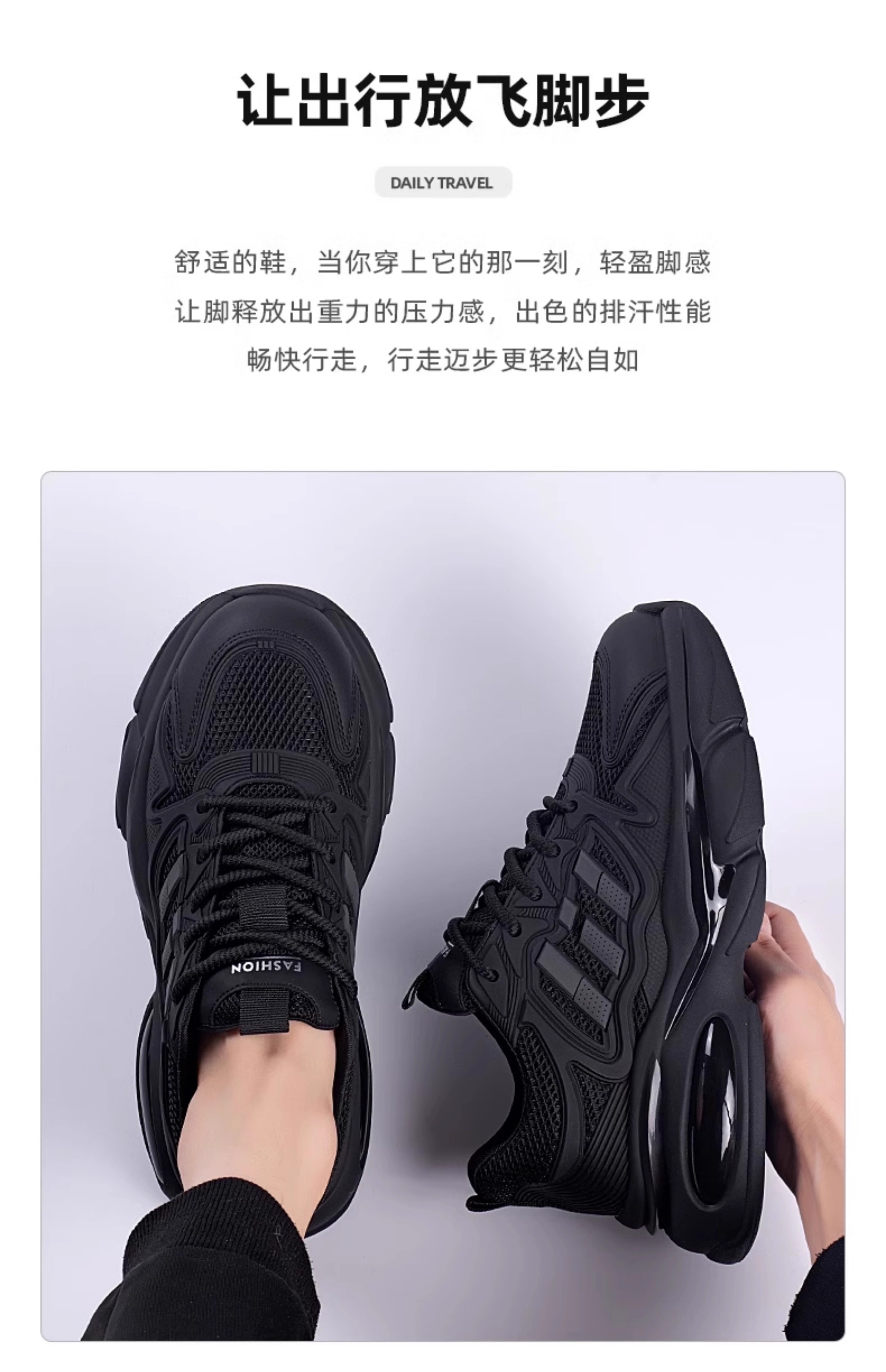 罗宾赐品牌轻奢男鞋厚底增高老爹鞋百搭时尚休闲鞋新款网面透气运动鞋男 黑色【冰丝网面】-高端男鞋 42