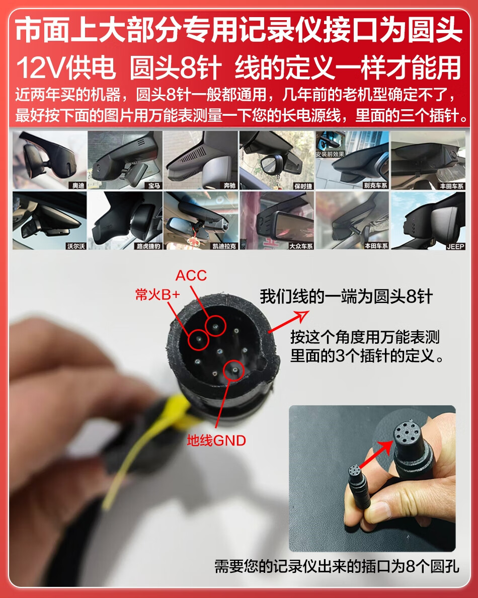 适用BMW雨感取电线 线WIFI款专用行车记录仪8针圆头一分二电源线 专用记录仪12V转8针圆头13-15X1