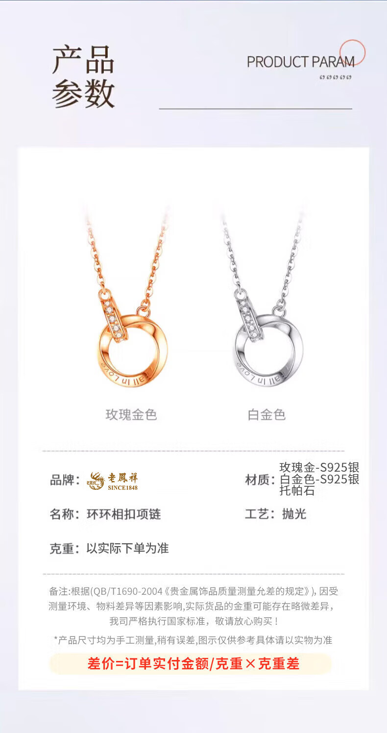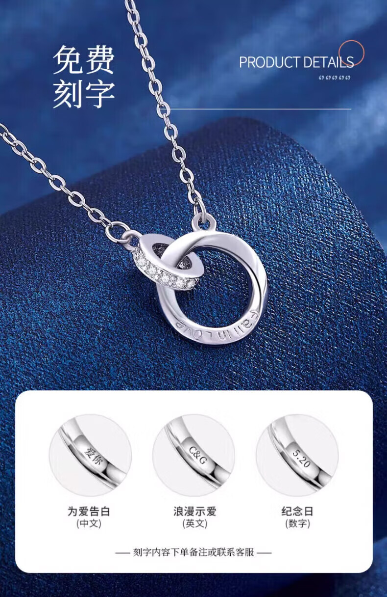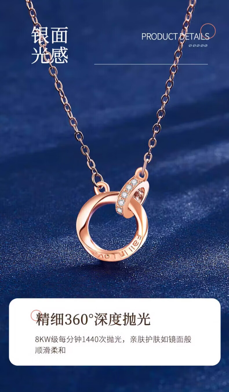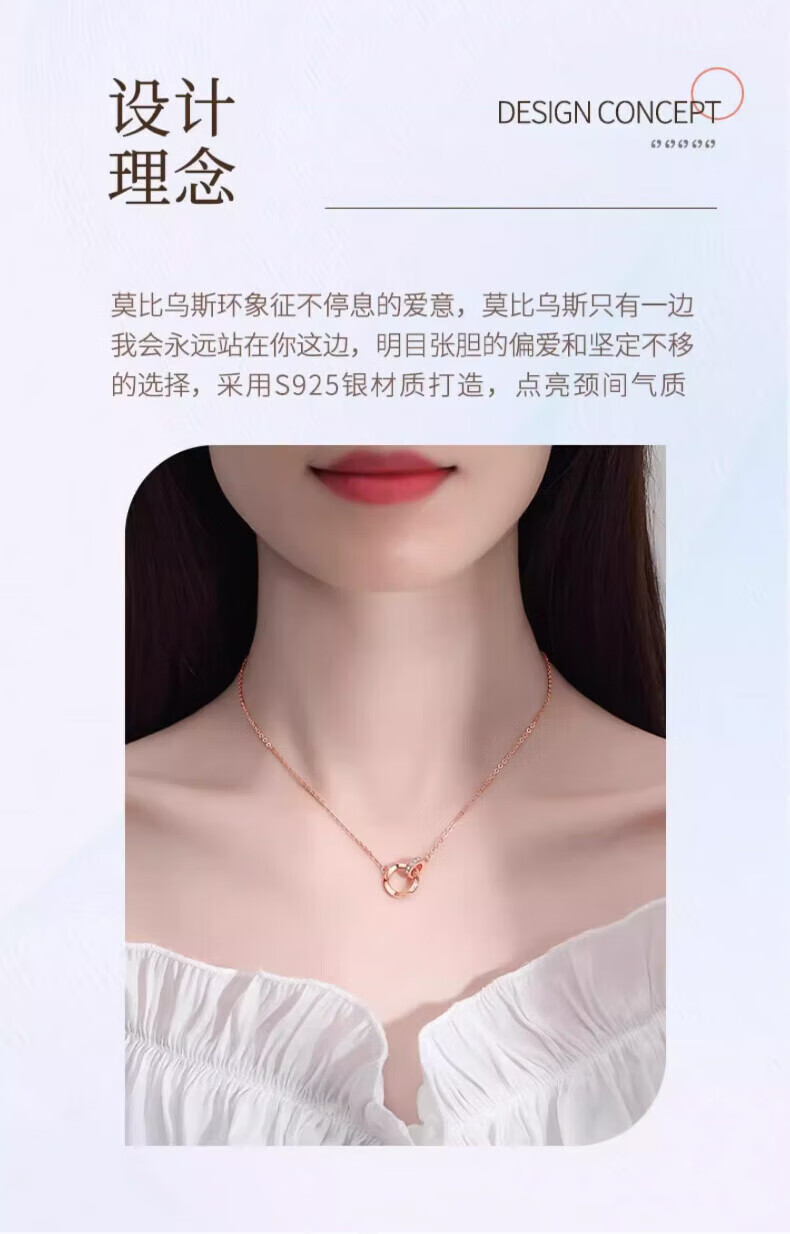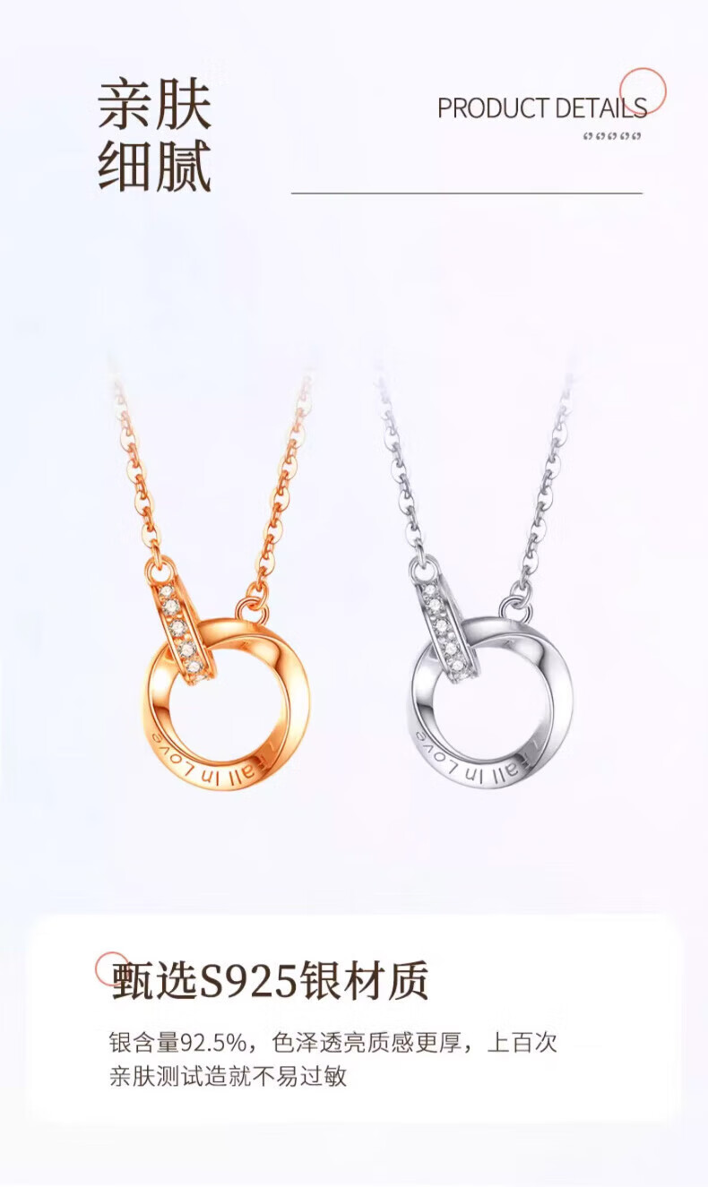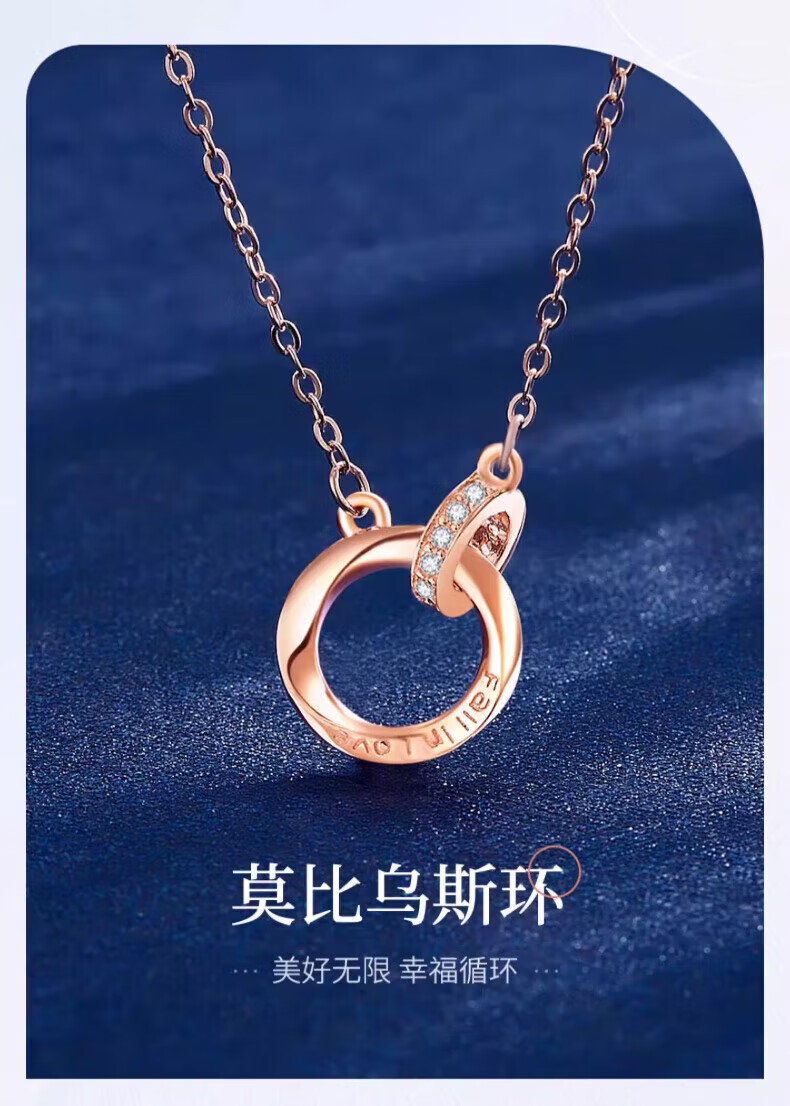 老凤祥925银莫比乌斯环项链女士吊坠锁骨生日生日礼物女士送女朋友老婆 925银*莫比乌斯项链【玫瑰金色】七夕礼盒