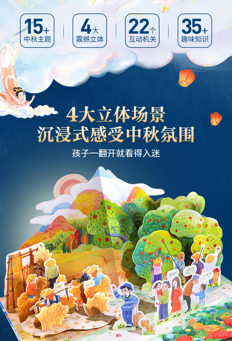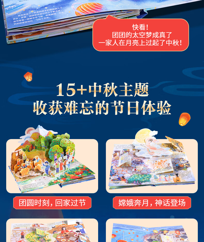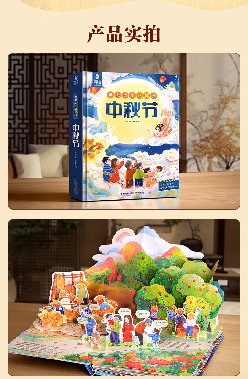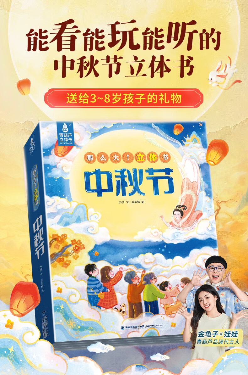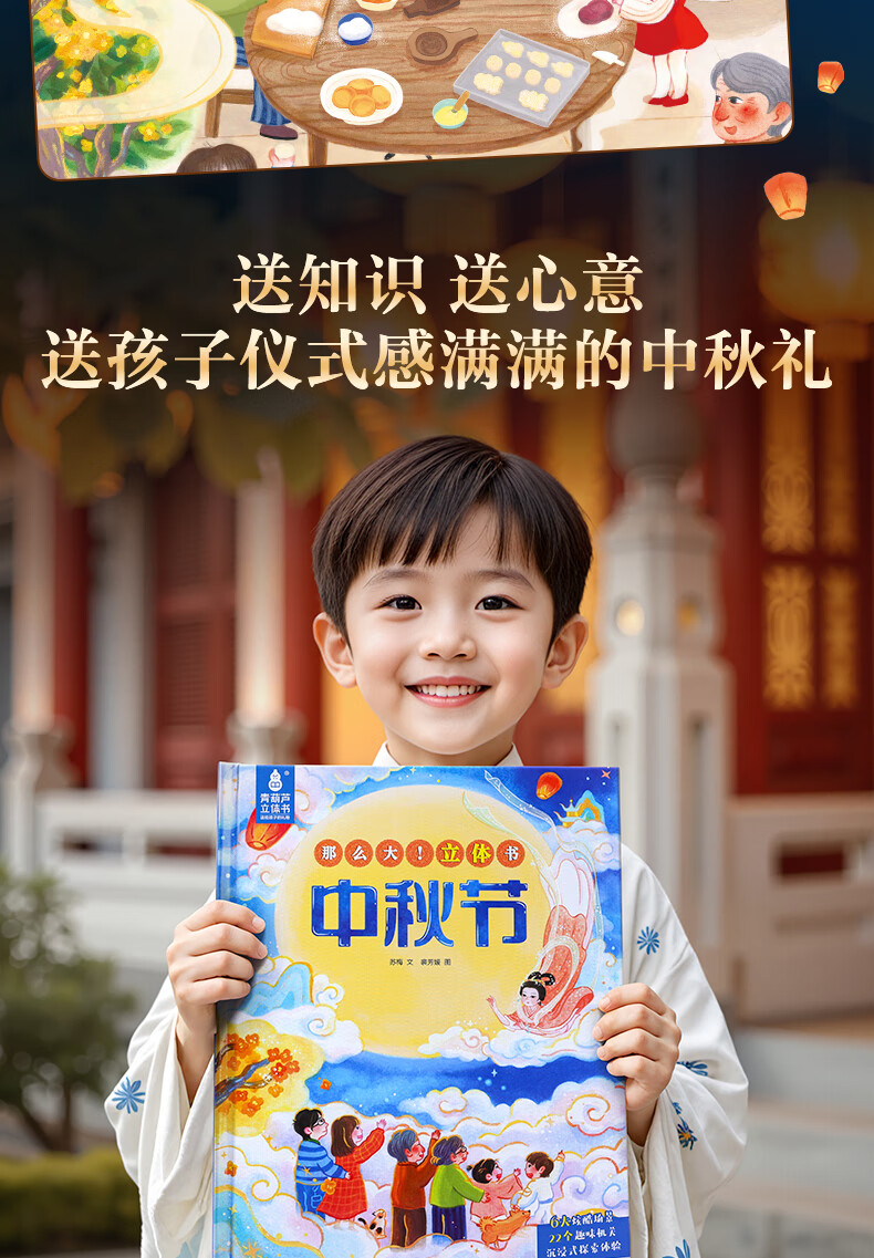 青葫芦那么大中秋节3d立体书 节日体验绘本儿童翻翻书传统节日礼物送礼故事图书宝宝早教读物3-6-8岁故事书幼儿园学前入园机关书籍绘本 那么大!立体书:中秋节