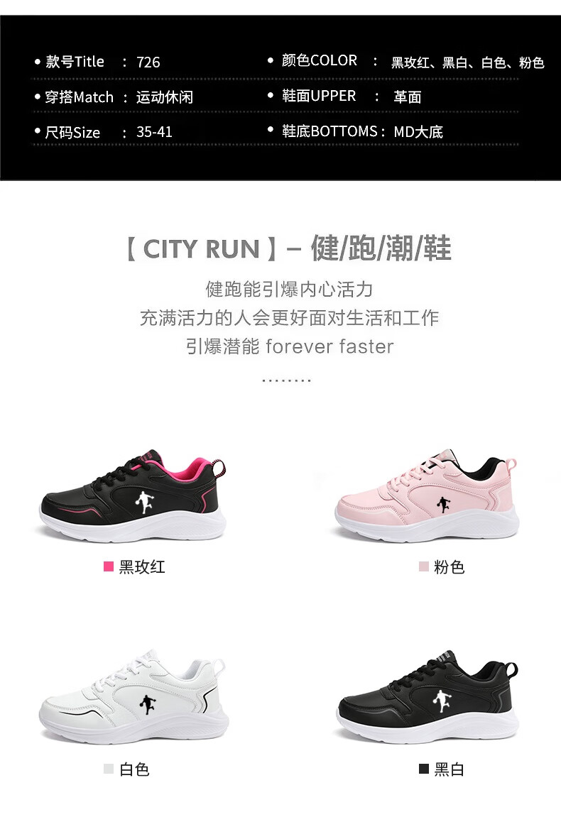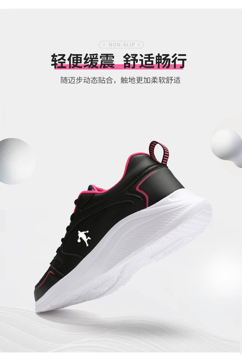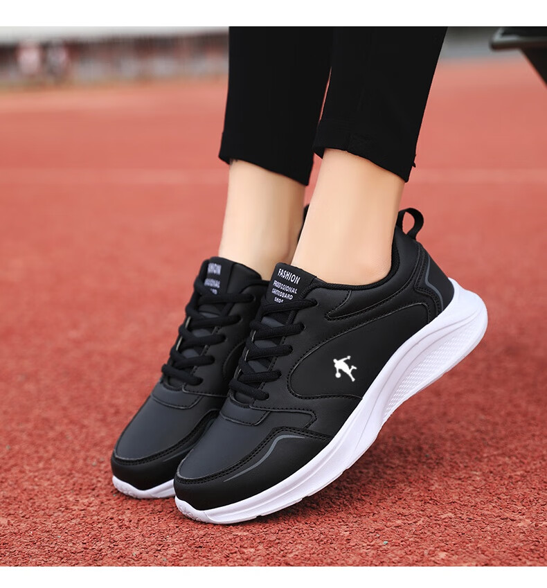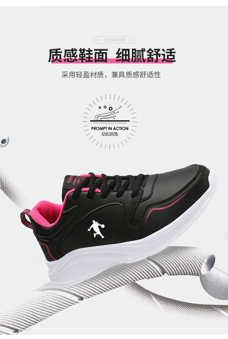里奇.乔丹 RICKY JORDAN品牌断码女鞋妈妈运动鞋春秋新款皮面防水跑步鞋软底网面透气女鞋 黑玫红726防水款【下单送无线耳机】 37