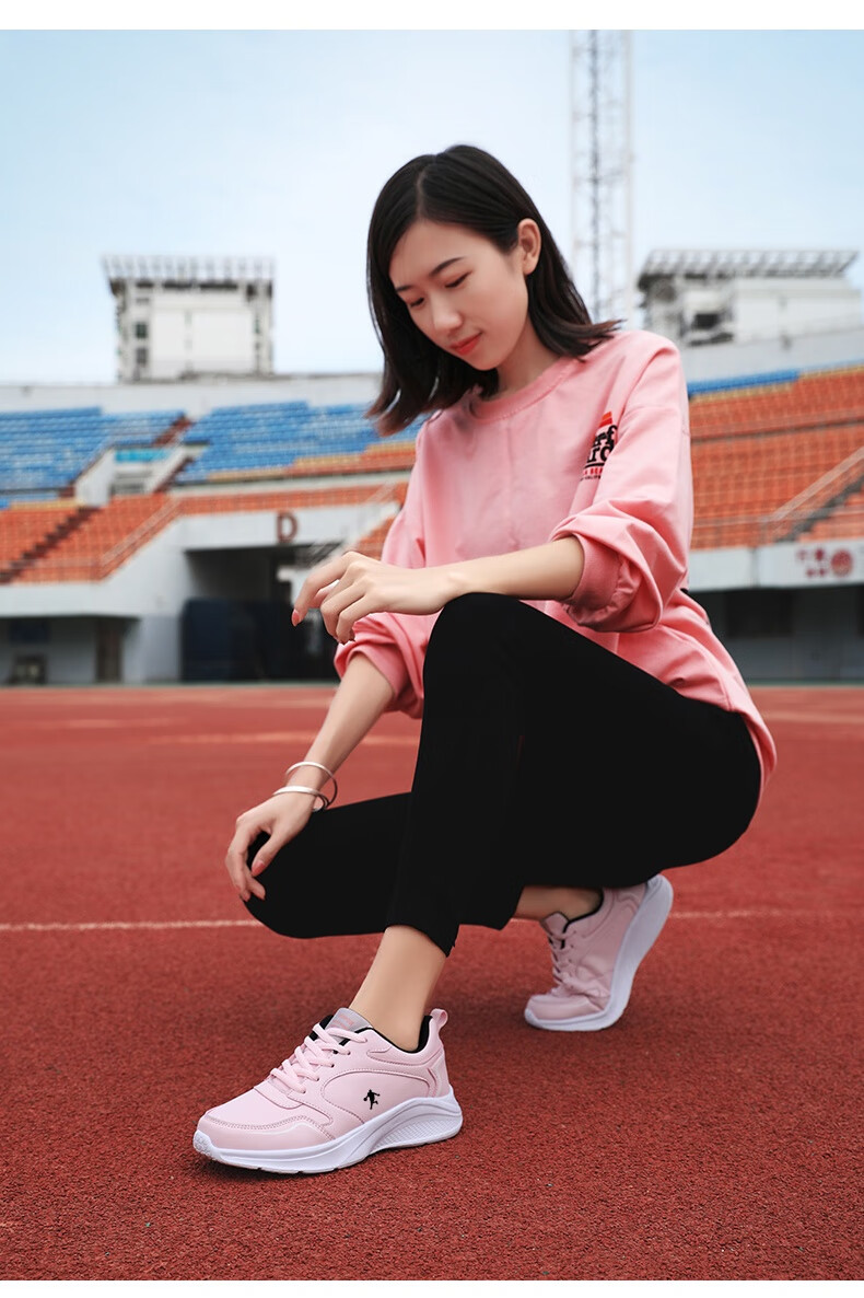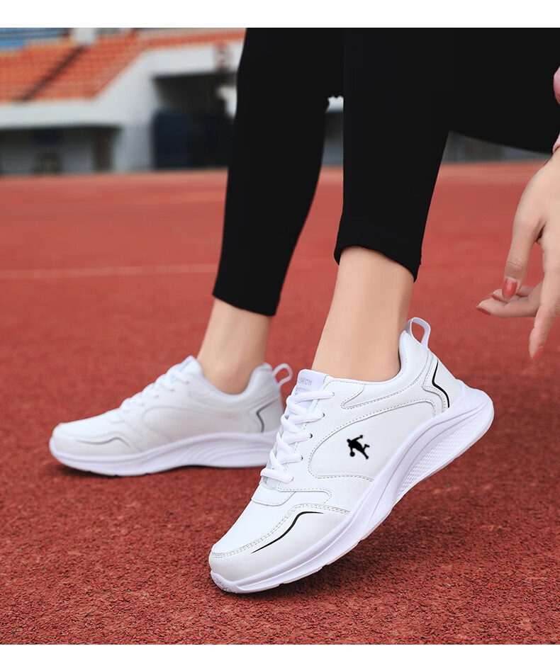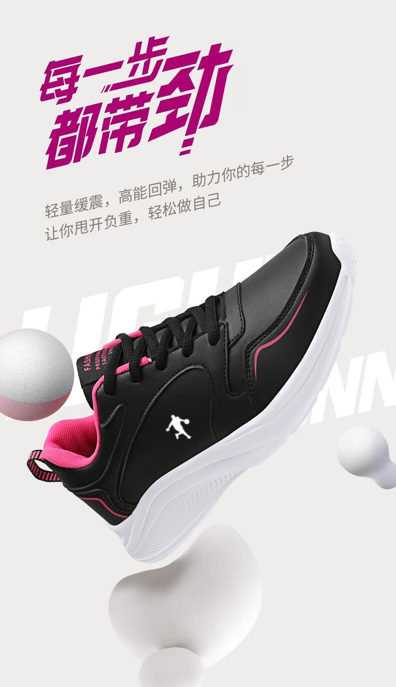 里奇.乔丹 RICKY JORDAN品牌断码女鞋妈妈运动鞋春秋新款皮面防水跑步鞋软底网面透气女鞋 黑玫红726防水款【下单送无线耳机】 37