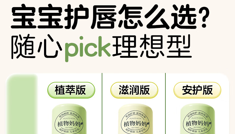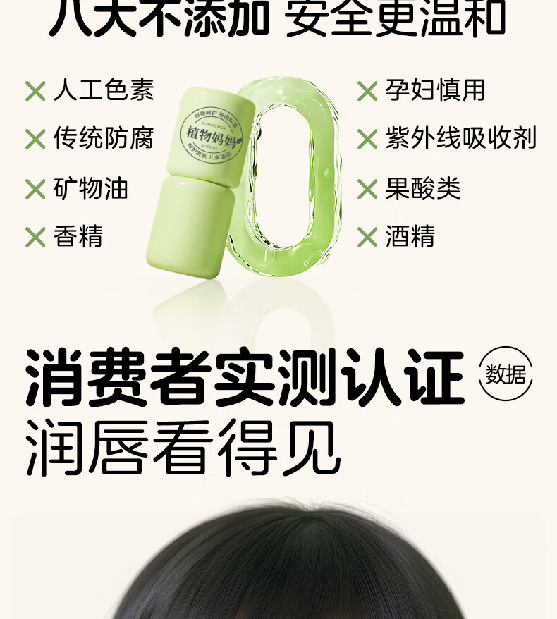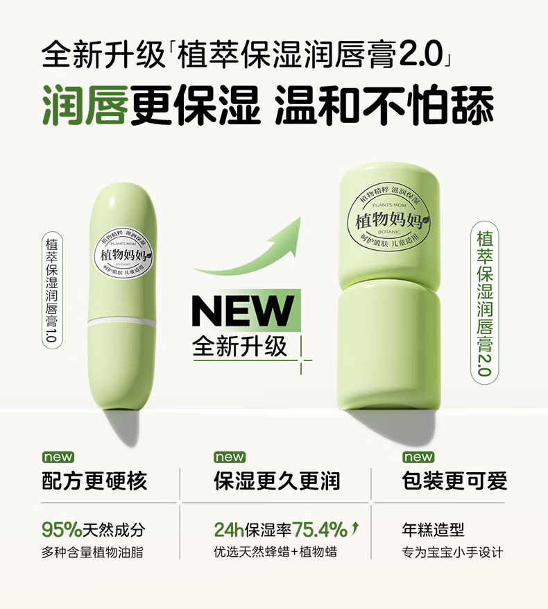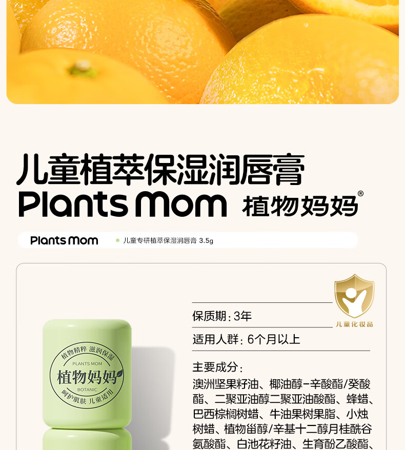 植物妈妈儿童唇膏6-12岁婴儿宝宝润唇膏3-6岁唇膏儿童专用滋润防干裂口油 【1.0经典款】儿童植萃滋润唇膏3.5g*2