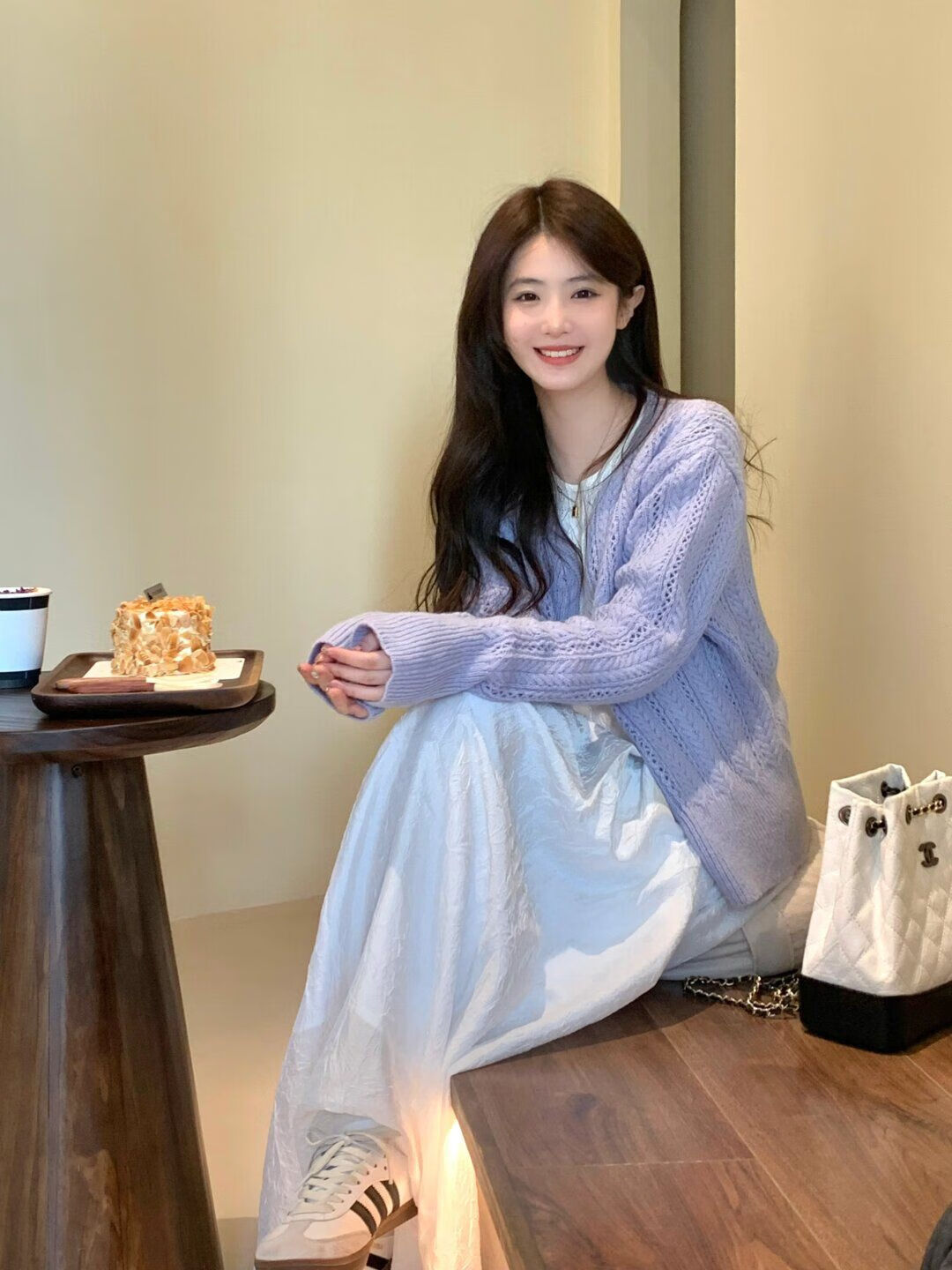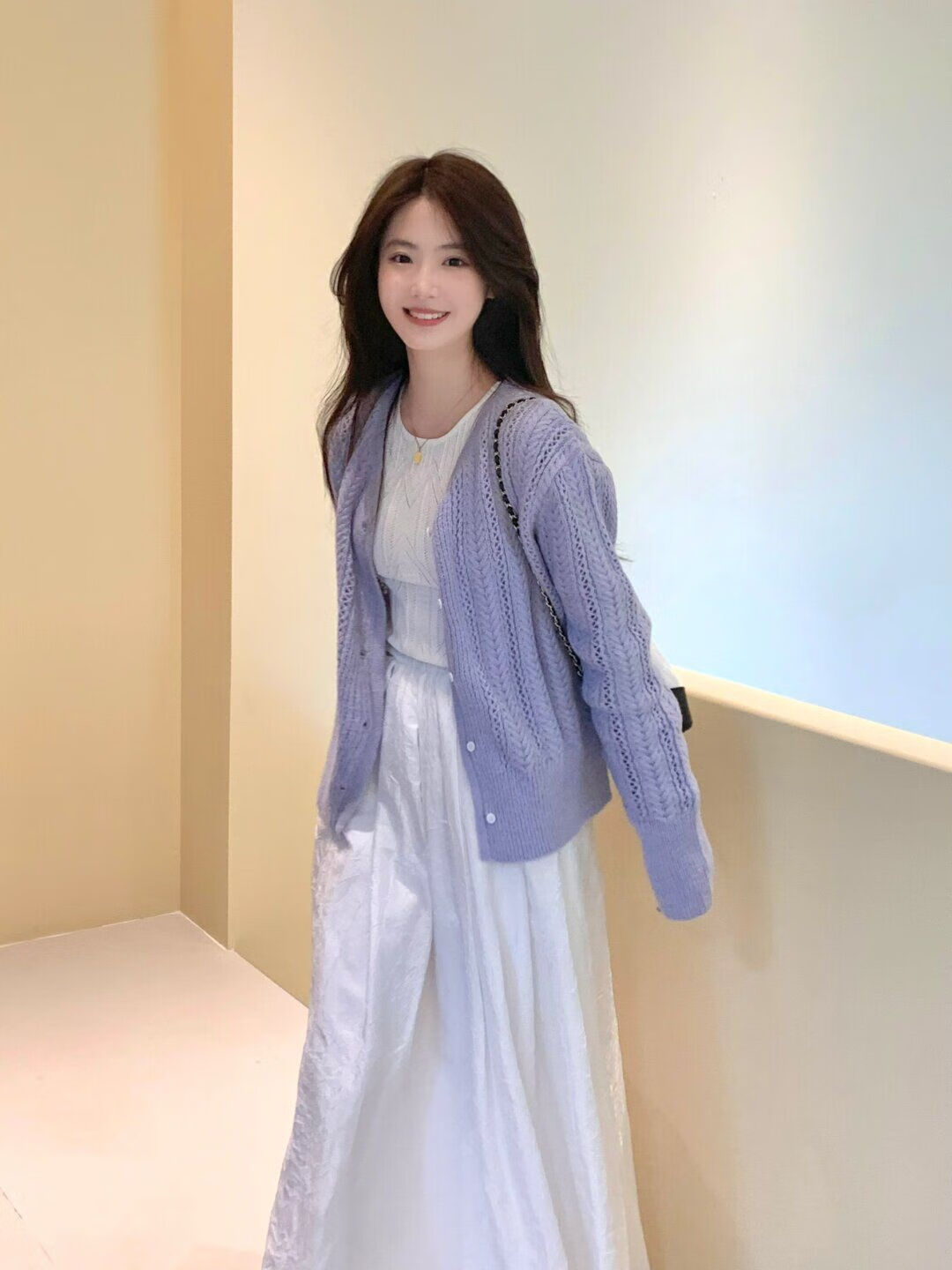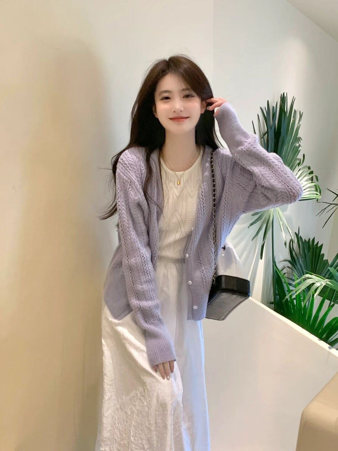 俞兆林紫色针织开衫外套女春秋季新款宽松慵懒风毛衣温柔甜美风短款上衣 浅紫色 【减龄显瘦百搭】 均码 【推荐80-140斤】