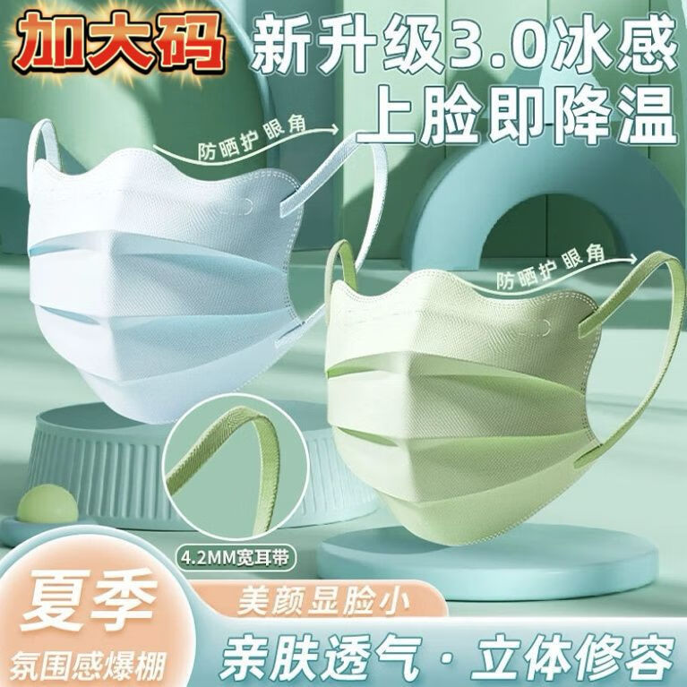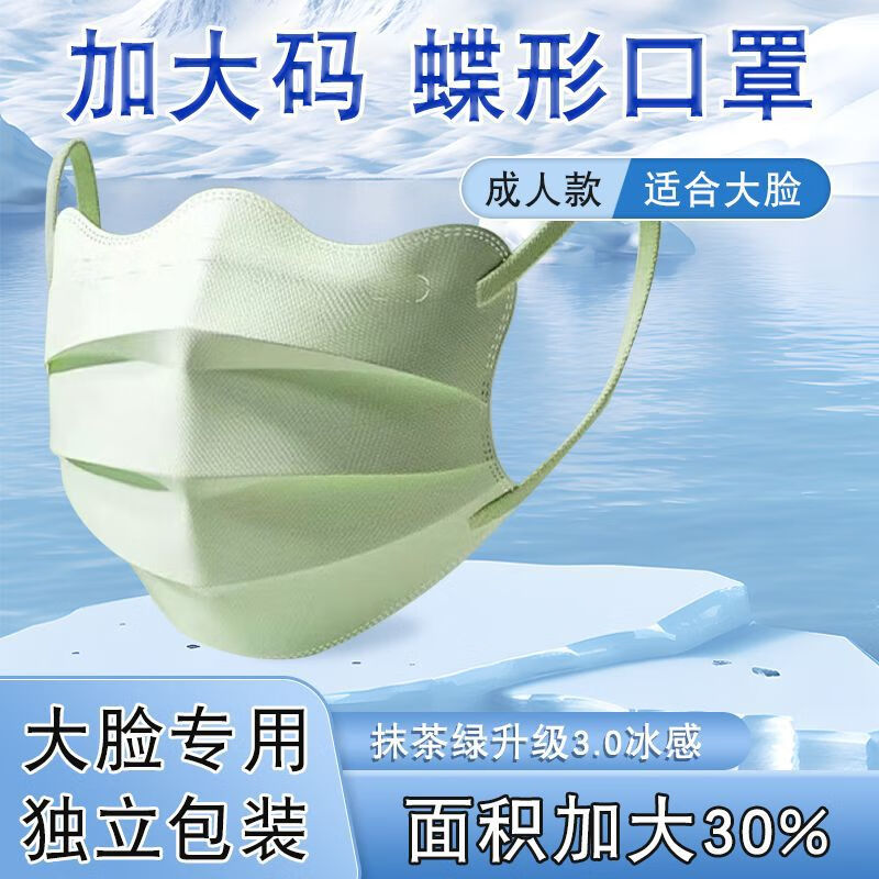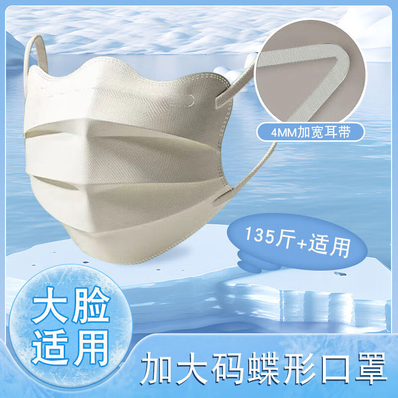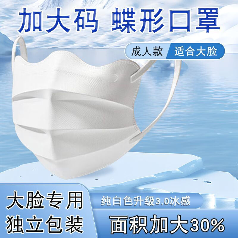 卫士立加大码蝶形口罩大号夏季防晒冰感口罩女高颜值薄款透气口罩大脸专 加大码/冷感蝶形【炫酷黑】 30只独立包装