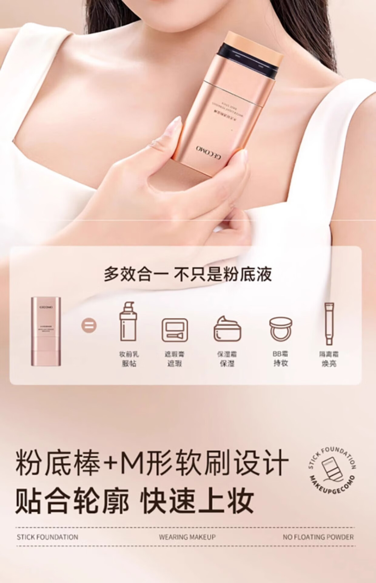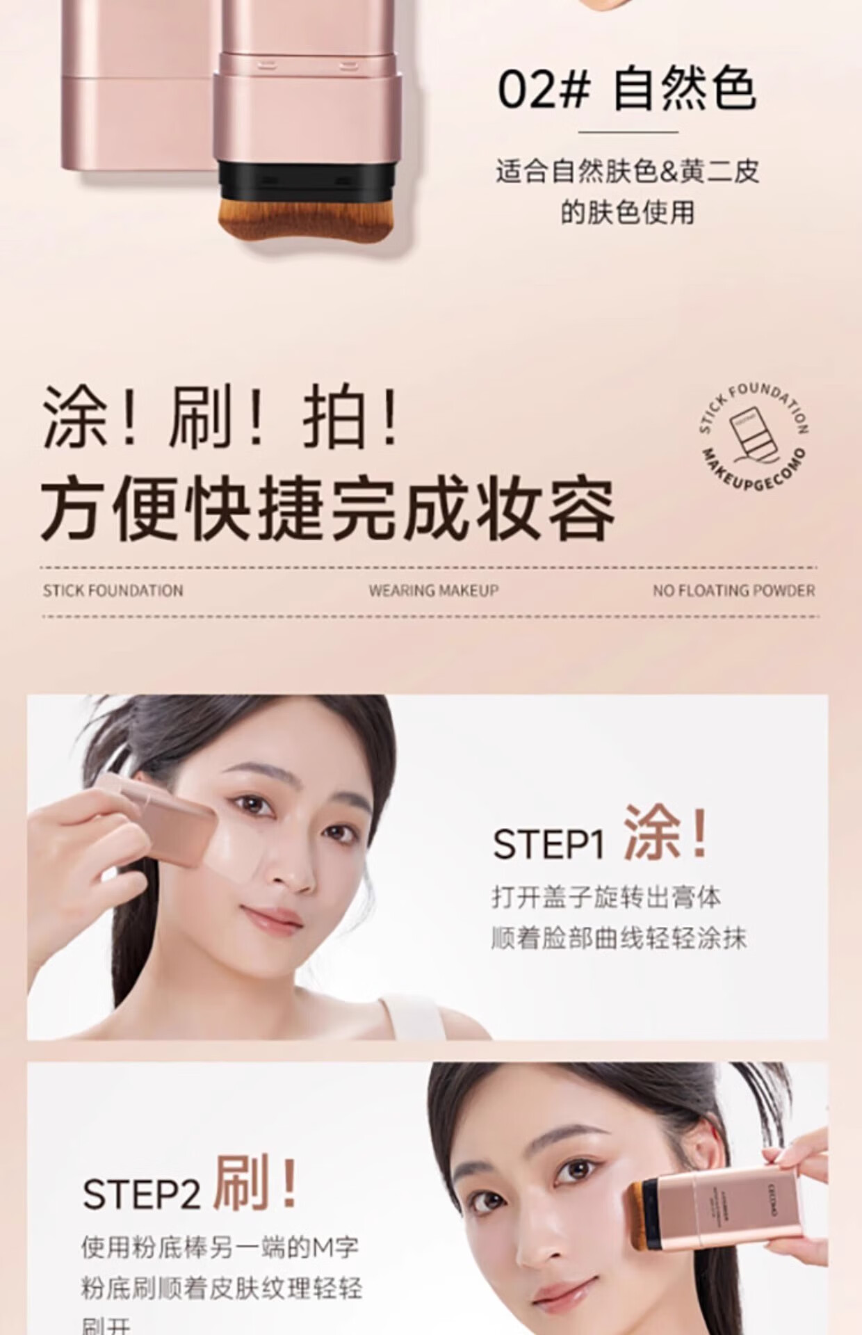 格蒙遮瑕粉底棒水润控油提亮持妆打底不脱妆不暗沉双头粉底送女友礼物 02#自然色