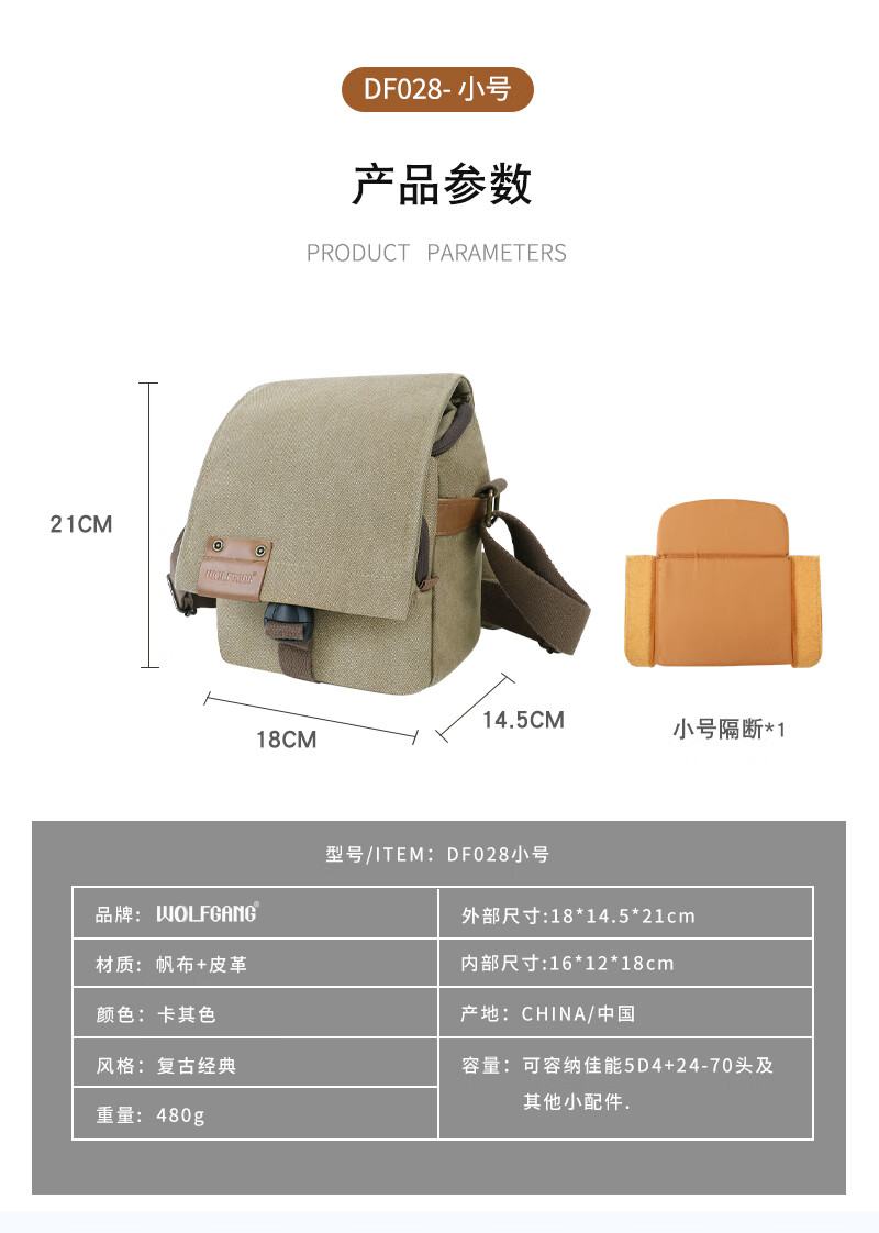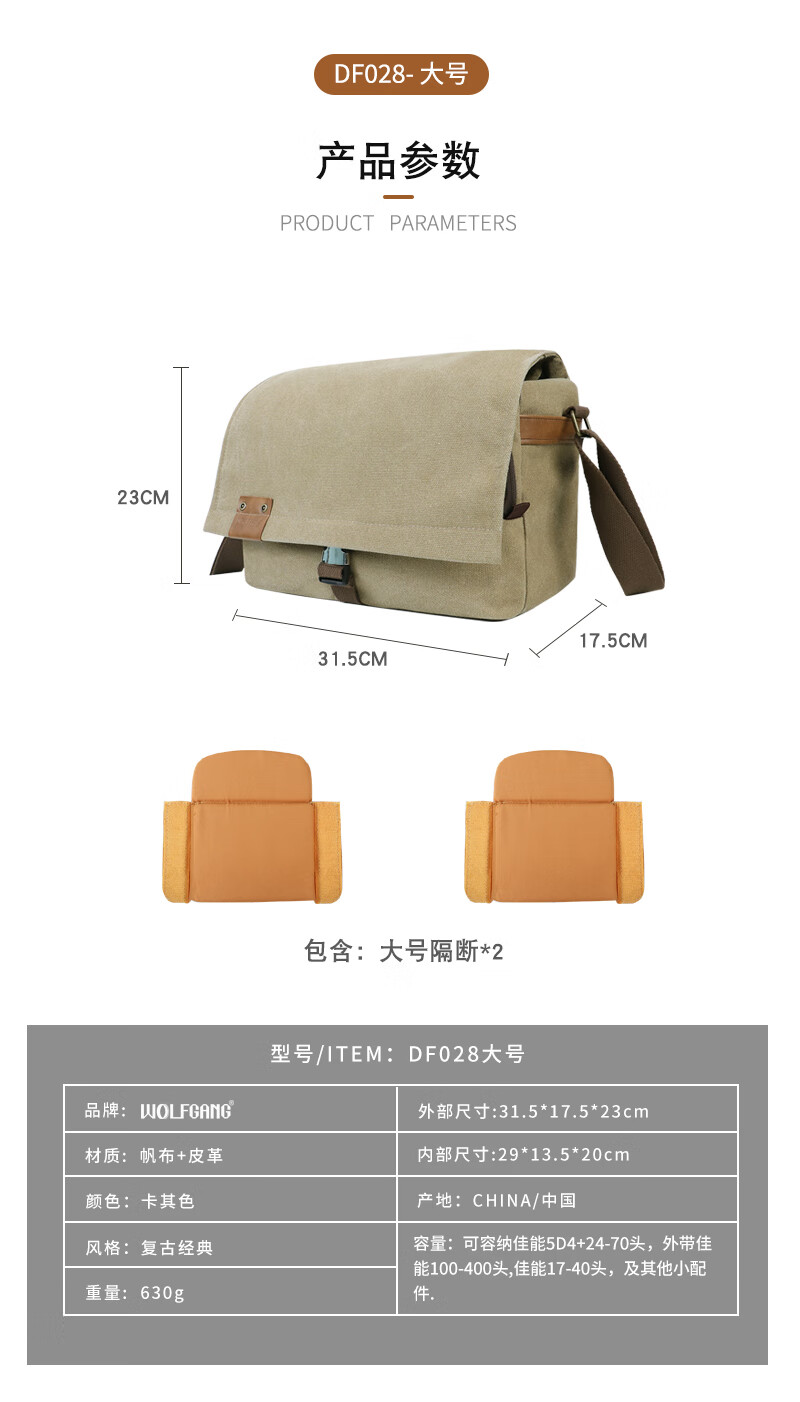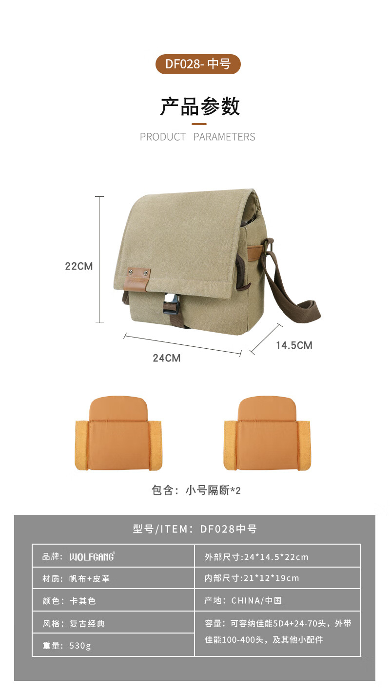 沃尔夫冈(WOLFGANG) 双肩背 单肩背 相机包 微单包 单反包摄影包 【DF-028大号单肩包】 佳能 尼康 索尼 富士单反/微单相机专用
