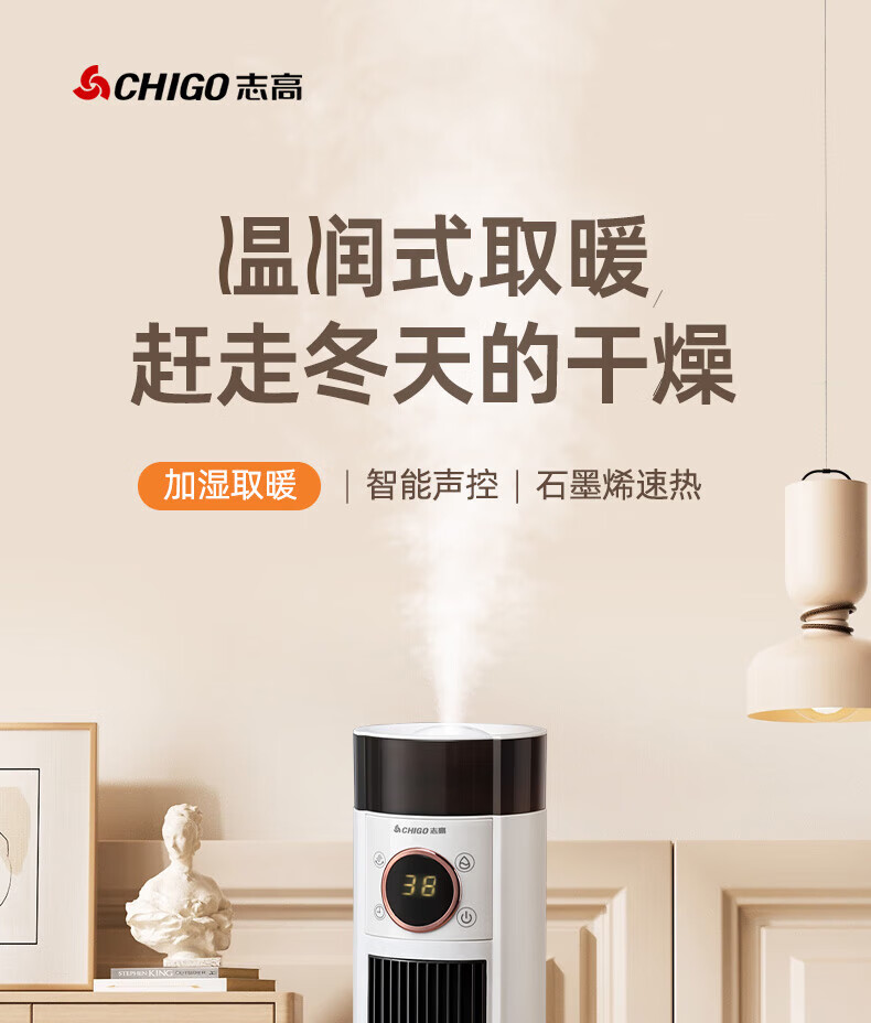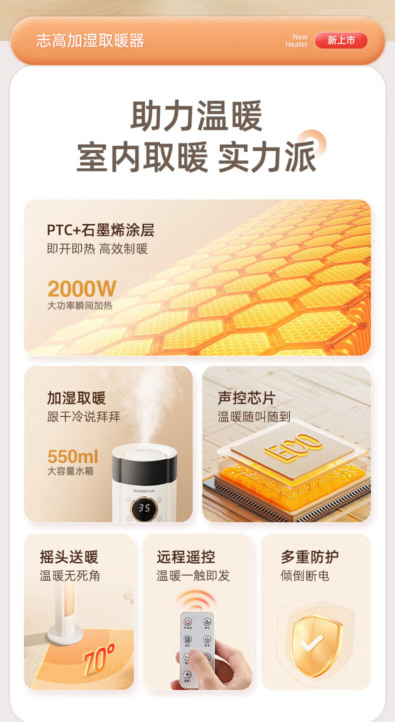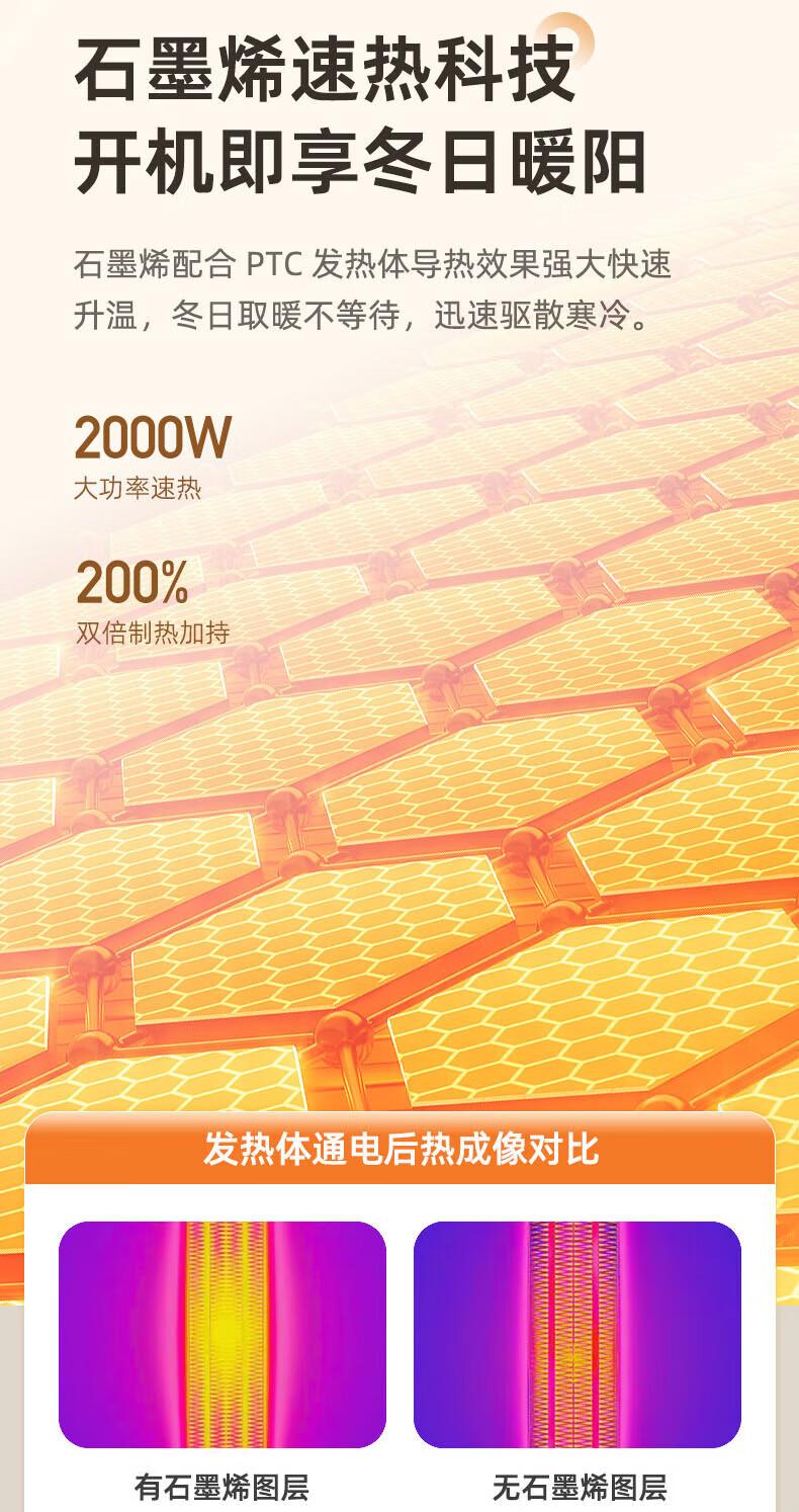 志高暖风机电暖气取暖器家用节能速热风机浴室洗澡石墨烯全屋取暖神器 遥控升级款【升级石墨烯】+智能恒温