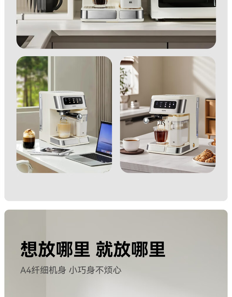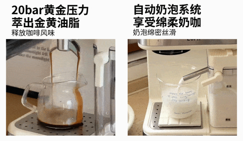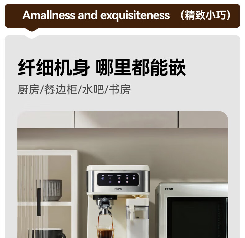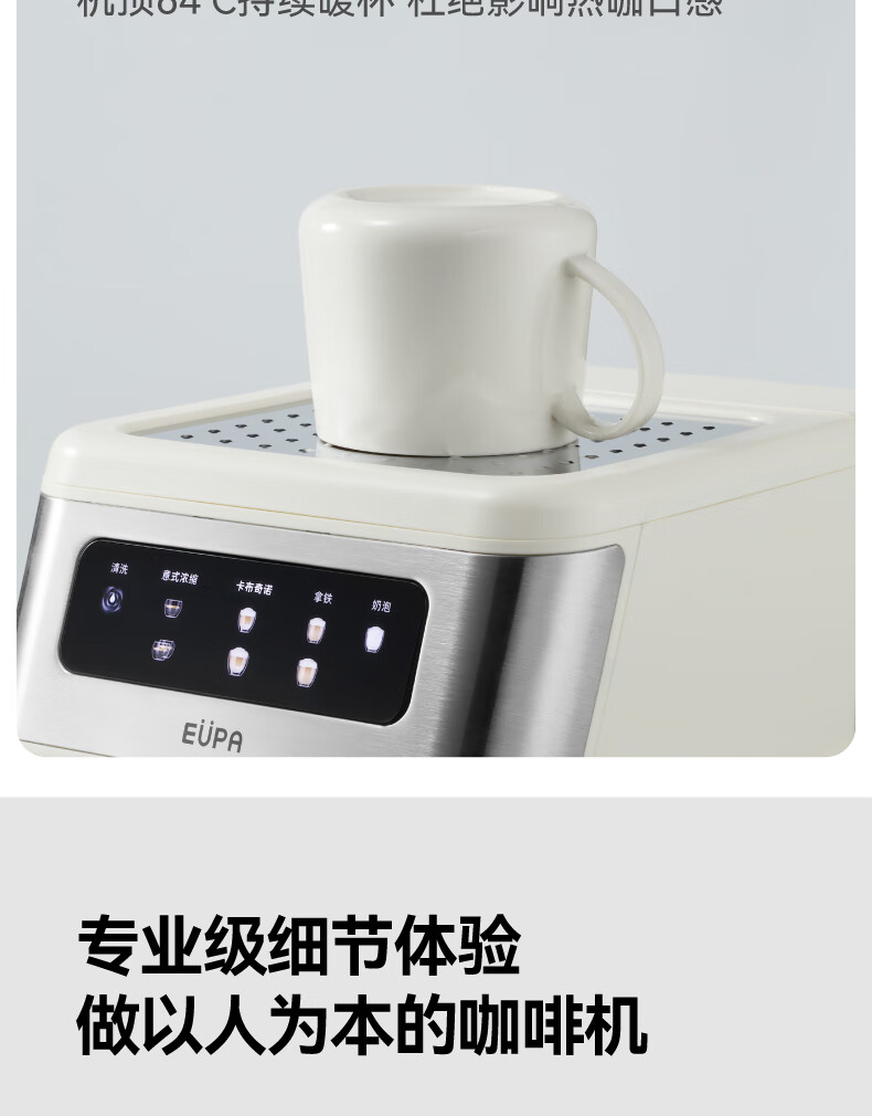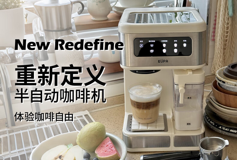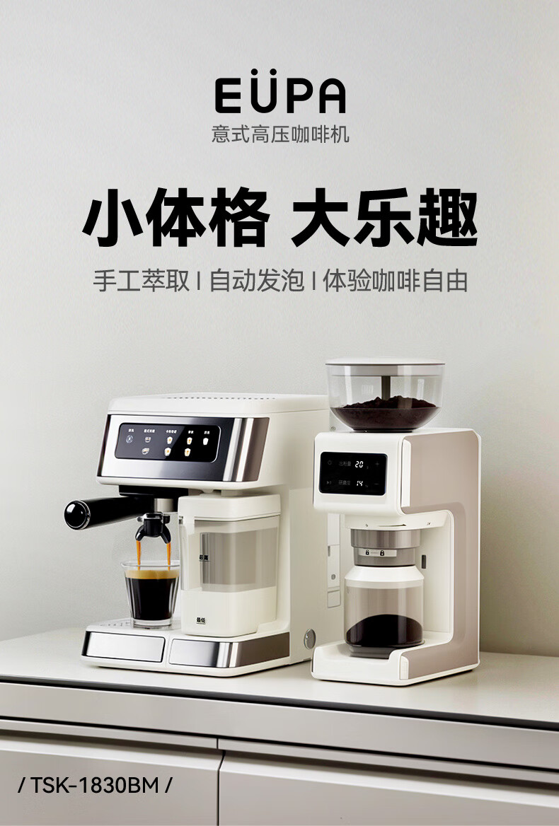 EUPA家用小型咖啡机20Bar高压萃取咖啡自由全自动奶泡半自动意式咖啡机 自动奶泡咖啡机+研磨套装