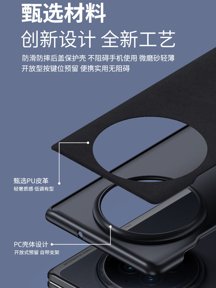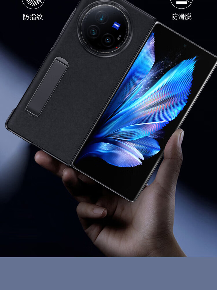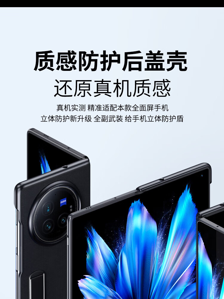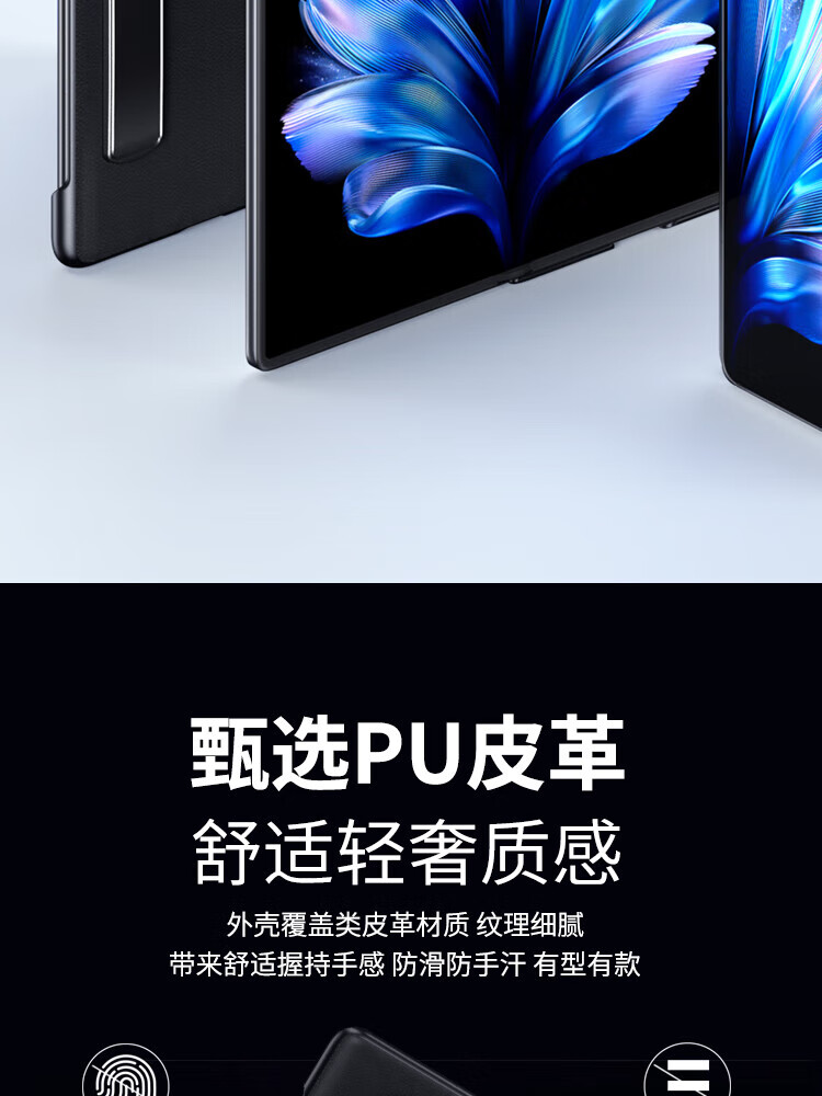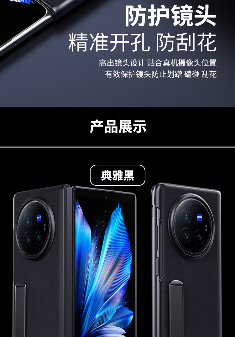 ESCASE适用vivoxfold3手机壳vivo x fold3pro保护套防摔PU皮商务皮套简约翻盖折叠下盖典雅黑 Xfold3Pro-原机黑色高端素皮