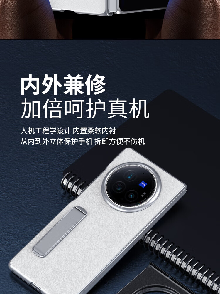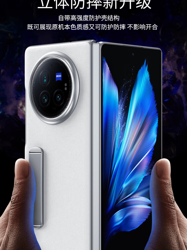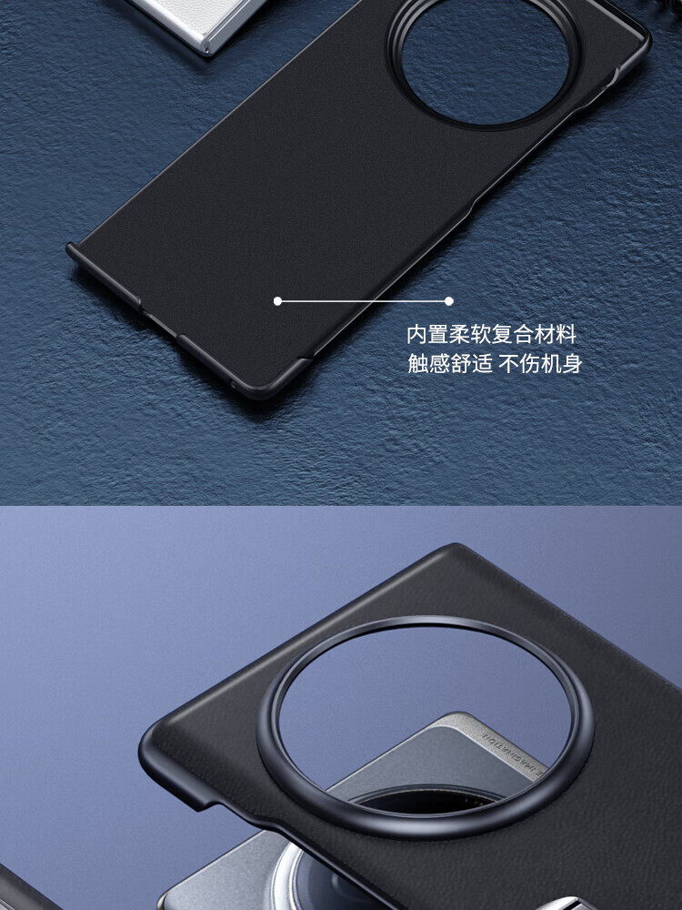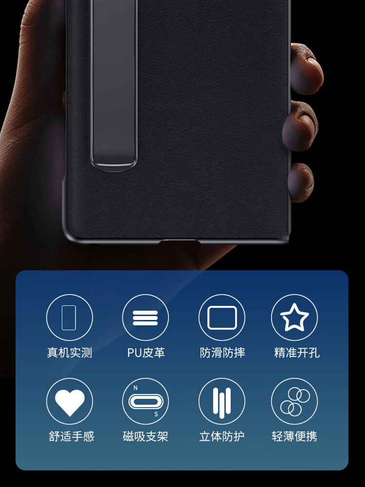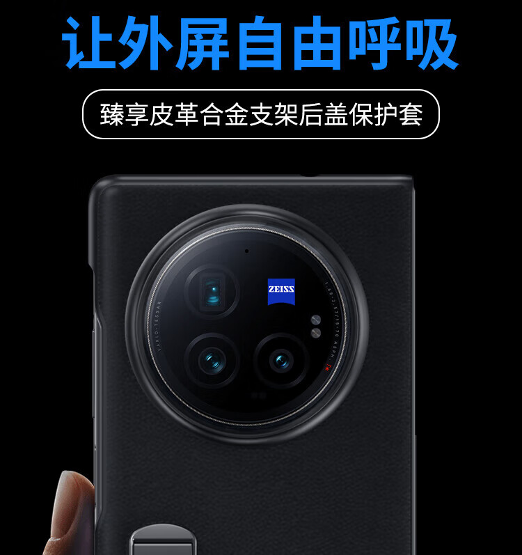 ESCASE适用vivoxfold3手机壳vivo x fold3pro保护套防摔PU皮商务皮套简约翻盖折叠下盖典雅黑 Xfold3Pro-原机黑色高端素皮