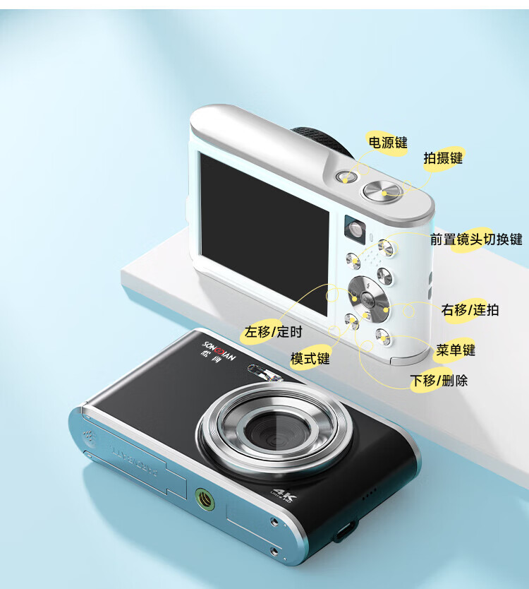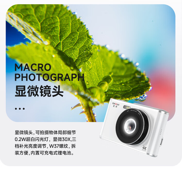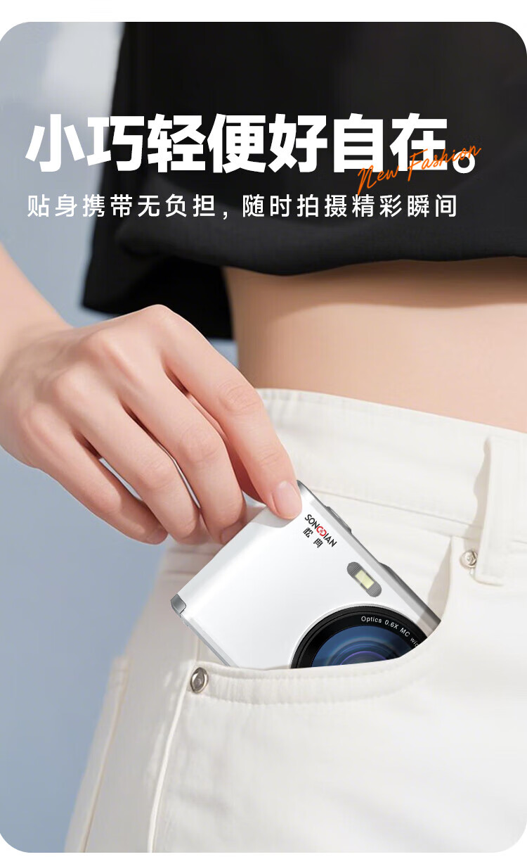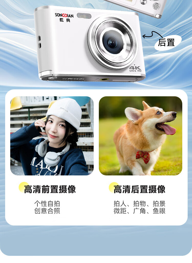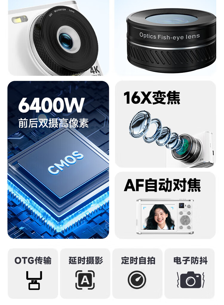 松典【6400W双摄+4K摄录+16X变焦】微单数码照相机学生入门级Vlog校园旅游平替ccd相机拍照旅游专用 【6400W双摄+4K摄录+16X变焦】白色 256G内存