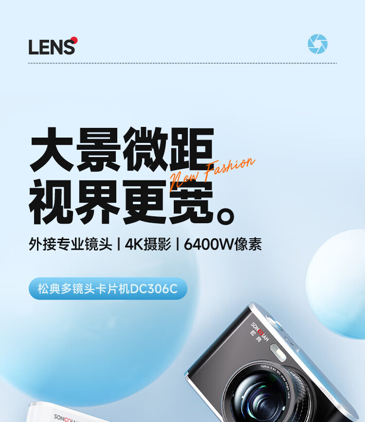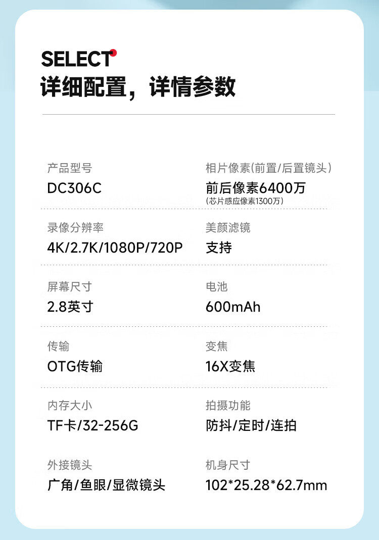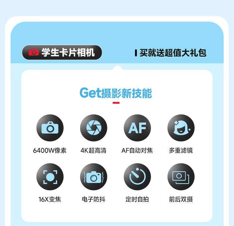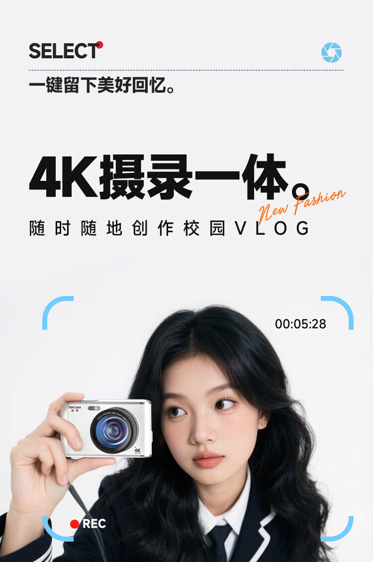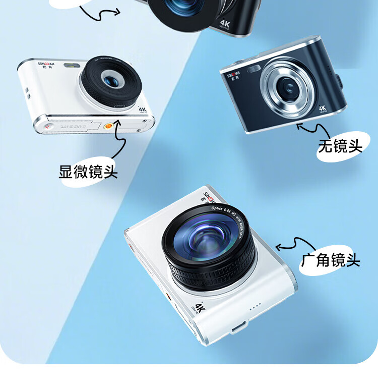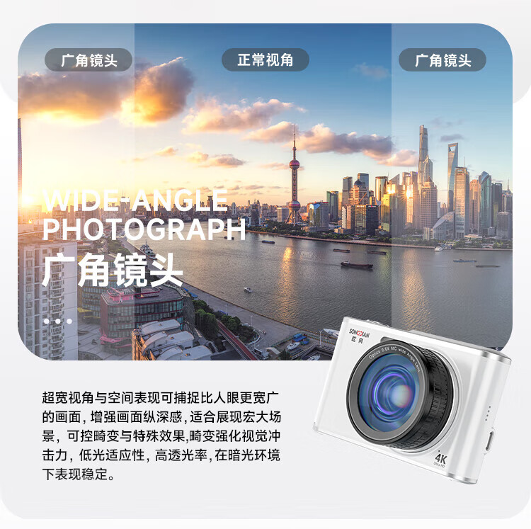 松典【6400W双摄+4K摄录+16X变焦】微单数码照相机学生入门级Vlog校园旅游平替ccd相机拍照旅游专用 【6400W双摄+4K摄录+16X变焦】白色 256G内存