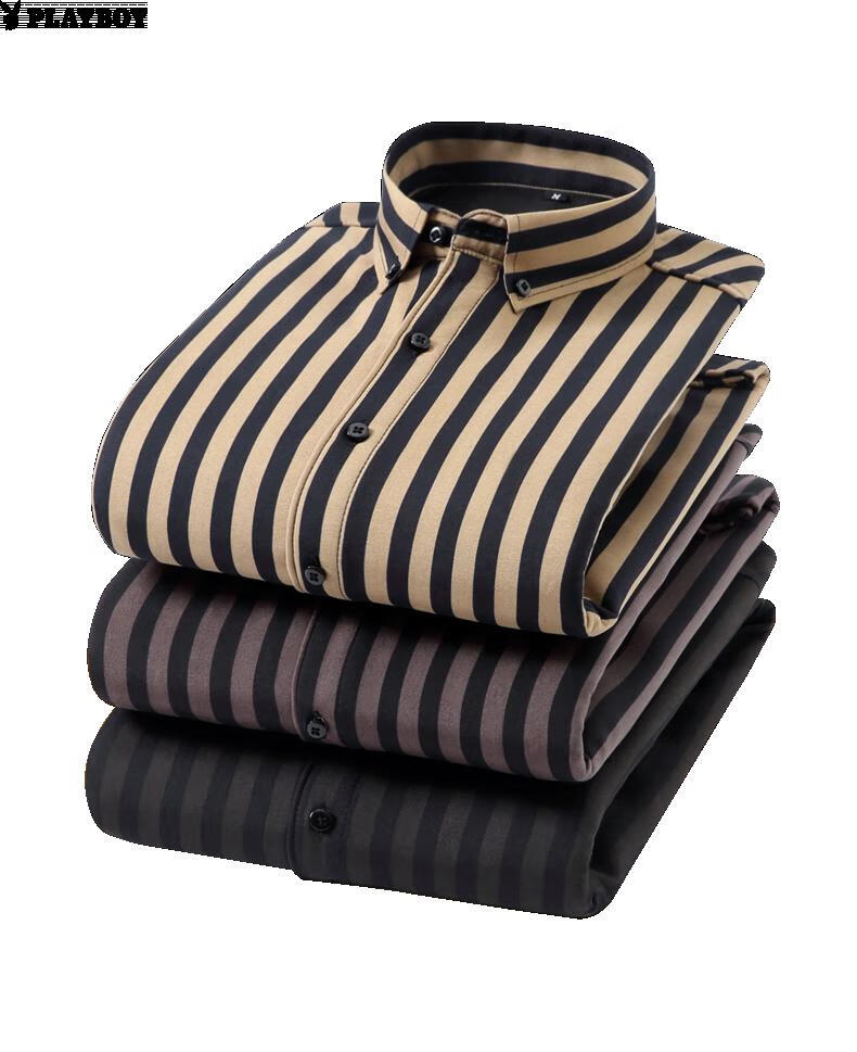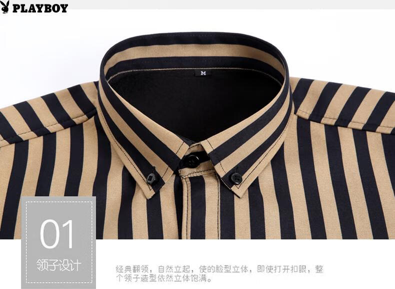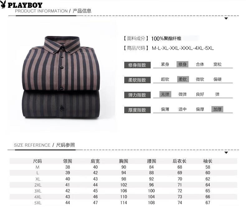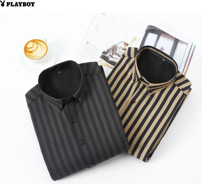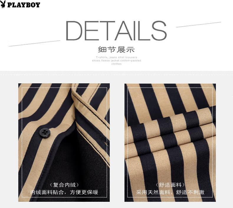 花花公子(PLAYBOY)保暖修身加厚秋冬衬衣条纹商务爸爸长袖男衬衫上衣宽松大码寸 黑色 保暖H15 加绒 M 建议90-105斤