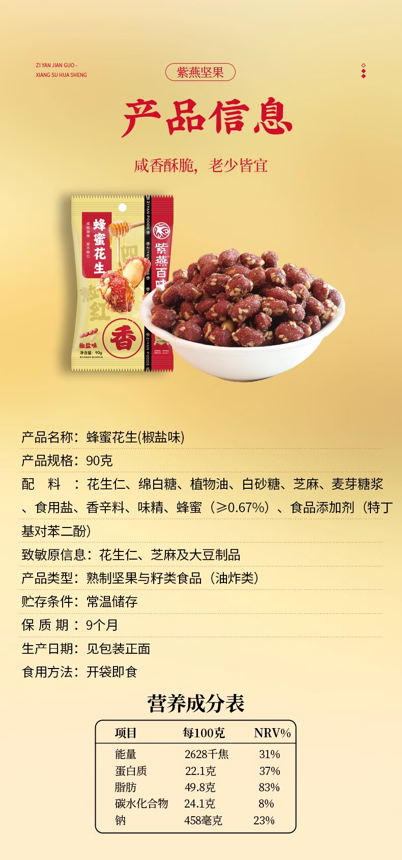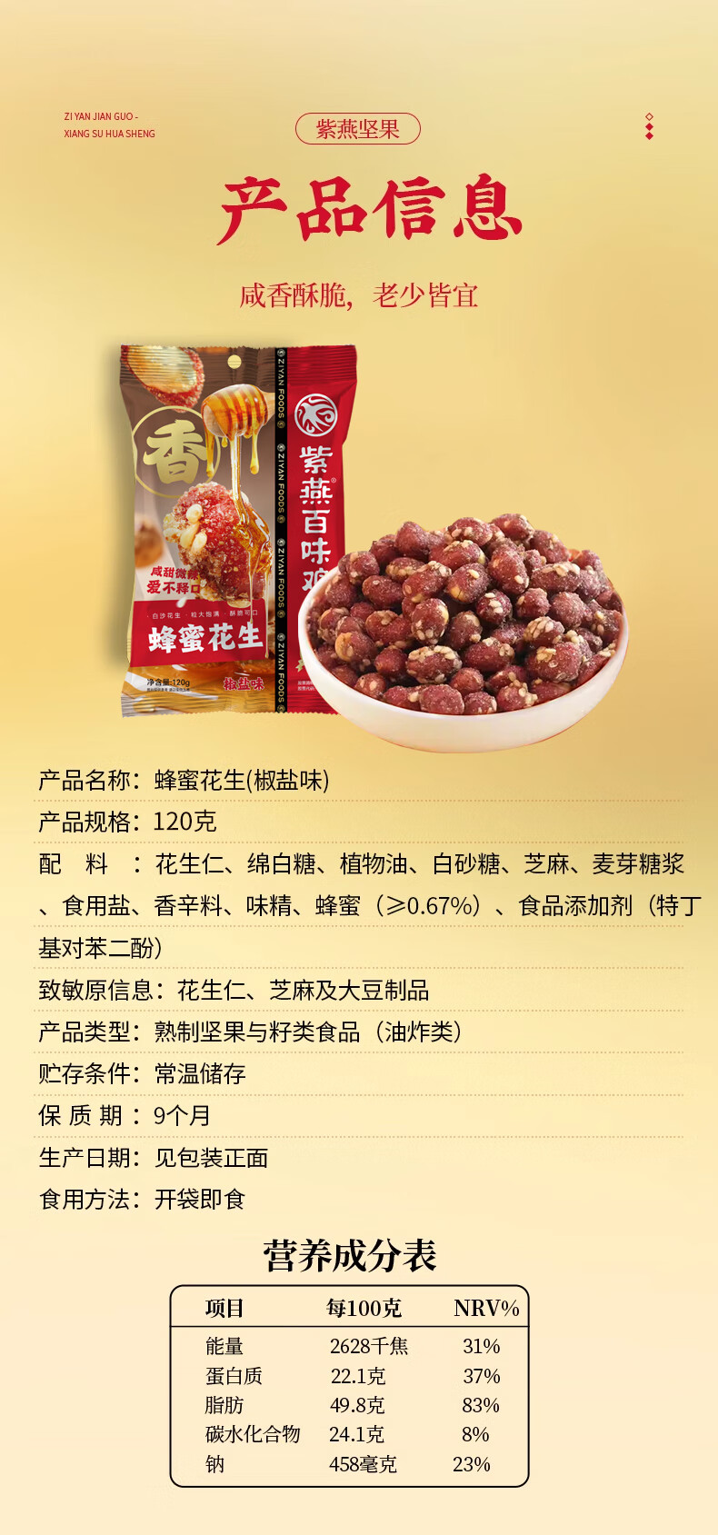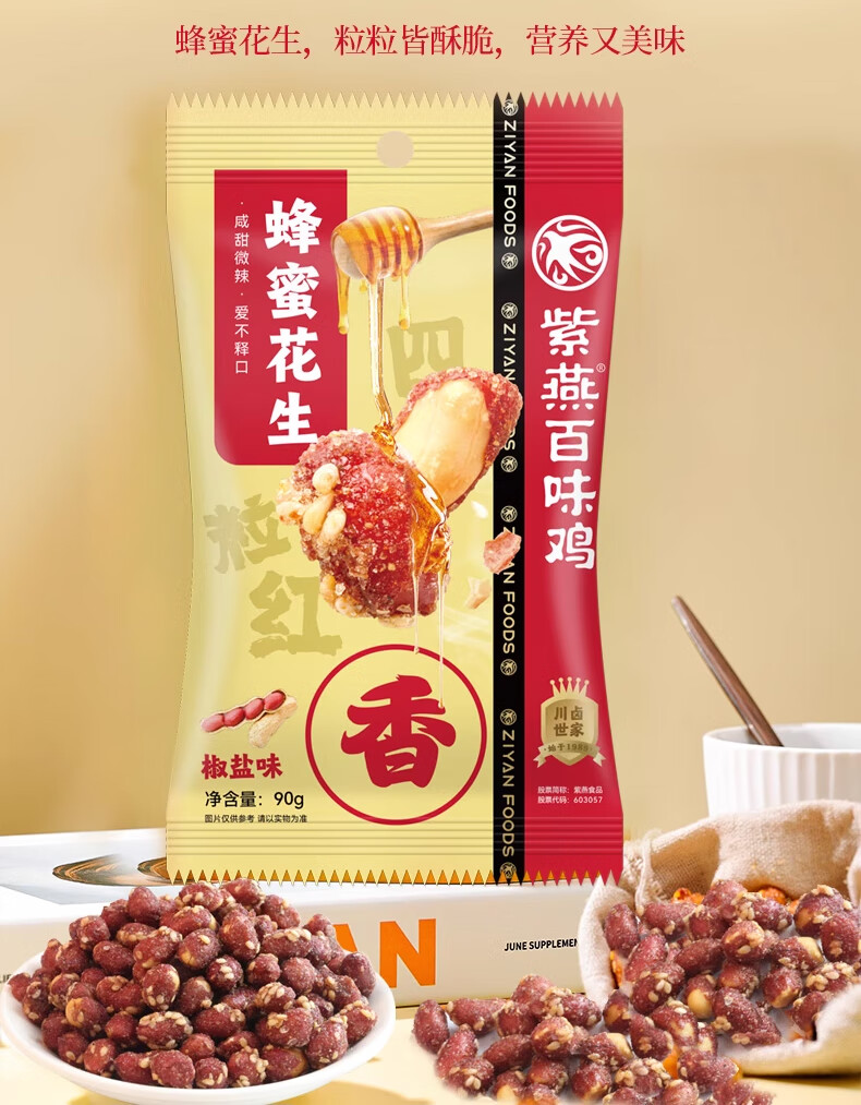 紫燕百味鸡 香酥花生米成人休闲网红零食办公室零食下酒鱼皮花生 蜂蜜花生(椒盐味) 120g*3袋