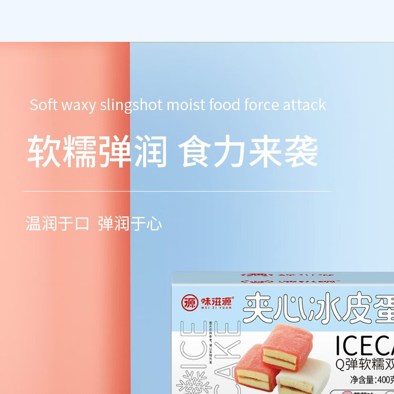 味滋源 夹心冰皮蛋糕 网红冰皮蛋糕冰皮面包 早餐零食 乳酸菌小口袋面包 300g 2件