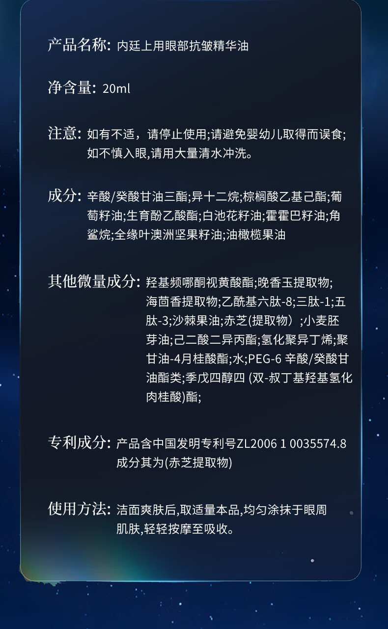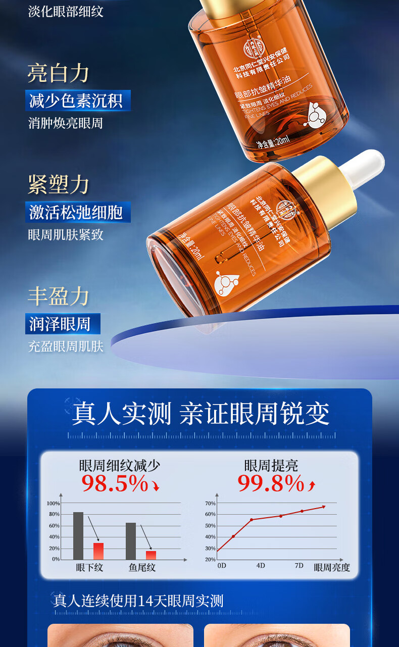 内廷上用北京同仁堂眼部精华油提拉紧致淡化黑眼圈抗皱紧致淡化细纹 【1盒体验装】20m1/瓶