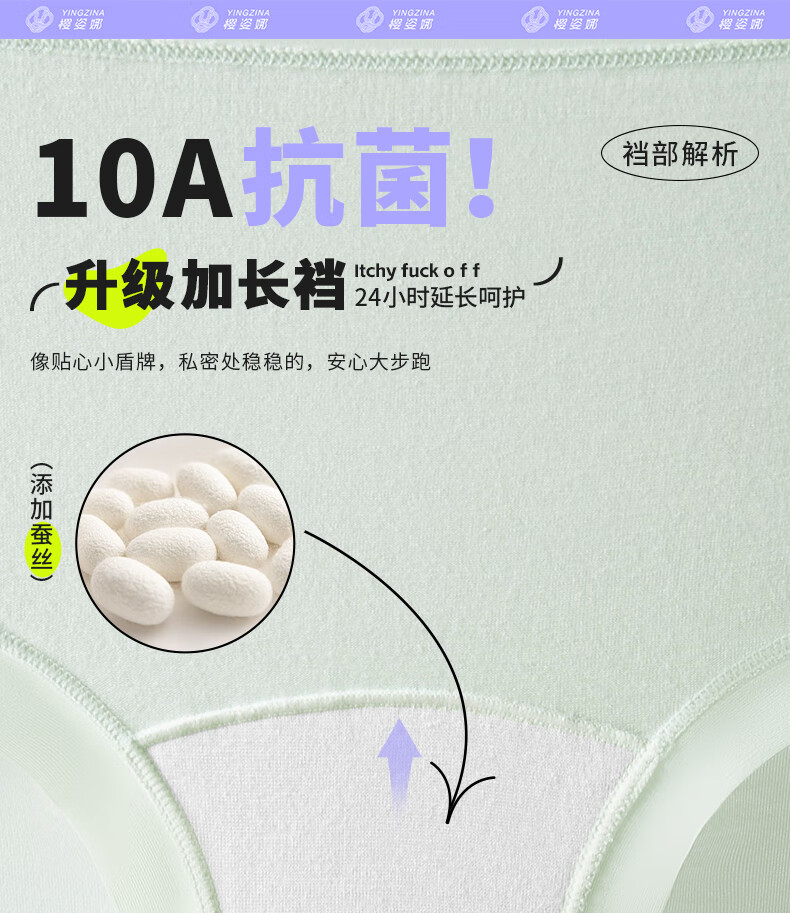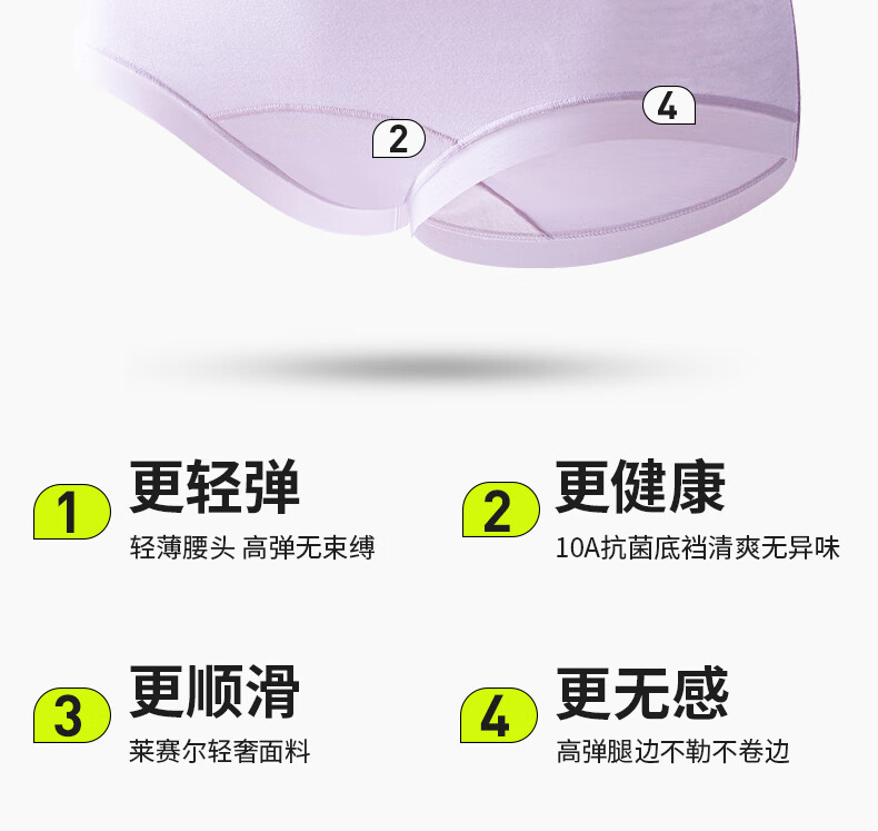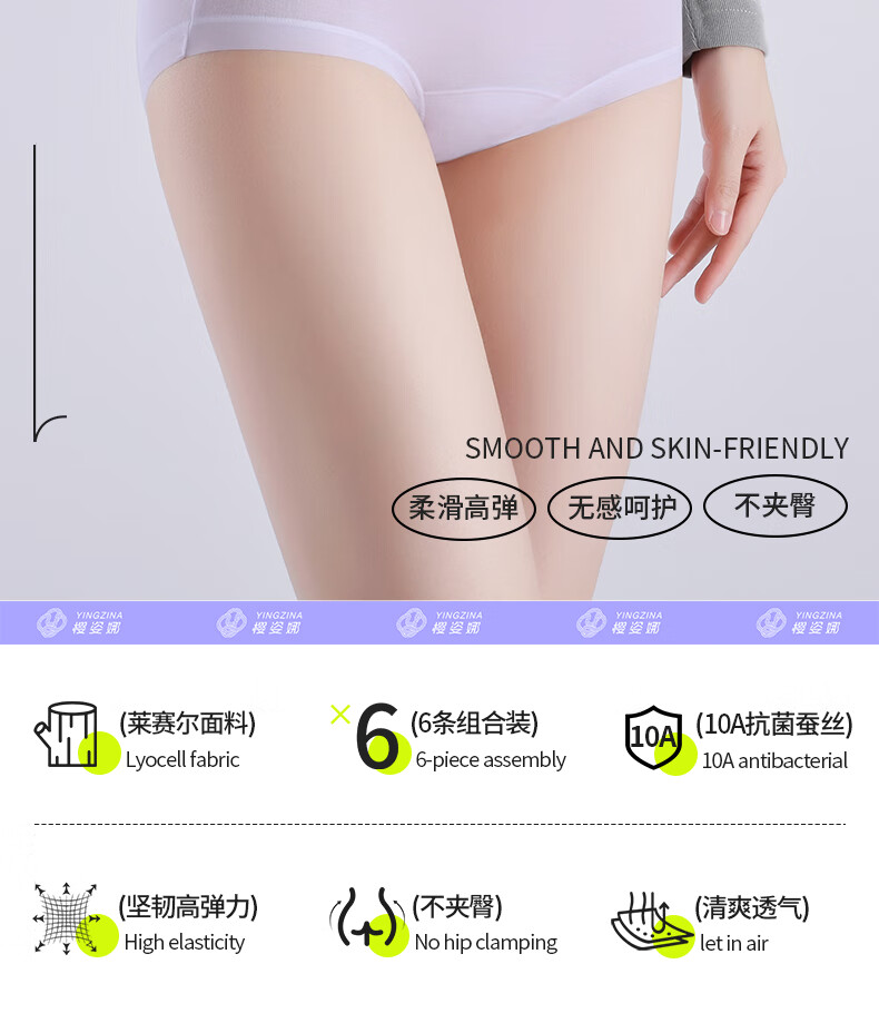 樱姿娜【6条】无痕内裤女莱赛尔加长10A级抗菌除臭蚕丝裆弹力透气三角裤 【6条装】蓝+绿+粉+紫+肤+灰 L 高腰(80-120斤内可穿)