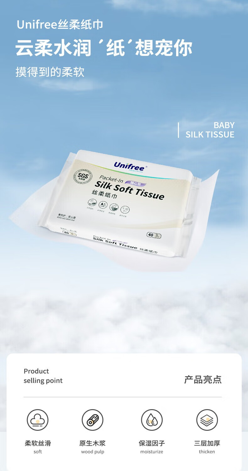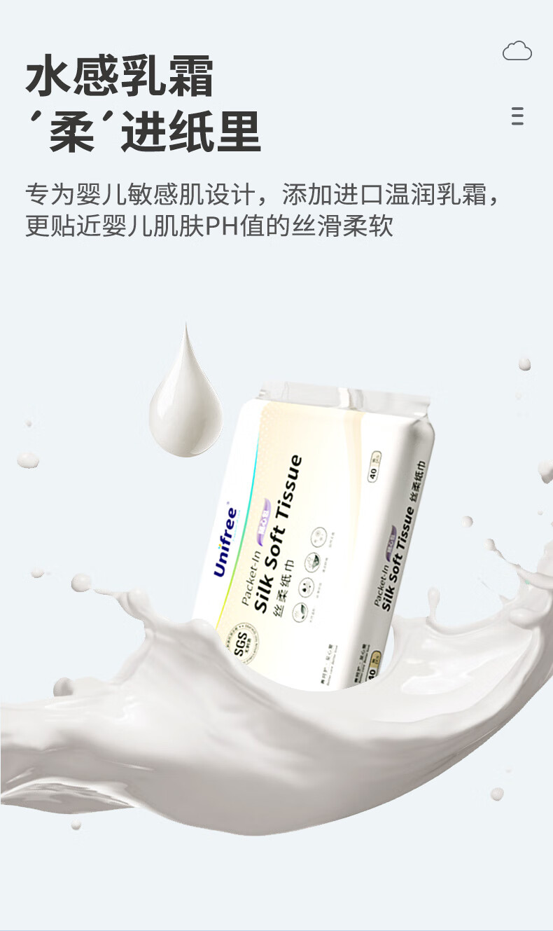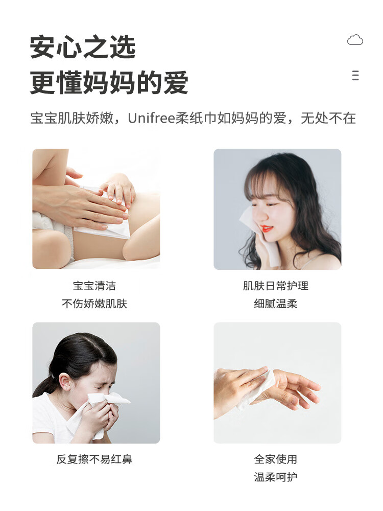 unifree婴儿抽纸云柔纸巾三层新生儿婴儿敏感肌专用保湿乳霜纸巾 3层 40抽*35包